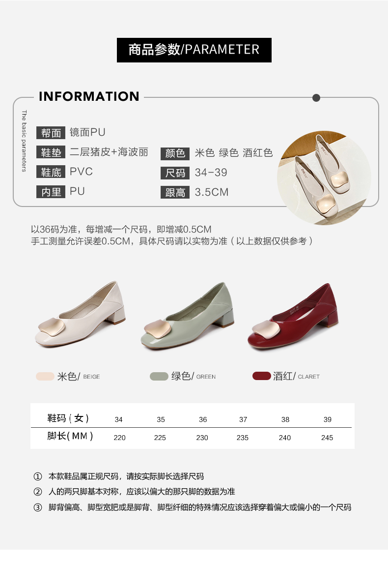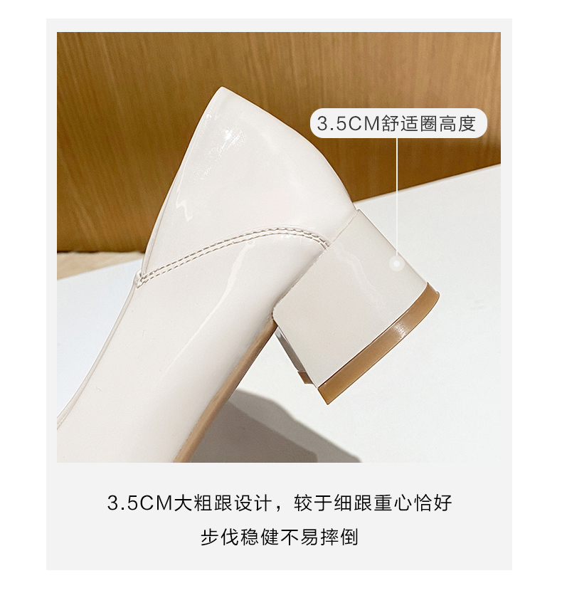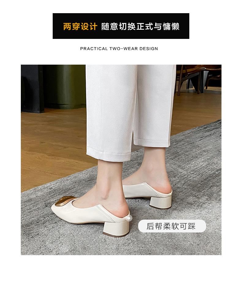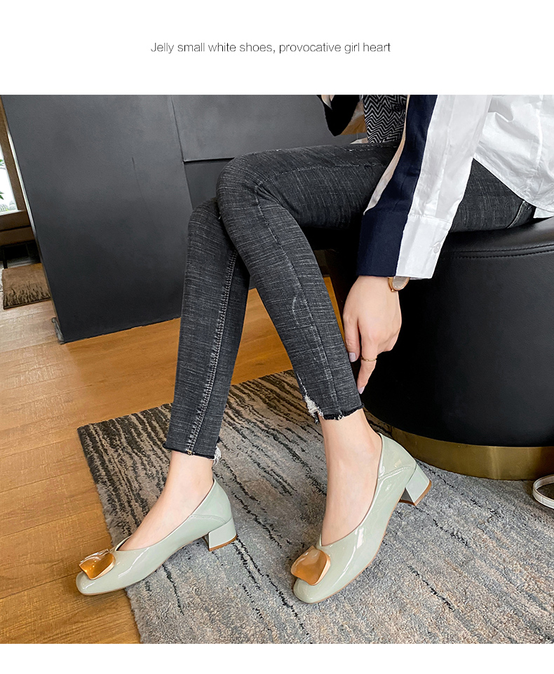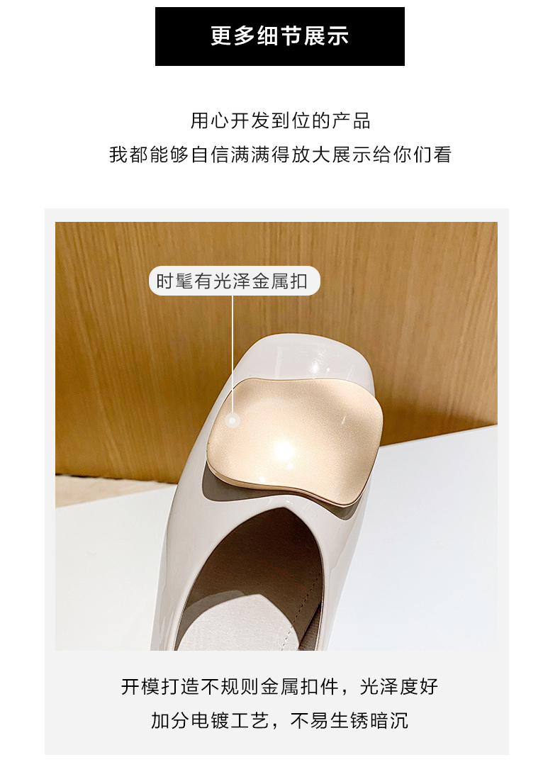 ZHR【金属扣饰】方头粗跟通勤鞋女婚鞋子女豆豆鞋皮鞋浅口女单鞋女鞋