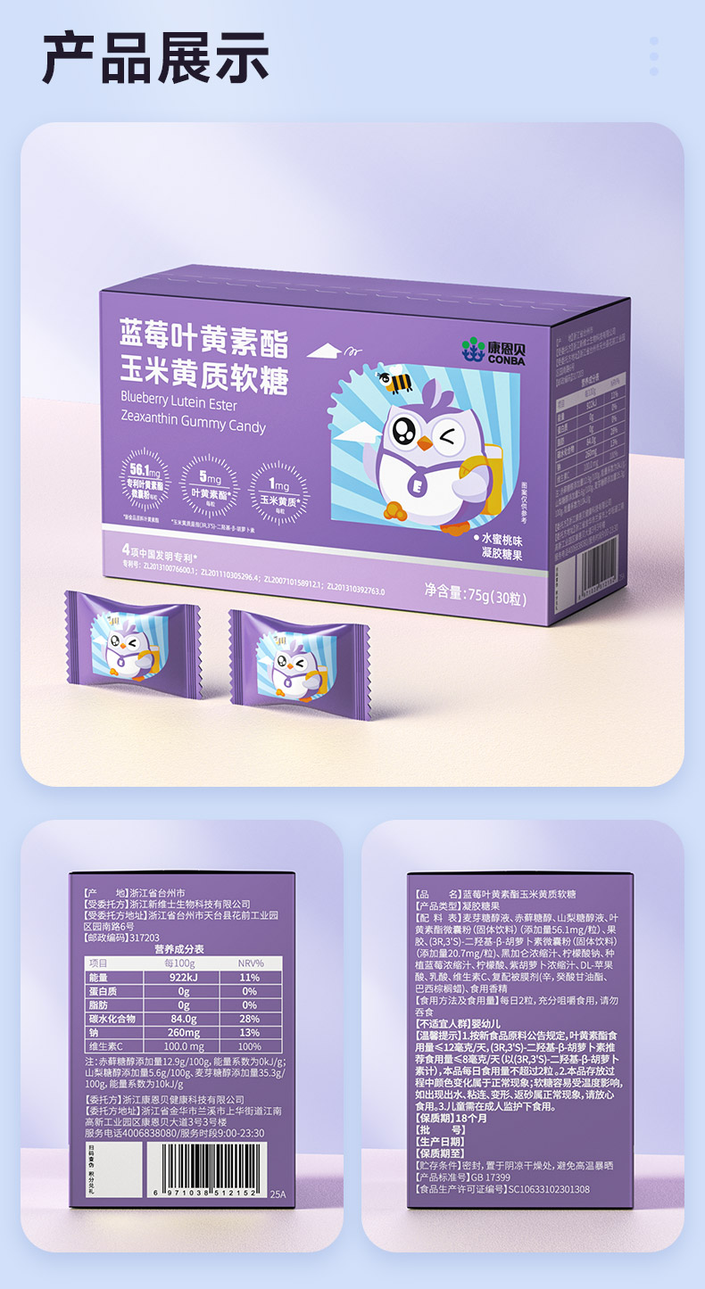 【大熊好货专属】康恩贝蓝莓叶黄素酯玉米黄质软糖(2.5g*30粒/盒*5盒)