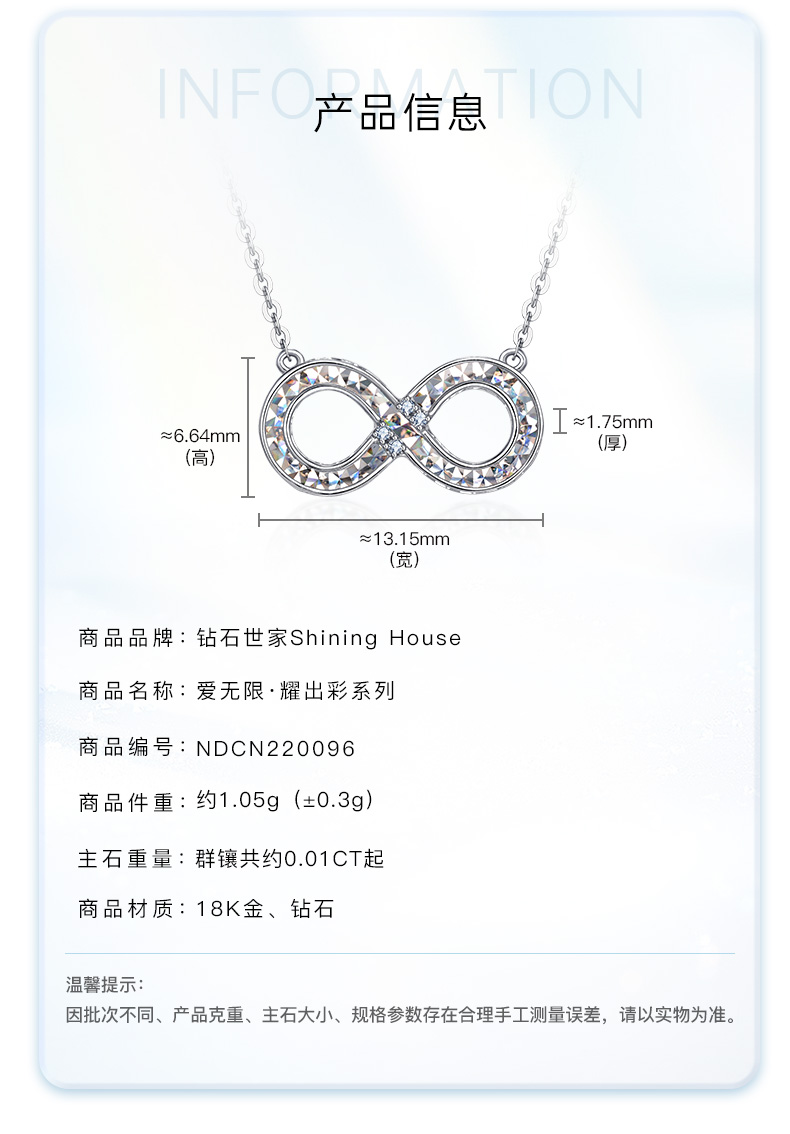 【甑选钻饰】【门店同款】钻石世家 爱无限·耀出色 炫彩项链【金彩】全开 爱无限钻石项链套链 无限符号映耀无限美好