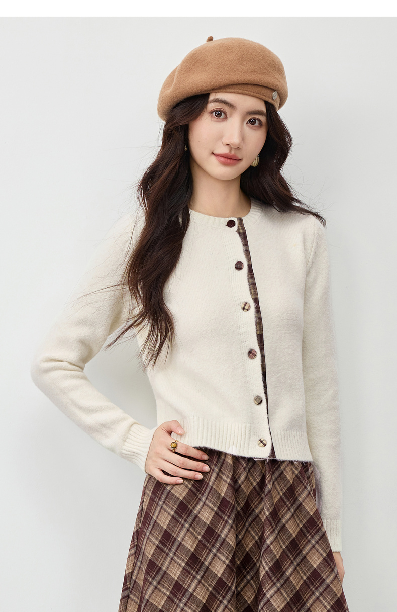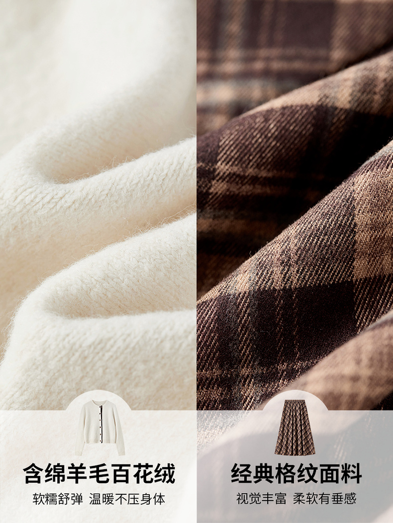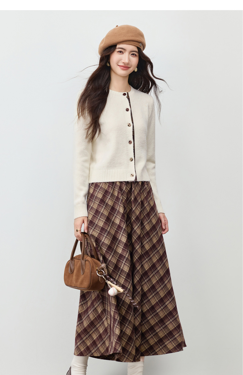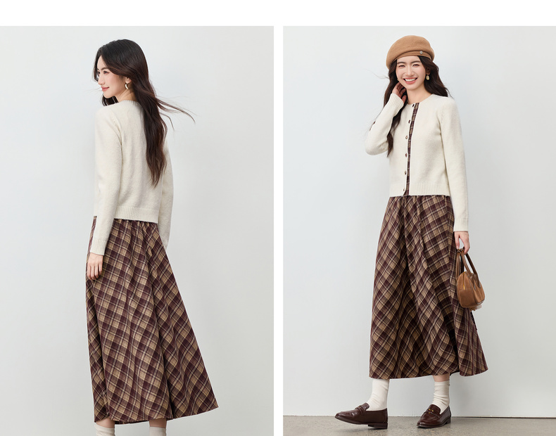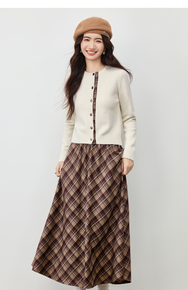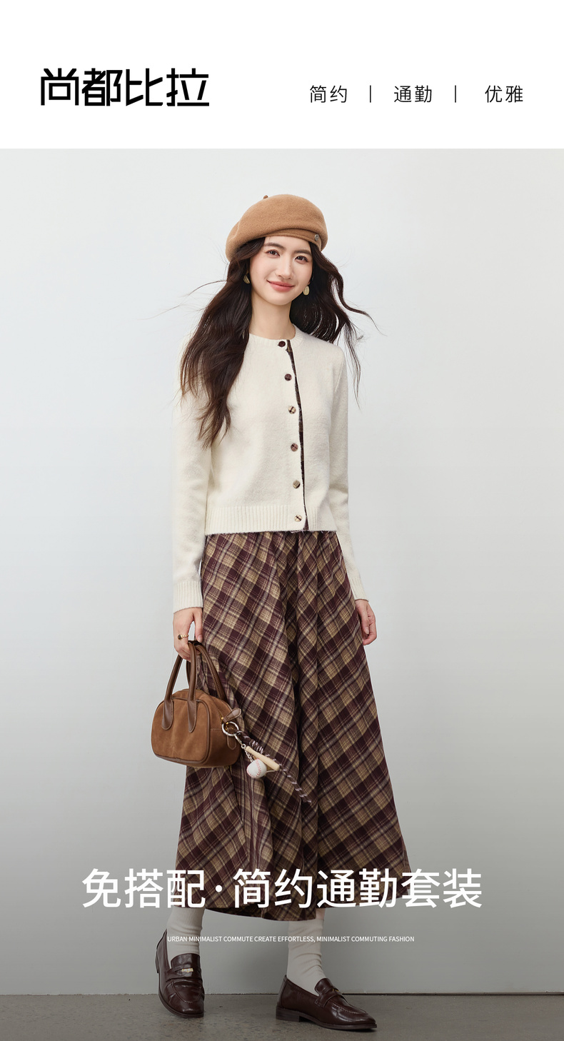 【内购】【免搭配套装】简约通勤圆领弹力针织开衫&松紧腰格纹A字半身裙-753ZC3331