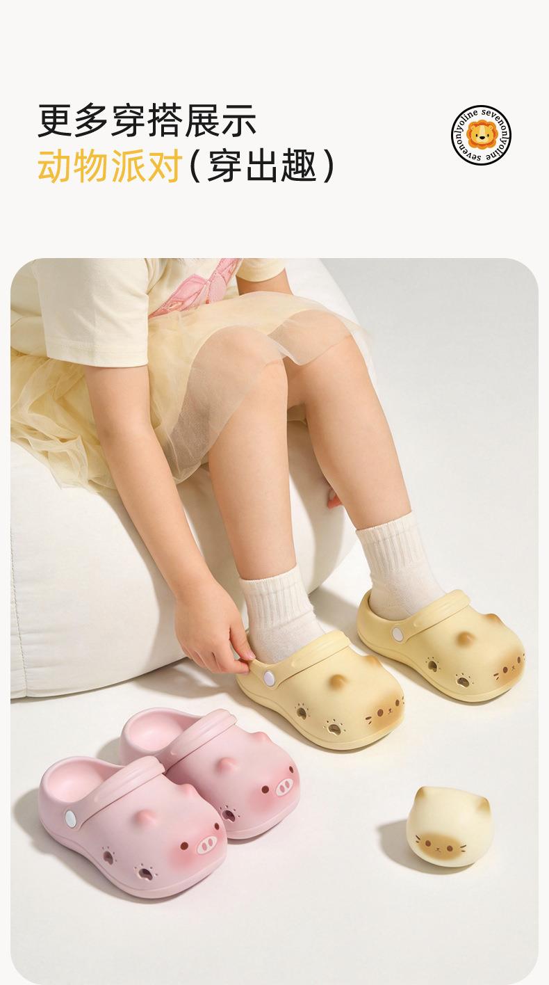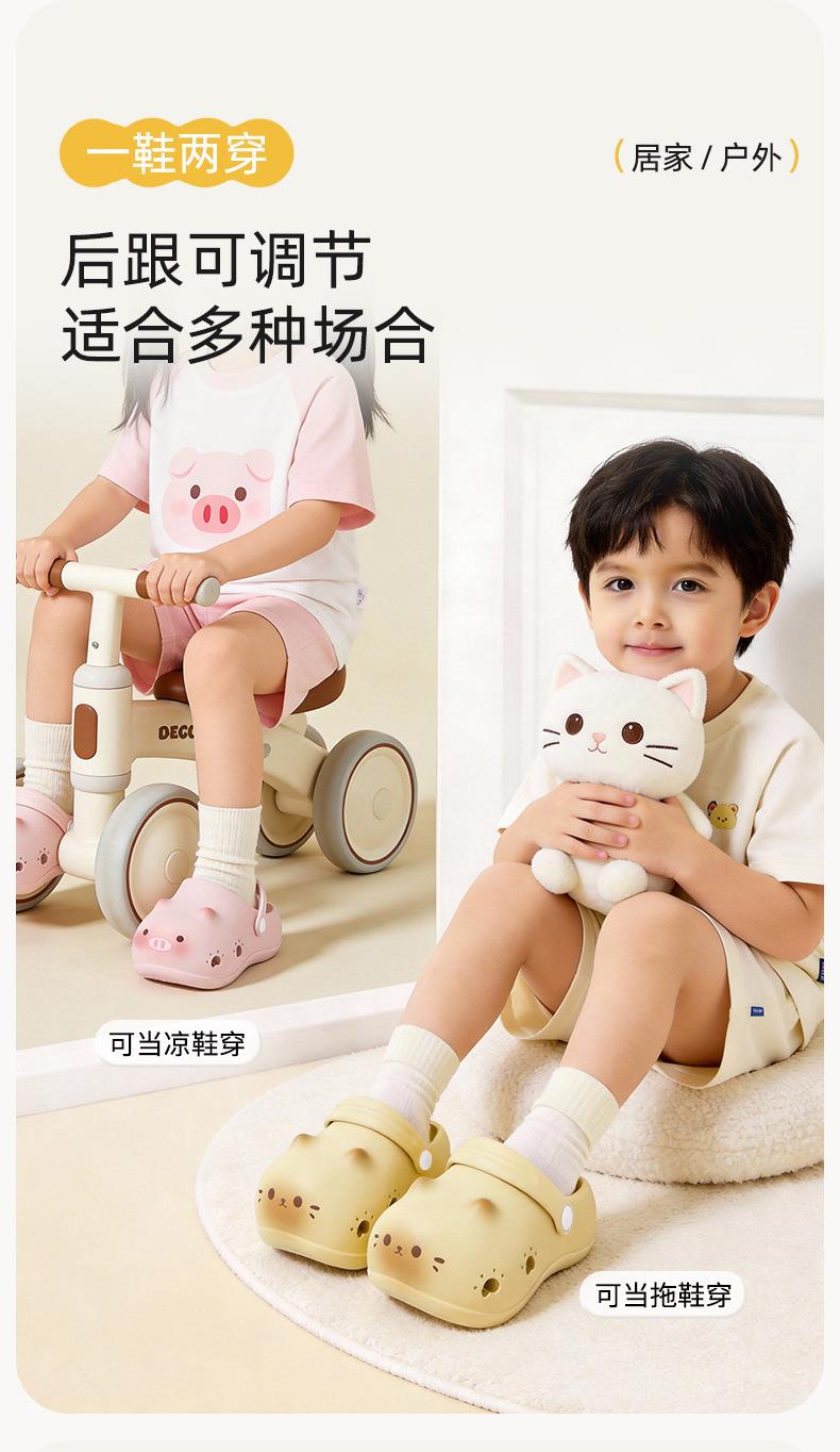 儿童绑带洞洞鞋男女童夏季新款室内居家居可爱卡通宝宝凉拖鞋外穿130-180★娃娃优选