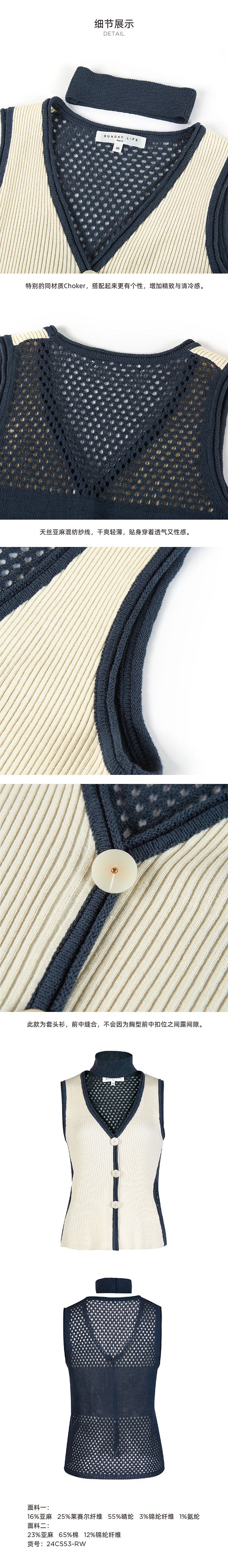 法式极简撞色针织马甲