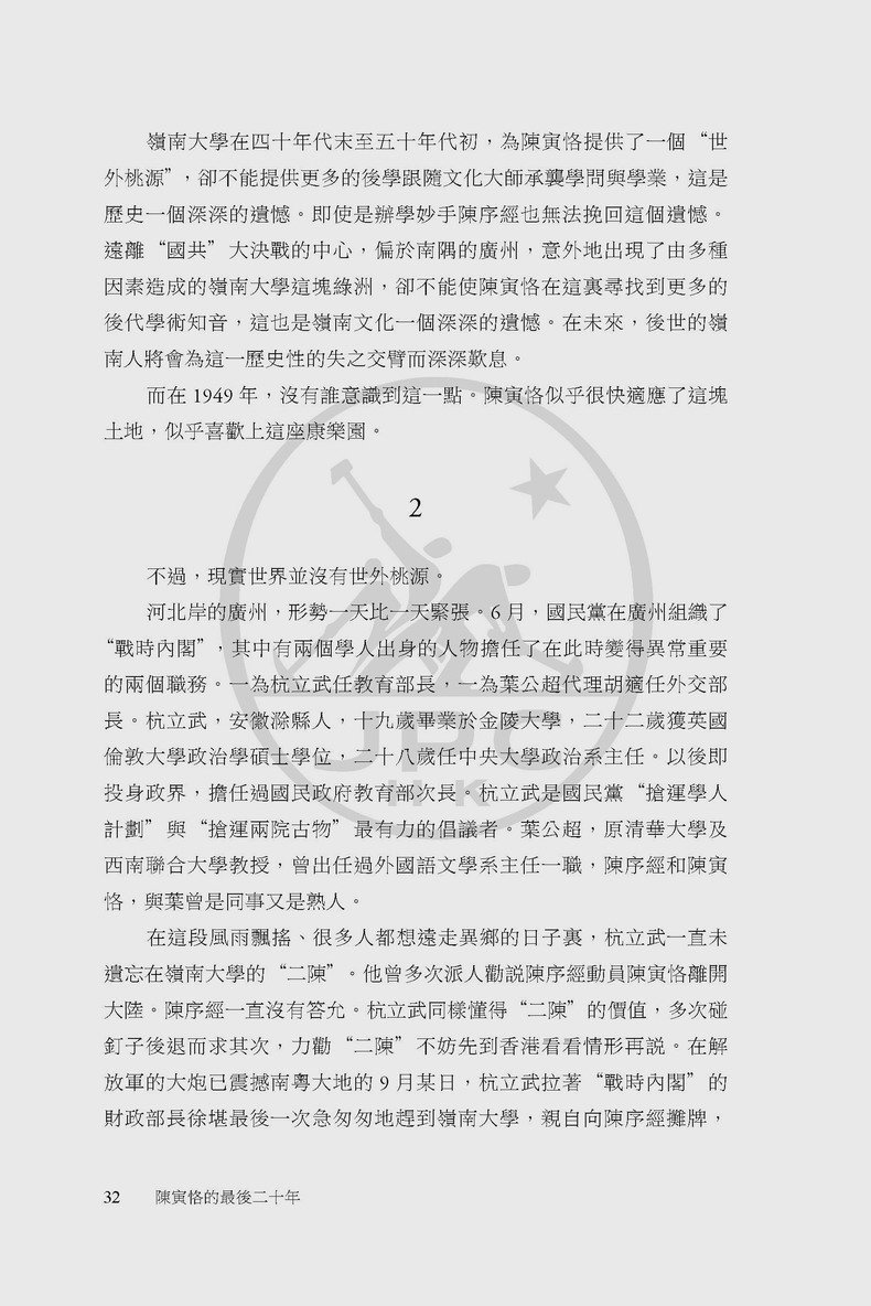 本書為陳寅恪先生人生最後二十年(1949-1969)的傳記。