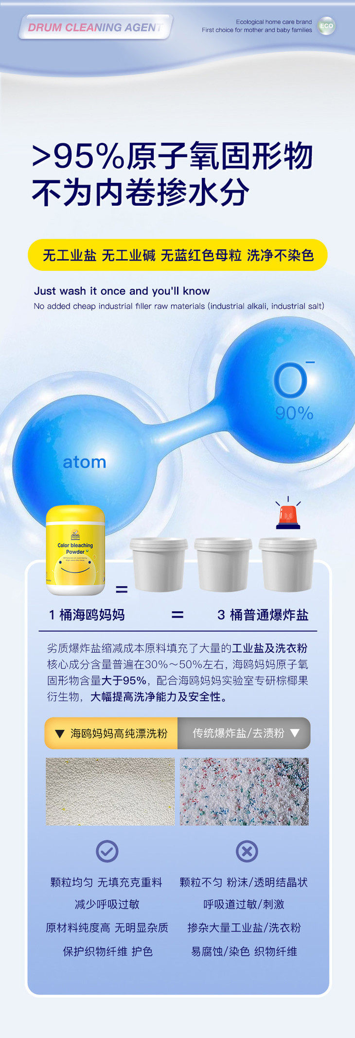 海鸥妈妈·原子氧奶油泡大黄桶 椰油漂洗粉去黄增艳分解异味清洁粉洗衣家用 1.1kg/桶