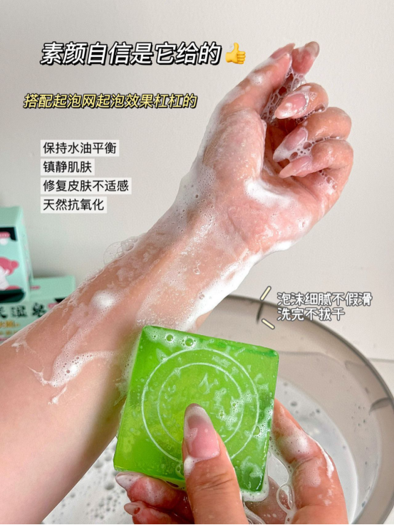 这款皂萃取了艾草精华,传承古方再加上现代的科学技术 一块能洗出清爽的艾草皂带有大自然的安心味道~ 用手轻轻一搓,就能搓出绵密的泡沫, 使用感非常棒!直接上身涂抹,方便又快捷