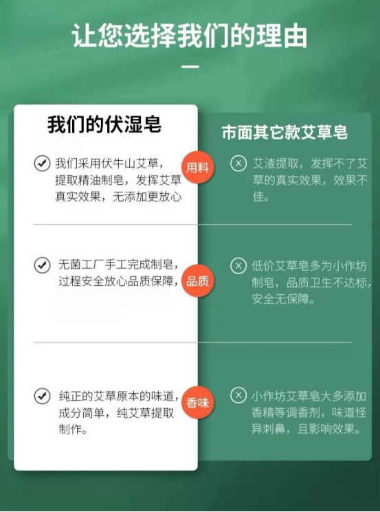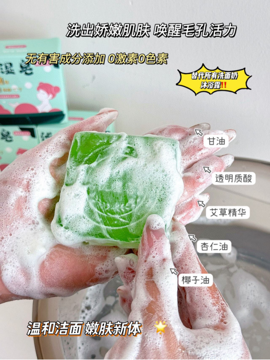 这款伏湿皂,既可以洗脸,也可以洗澡 艾叶护肤,专属养护:清爽柔滑 祛湿散寒,给肌肤恰到好处的滋养 舒适润体,柔滑肤感:洗后不紧绷 泡沫丰富,温和细腻:泡沫细腻