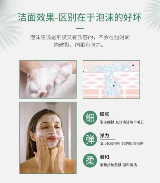 泡沫质感细密,能够深入毛孔内部, 吸附并带走多余的油脂、角质, 肌肤可以得到很彻底的清洁, 脸上爱出油、长痘的妹子, 一定要尝试一下!