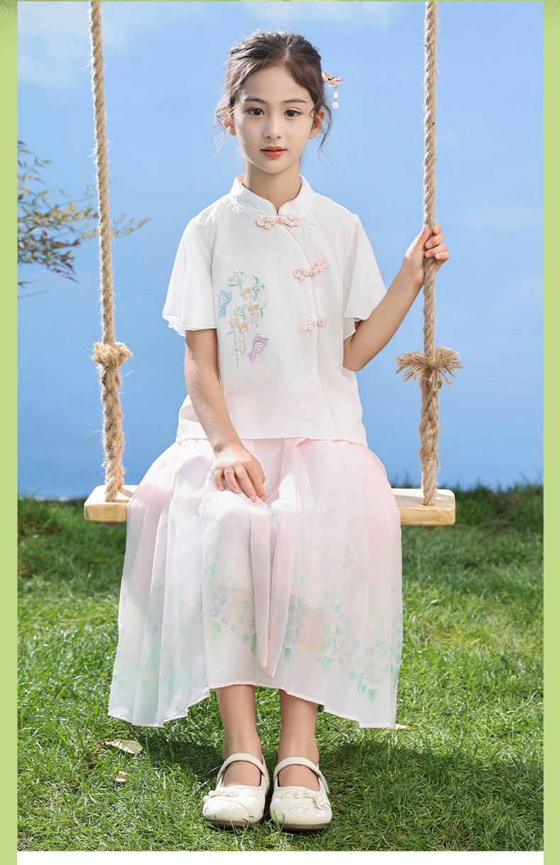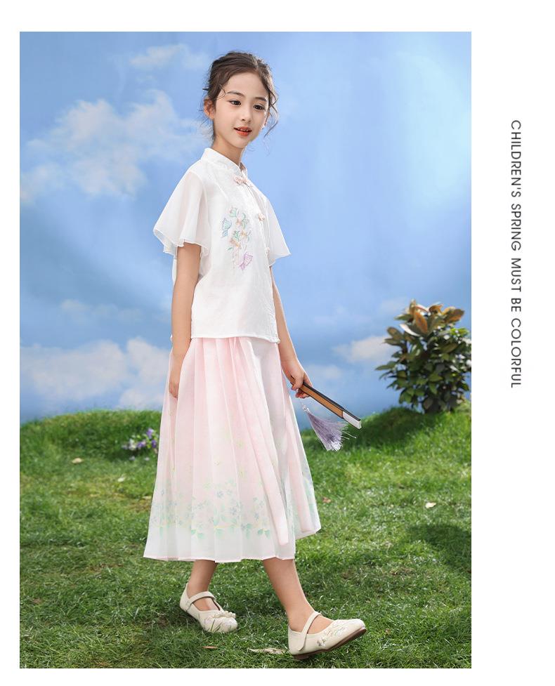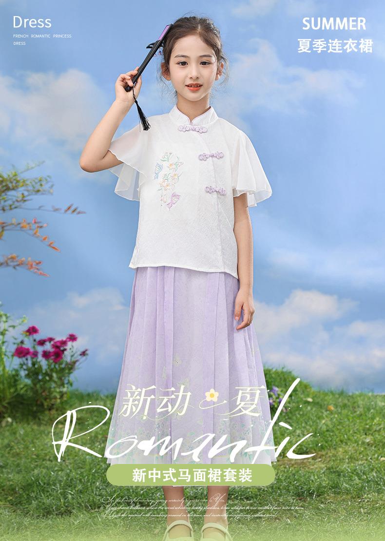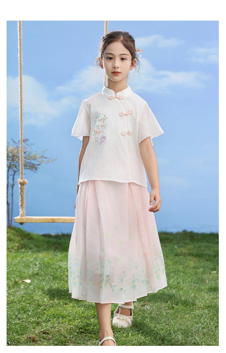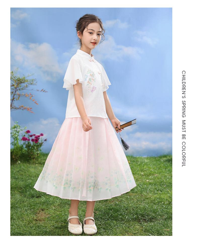 中国风女童汉服套装夏季大童唐装儿童古装女孩夏装2024新款马面裙