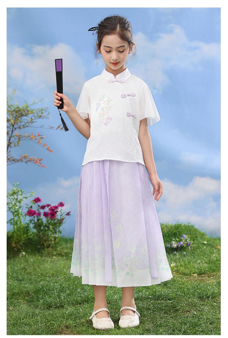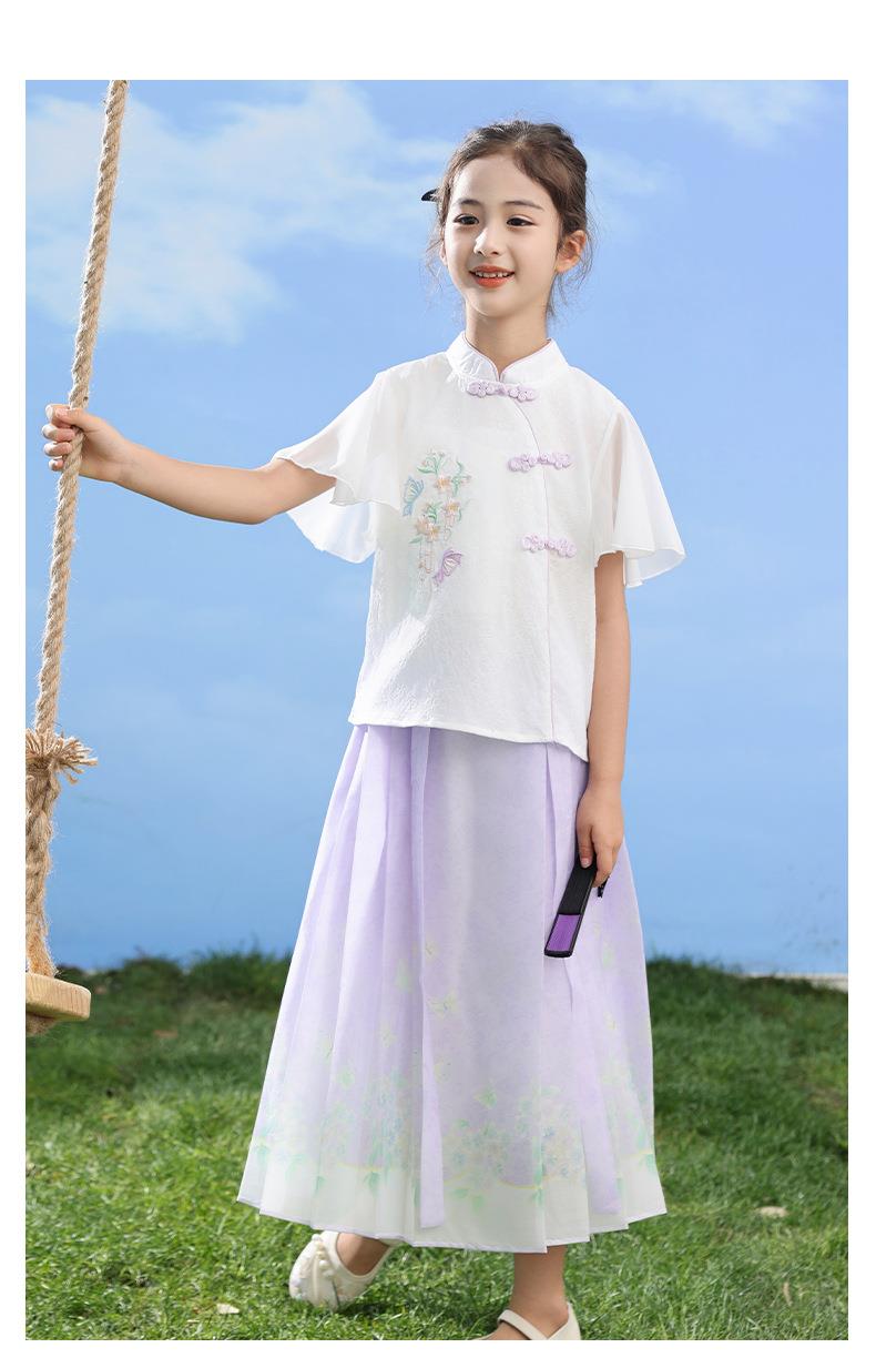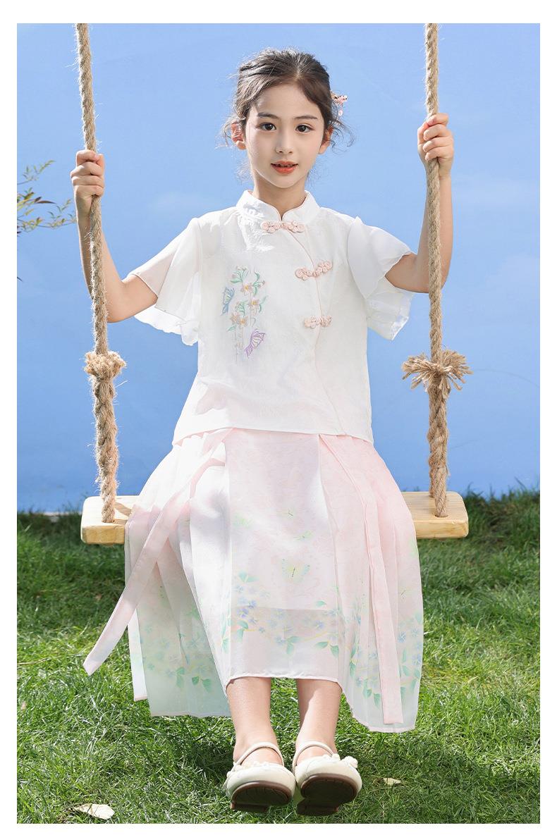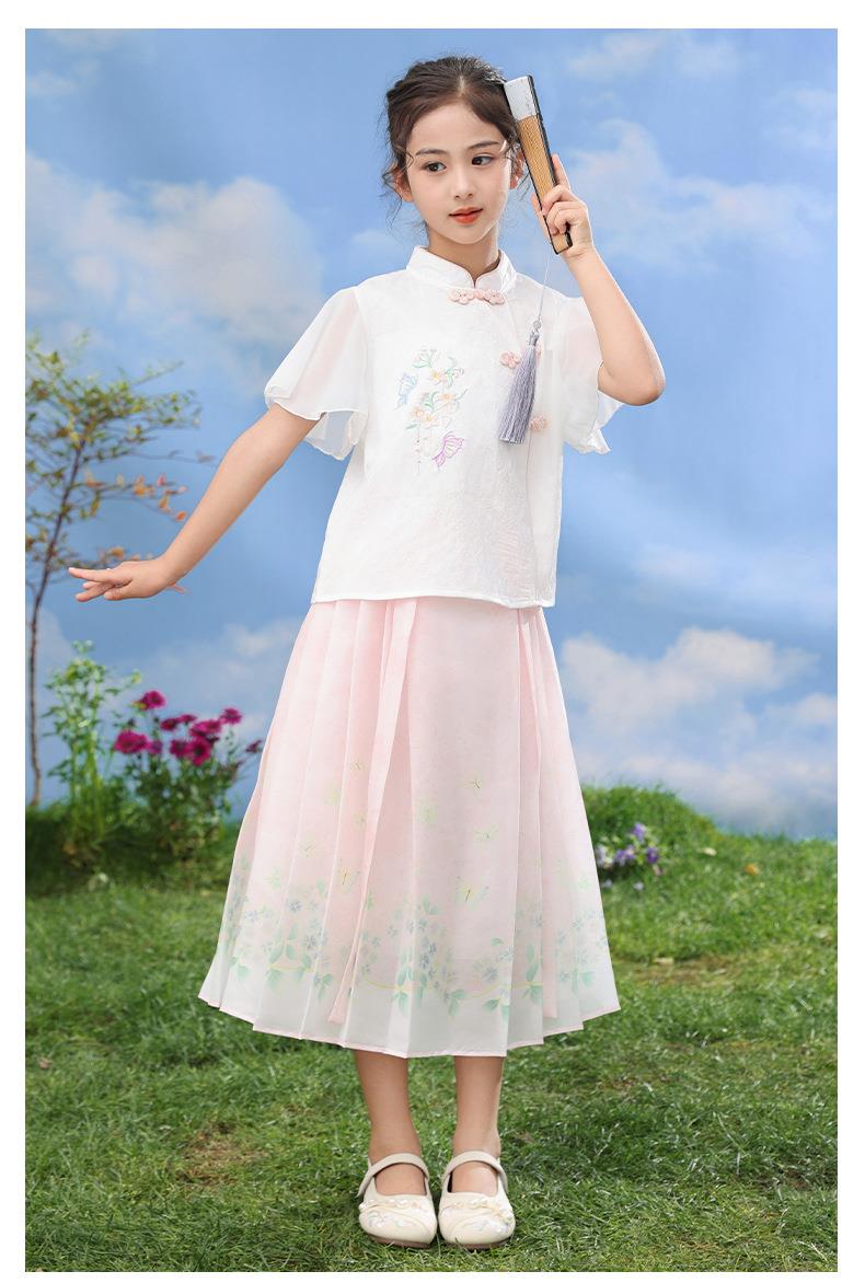 中国风女童汉服套装夏季大童唐装儿童古装女孩夏装2024新款马面裙