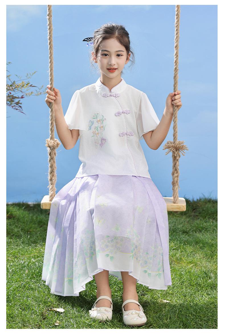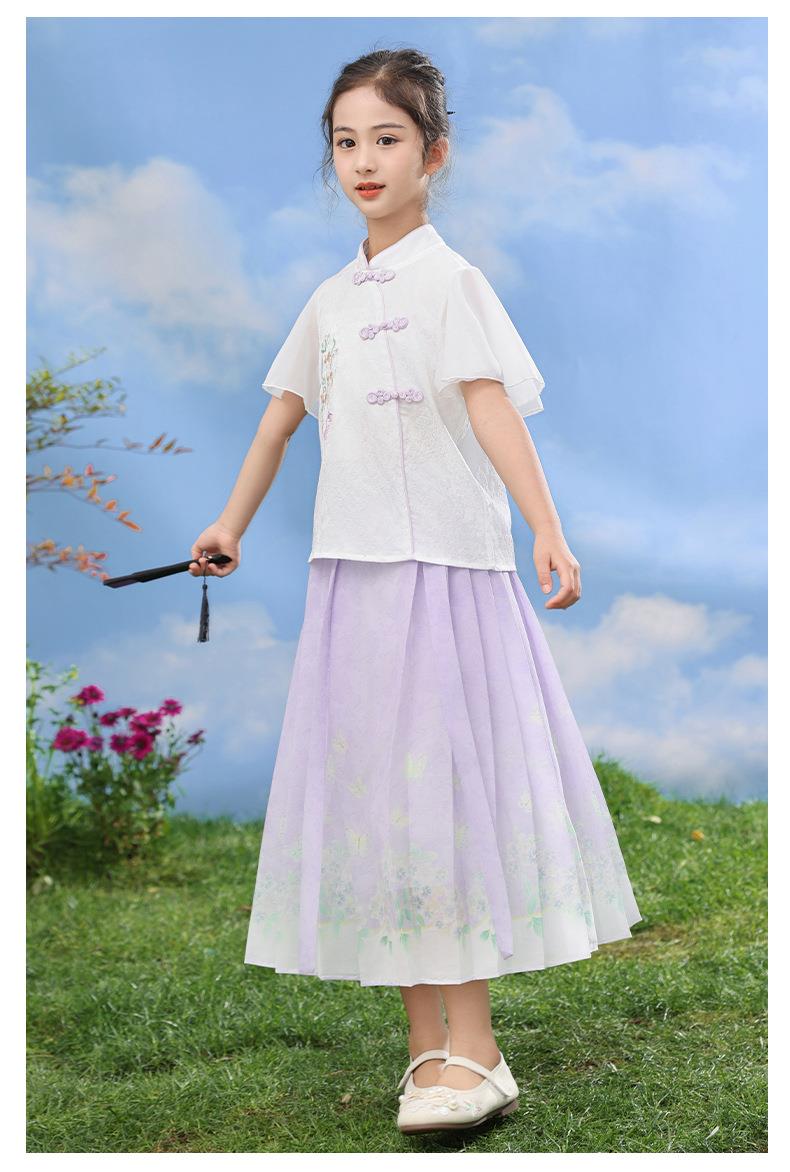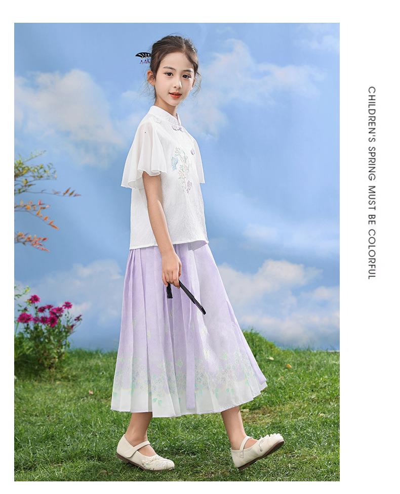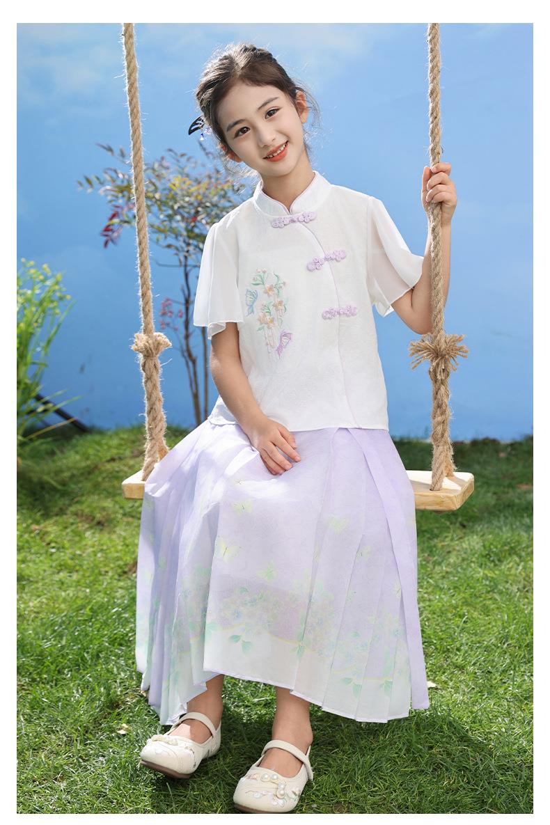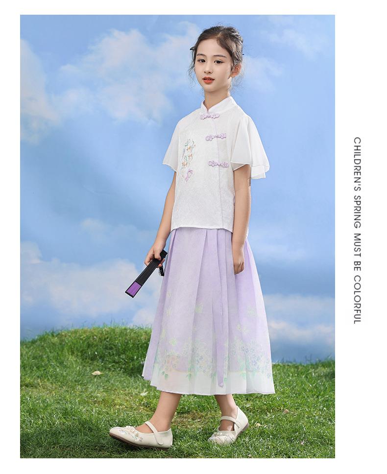 中国风女童汉服套装夏季大童唐装儿童古装女孩夏装2024新款马面裙