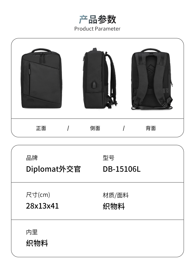 Diplomat外交官DB-15106L商务时尚双肩背包
