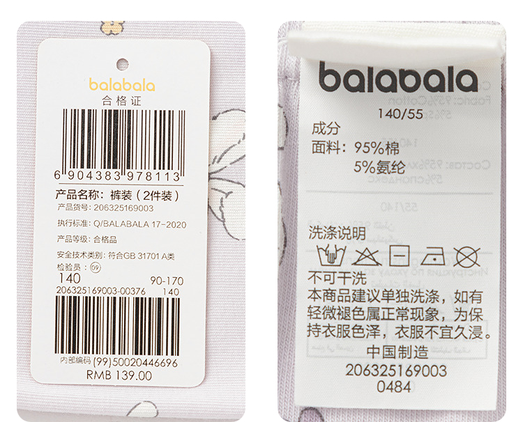 巴拉巴拉女保暖裤秋季新品儿童秋裤打底裤睡裤两条装
