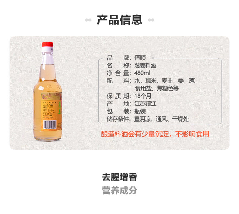 恒顺 葱姜料酒 480ML 常州盐业有限公司