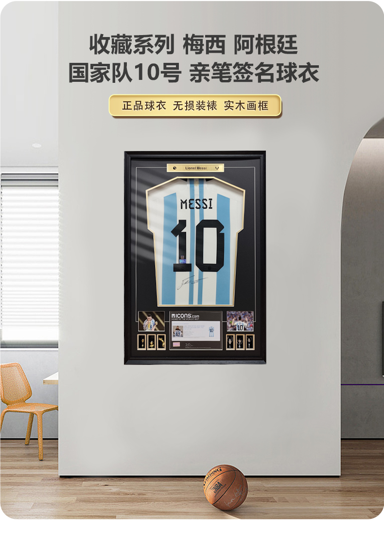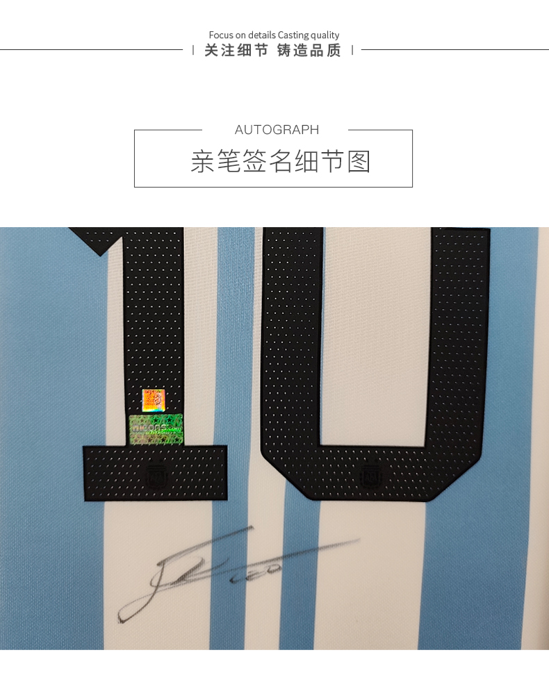 收藏系列 梅西 阿根廷国家队10号 亲笔签名球衣