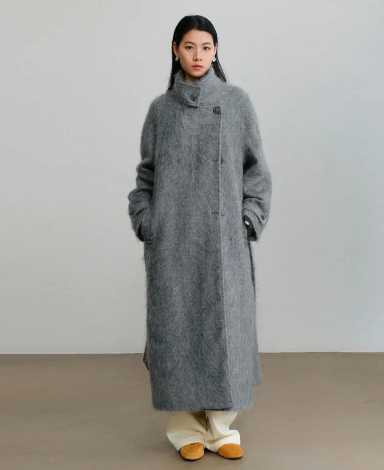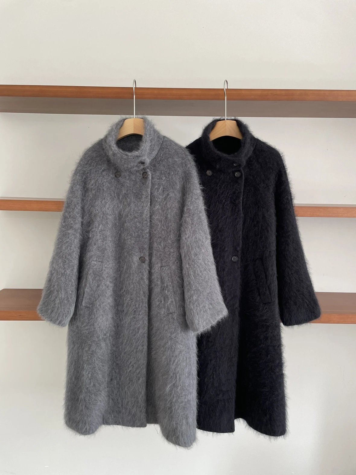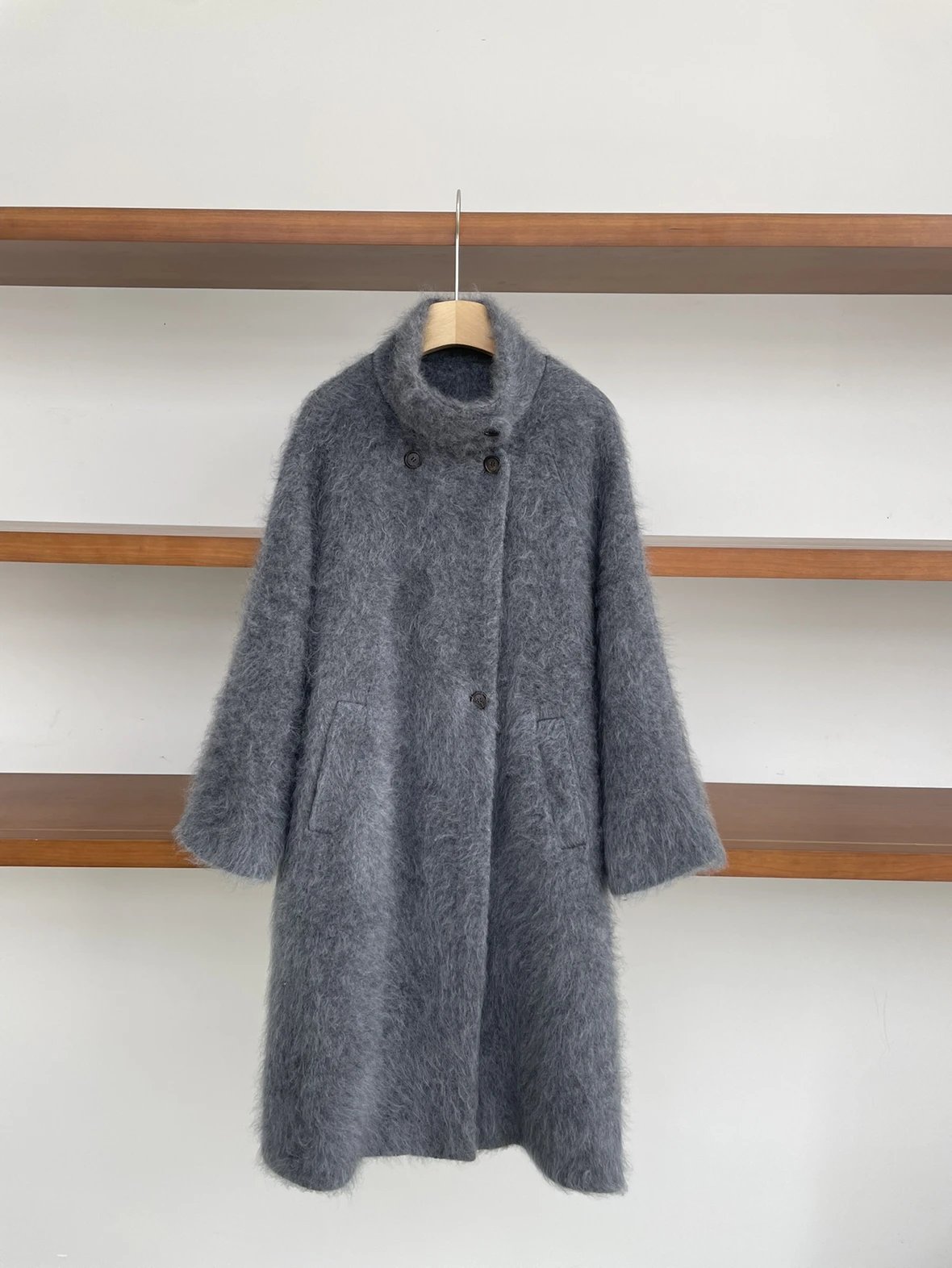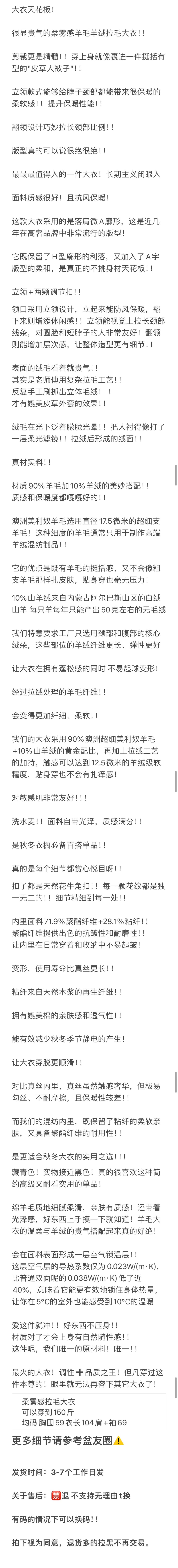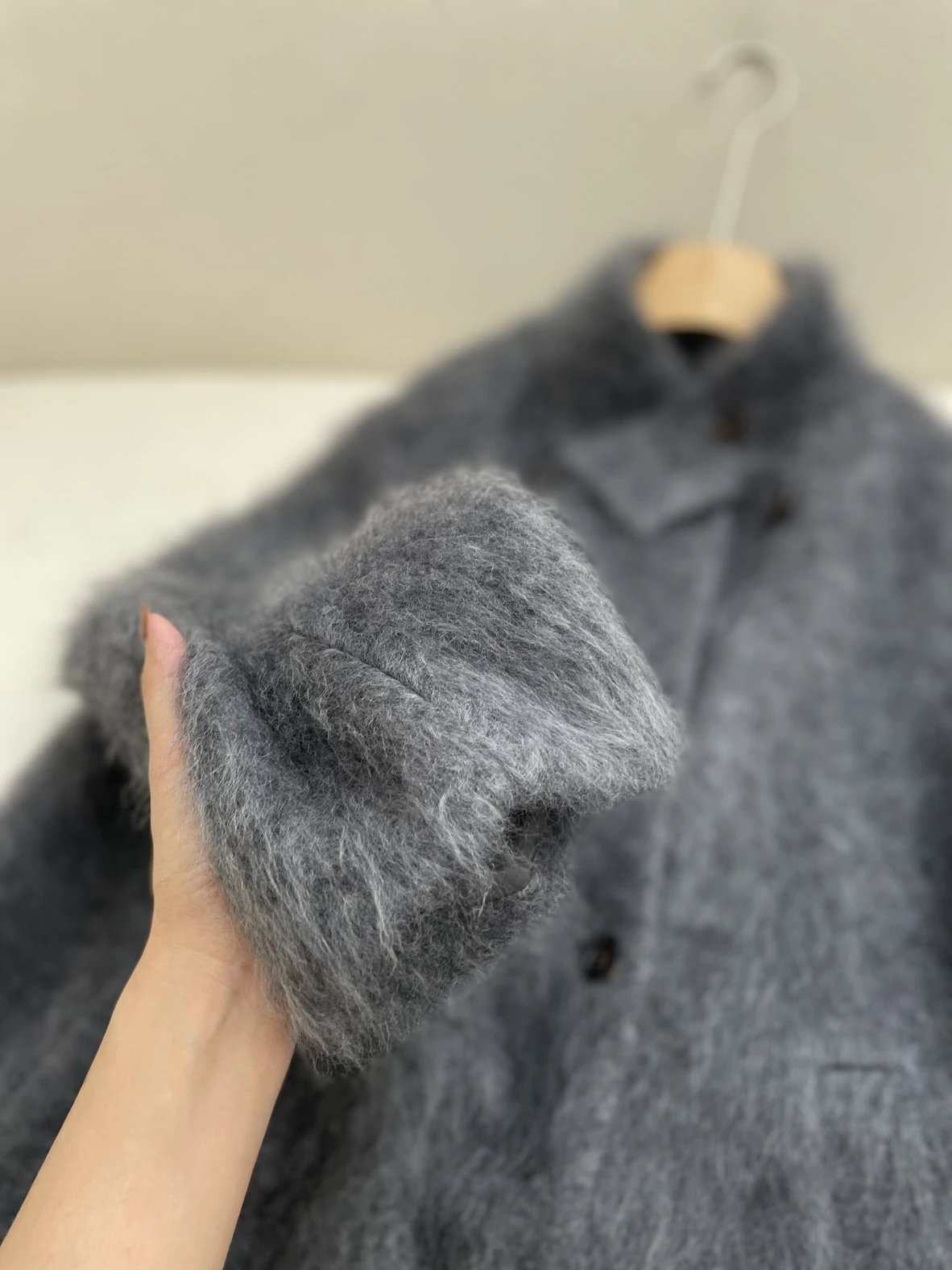 重磅!立领拉毛大衣 羊毛羊绒 中长款大衣 柔雾皮草感大衣