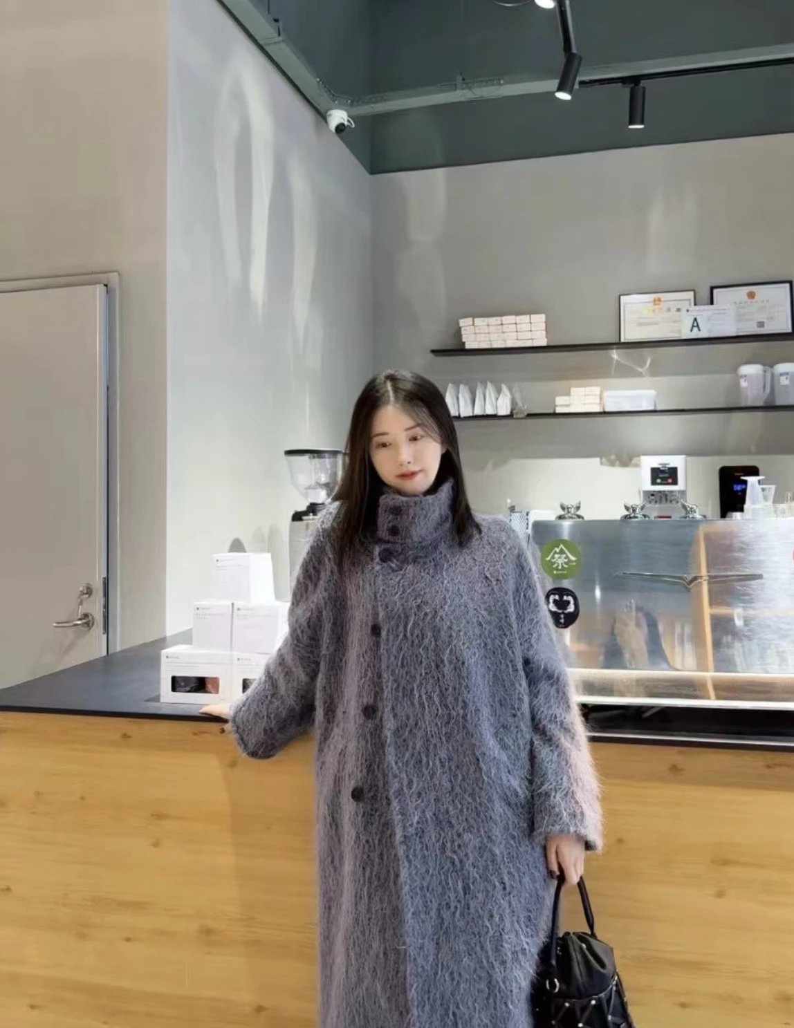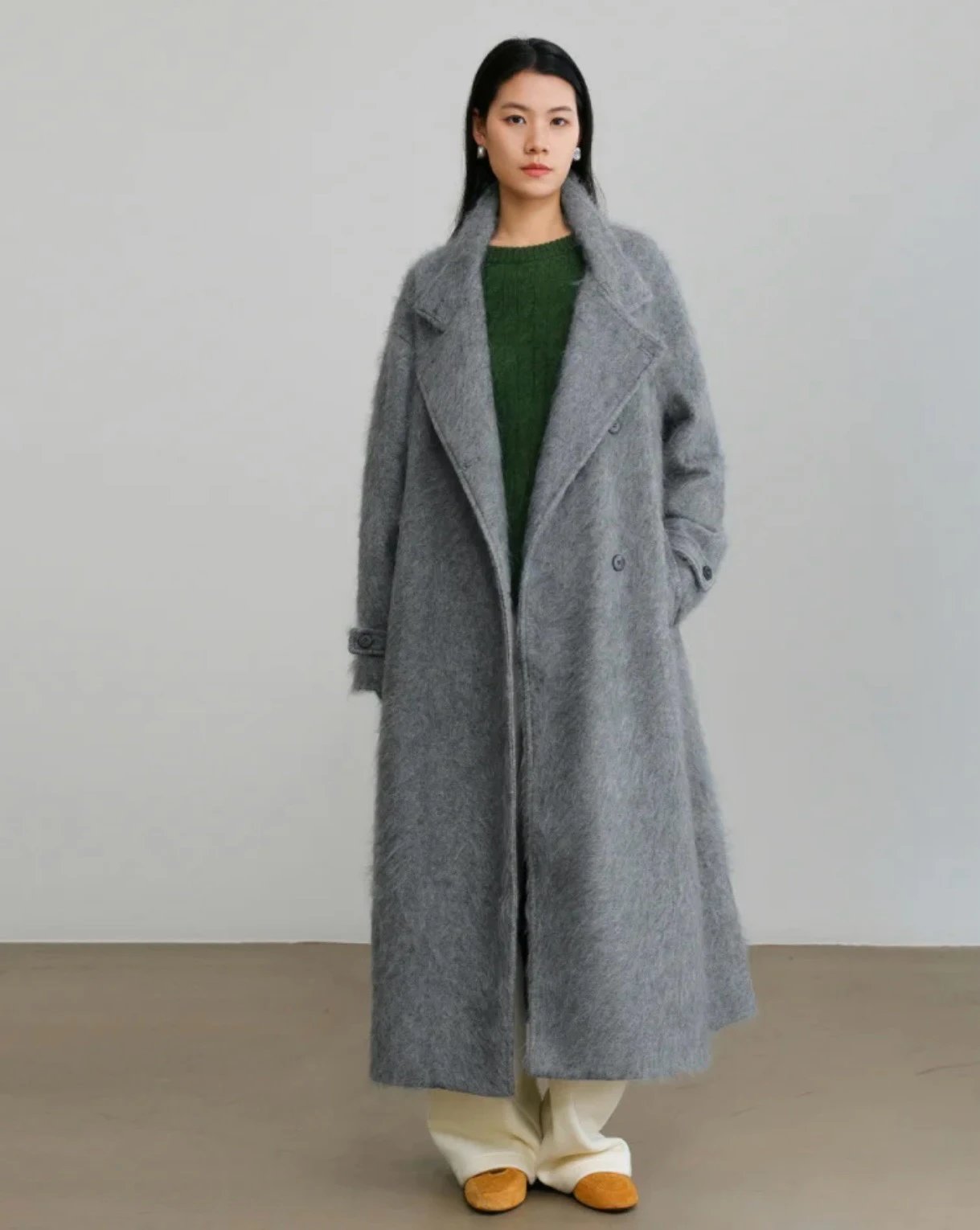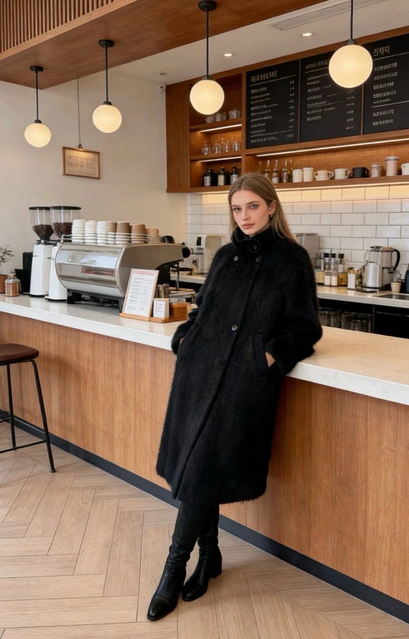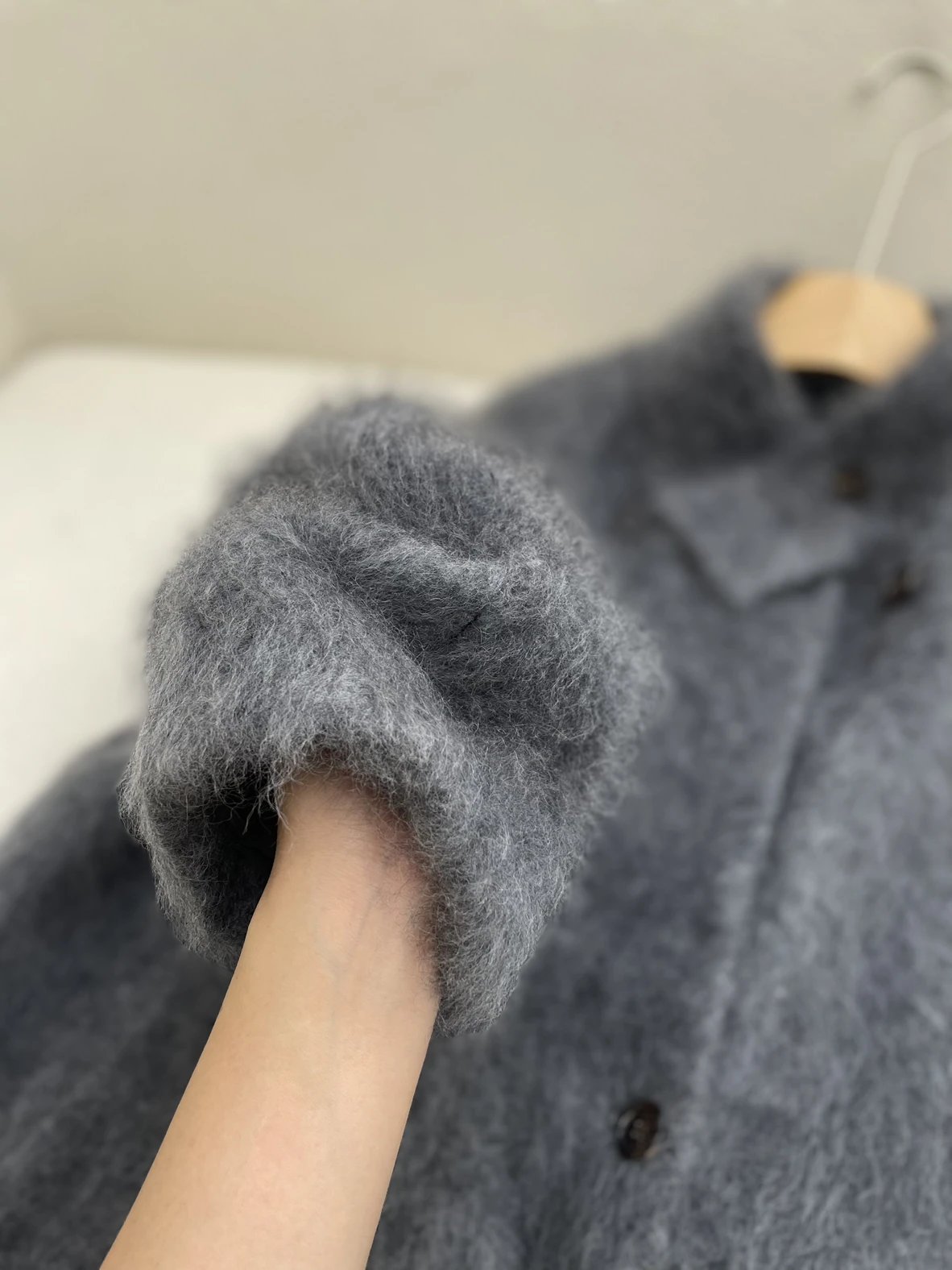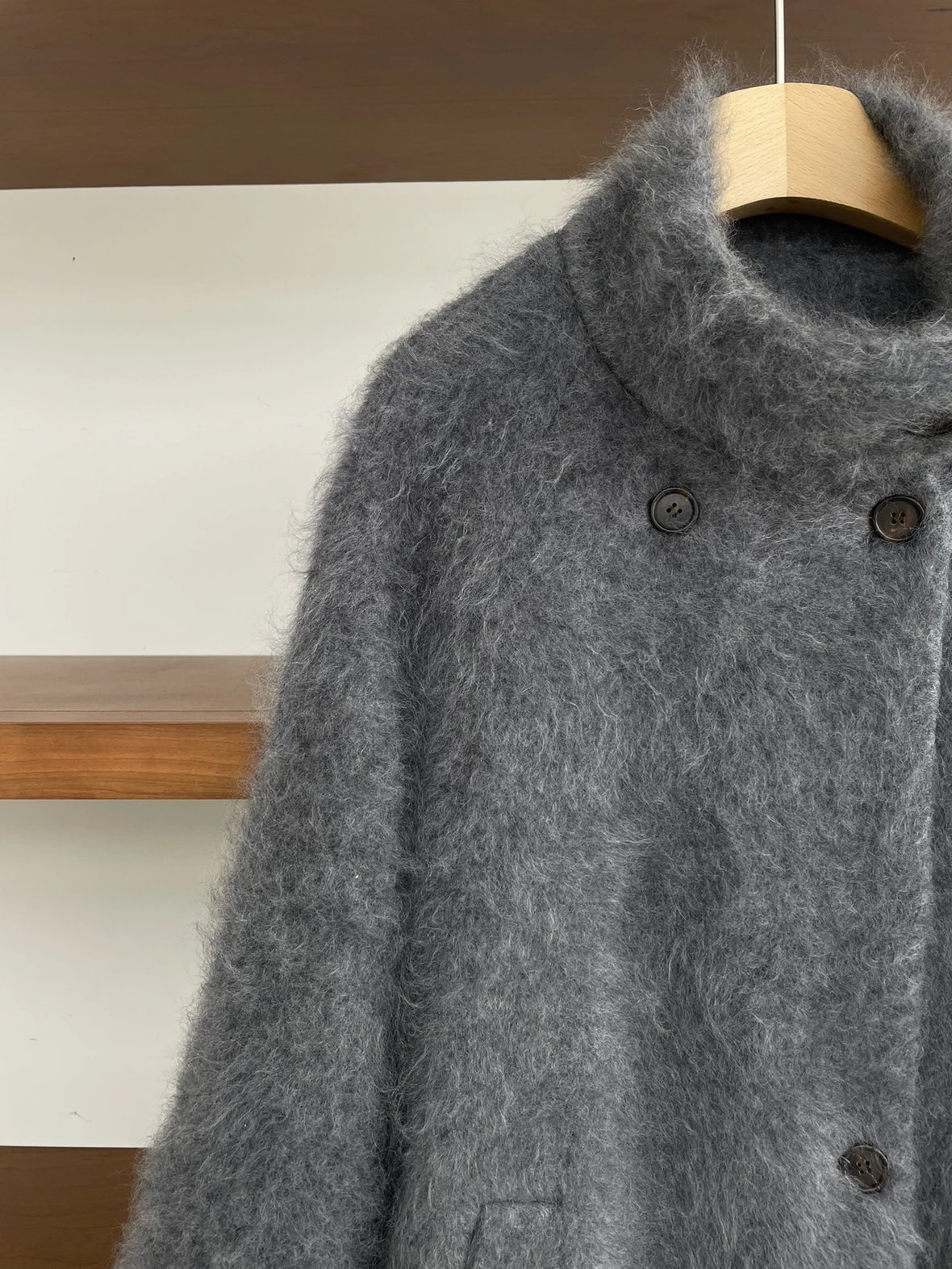 重磅!立领拉毛大衣 羊毛羊绒 中长款大衣 柔雾皮草感大衣
