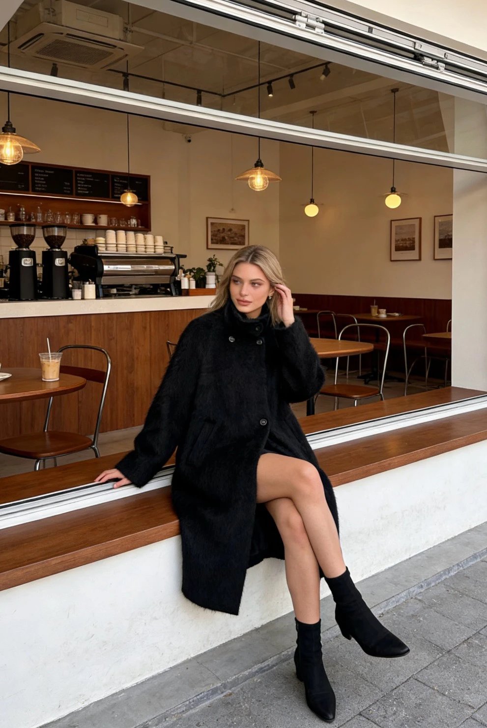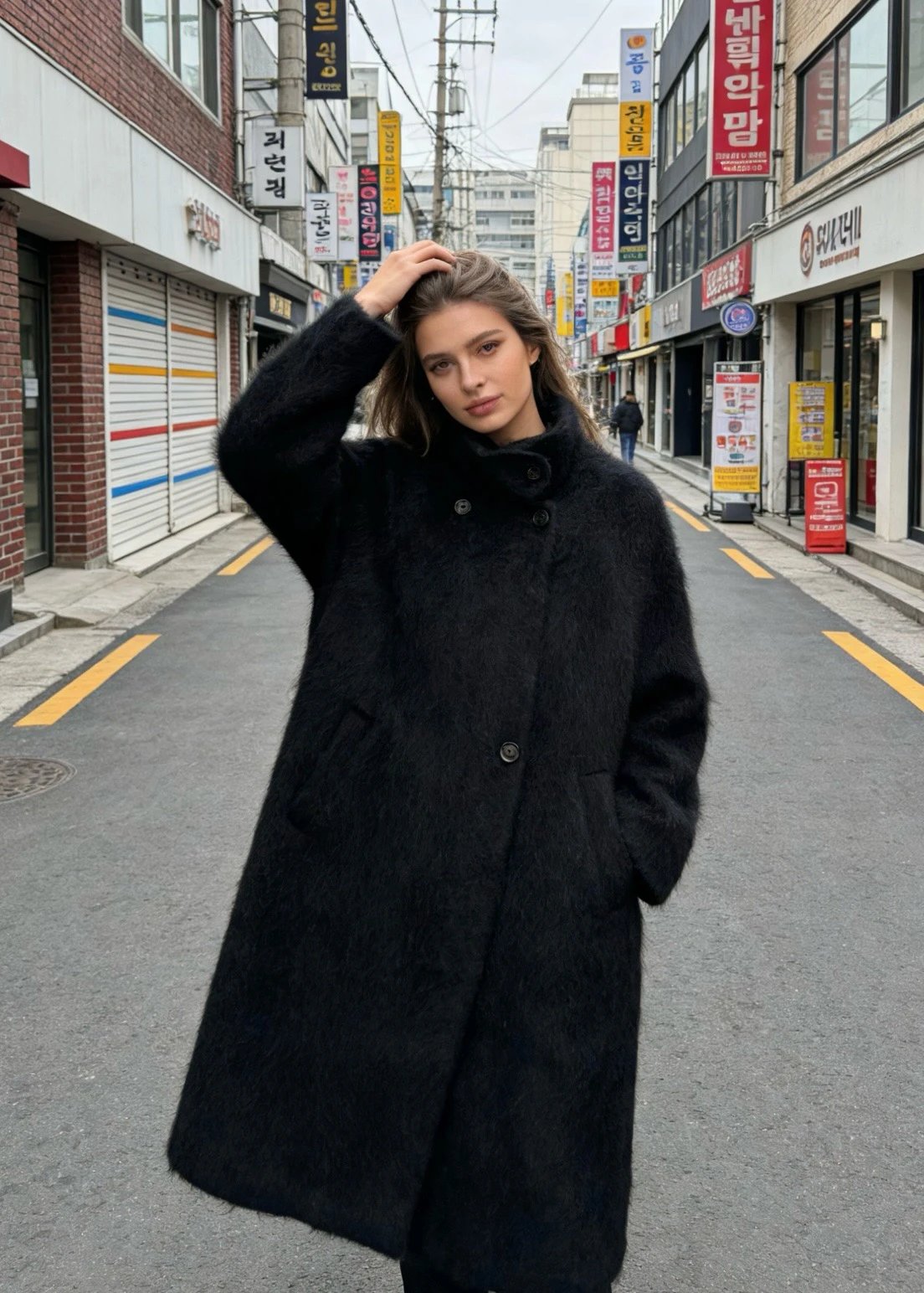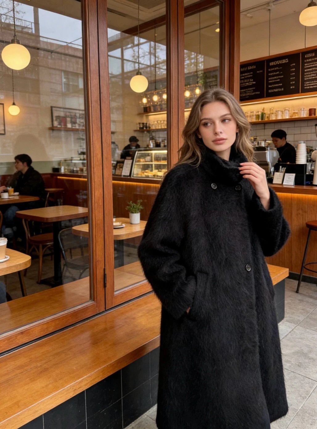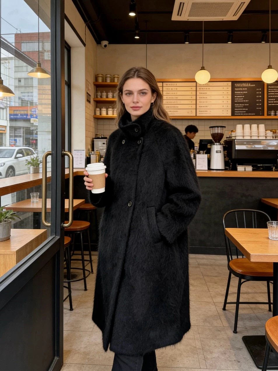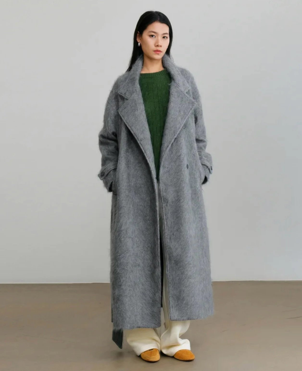 重磅!立领拉毛大衣 羊毛羊绒 中长款大衣 柔雾皮草感大衣