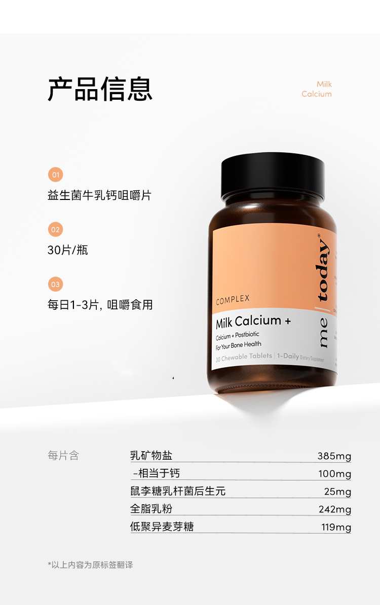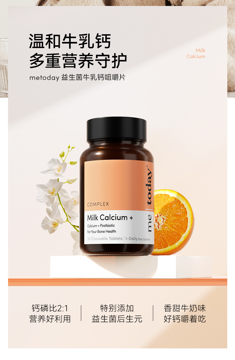 守护全家骨骼!【限时秒杀!99元3瓶】metoday 牛乳钙咀嚼片营养吸收 30片/瓶