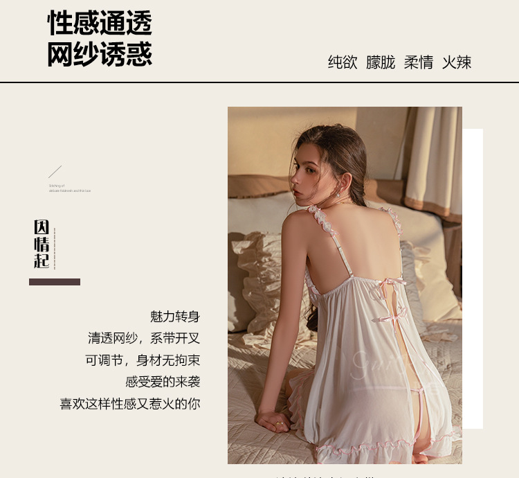 【YW】无忧购“3.8春日礼遇”情趣内衣性感透视网纱开叉系带诱惑睡裙19095(截单后3-5天发货)