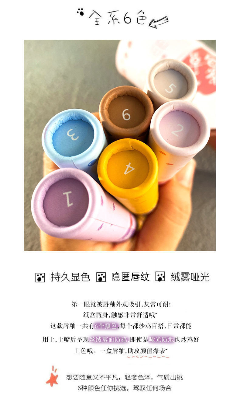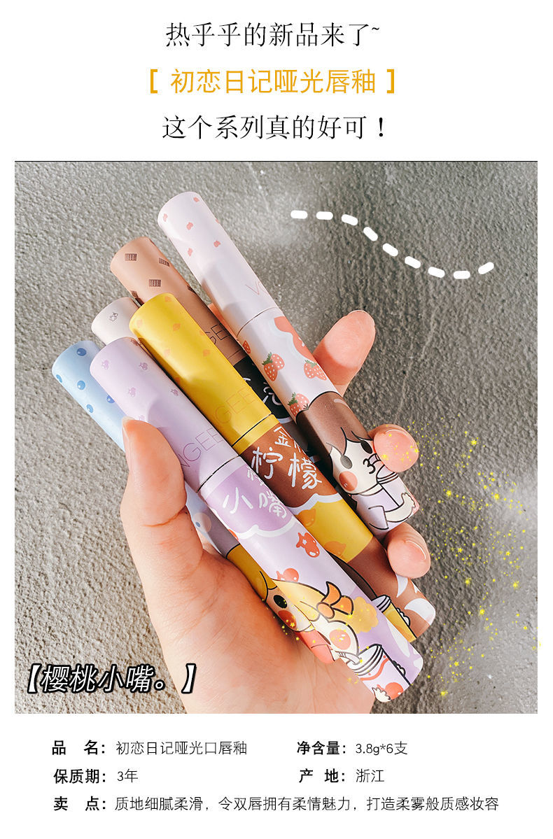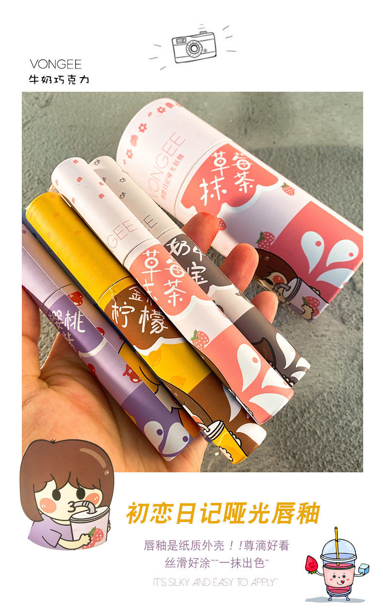 好用到炸裂~VONGEE六支装唇釉套装可爱哑光雾面丝绒不沾杯持久学生款