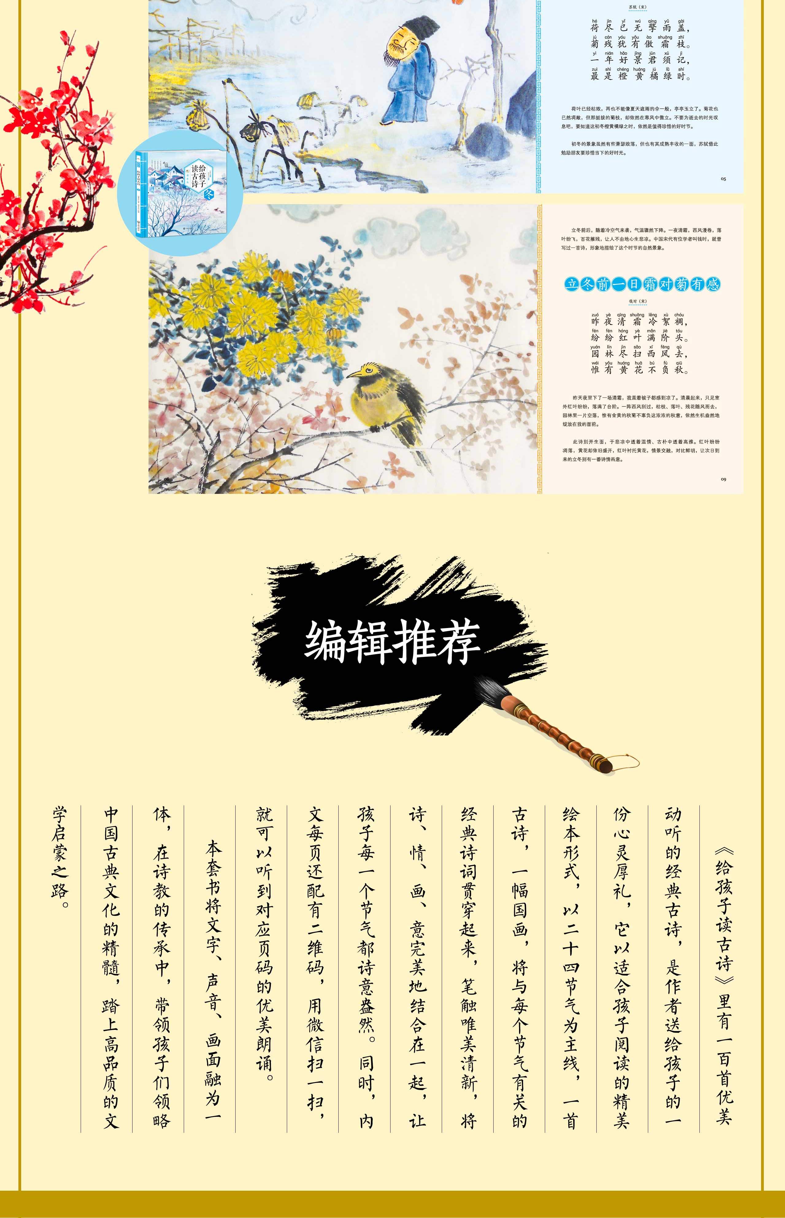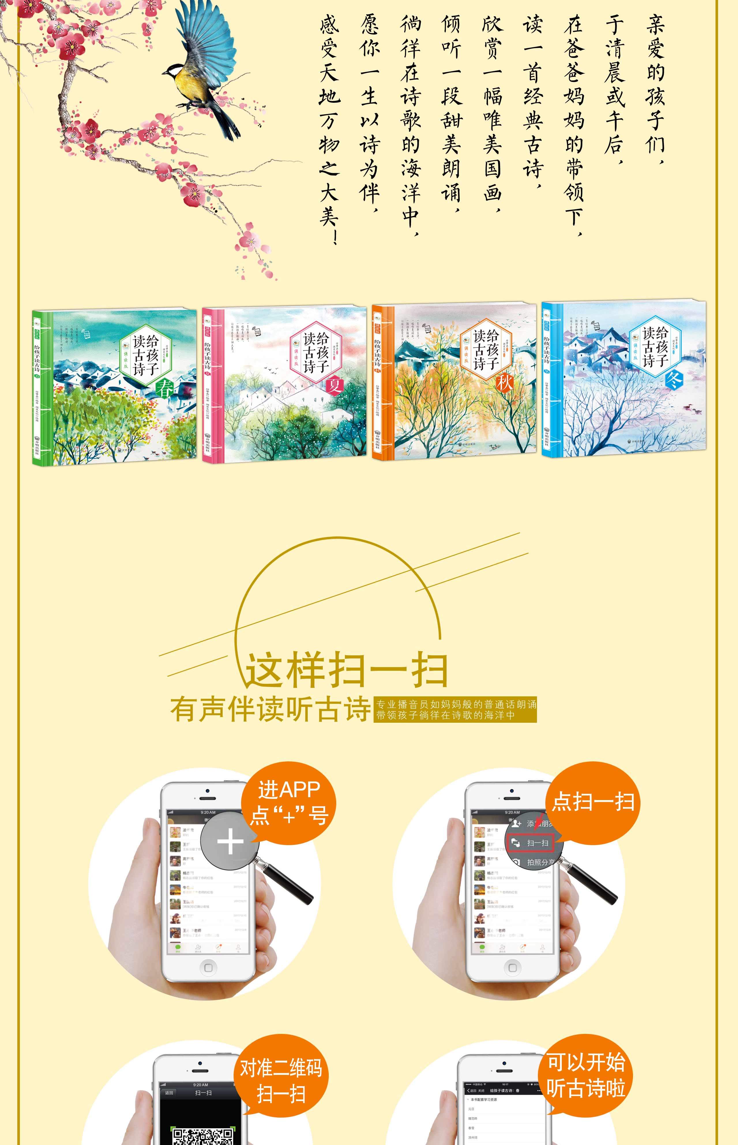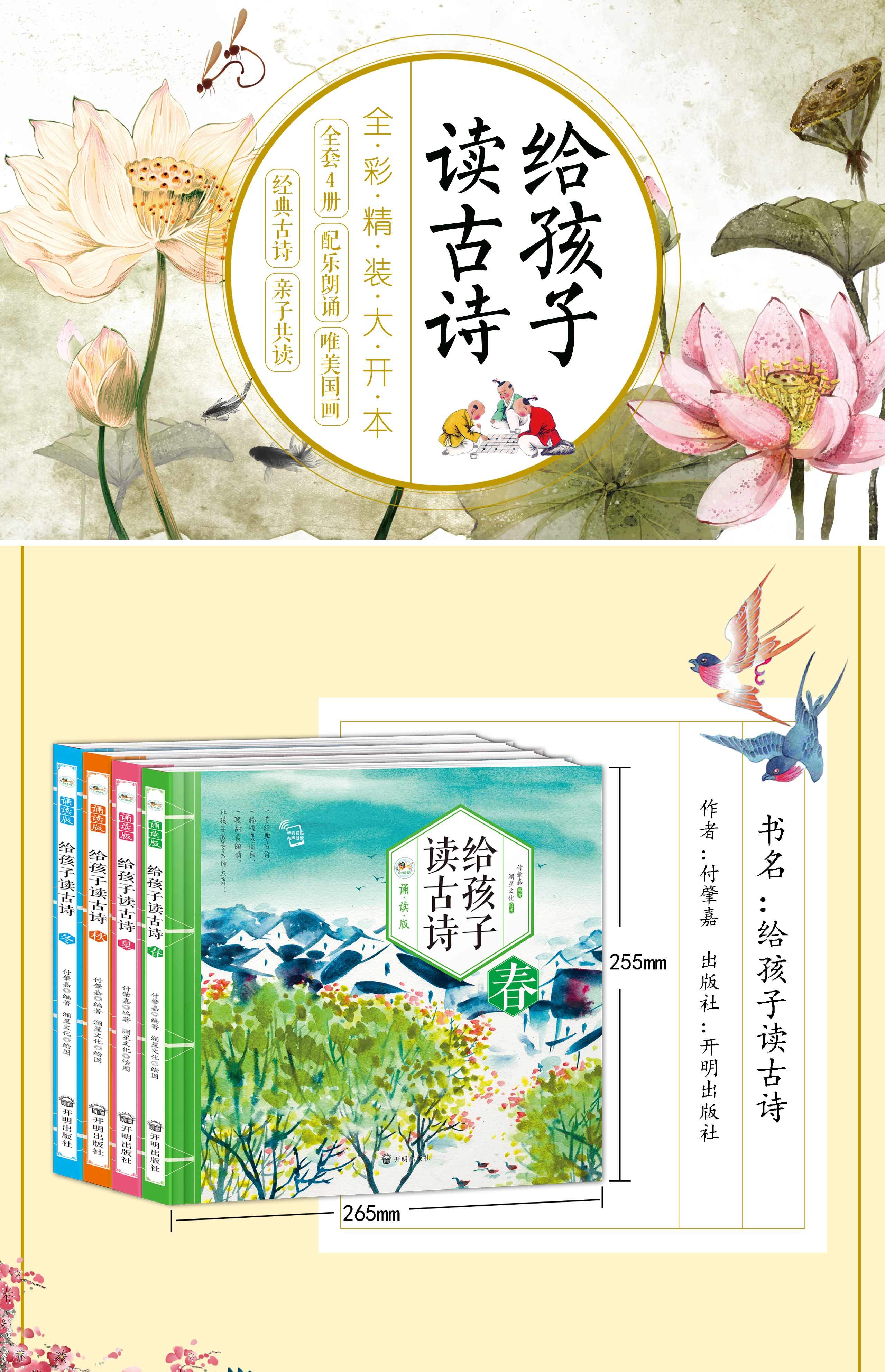 【3岁+】《给孩子读古诗-诵读版》(全4册)一套大字注意版古诗启蒙书 配有音频,将文字、声音、画面融为一体,在诗教的传承中,带领孩子们领略中国古典文化的精髓