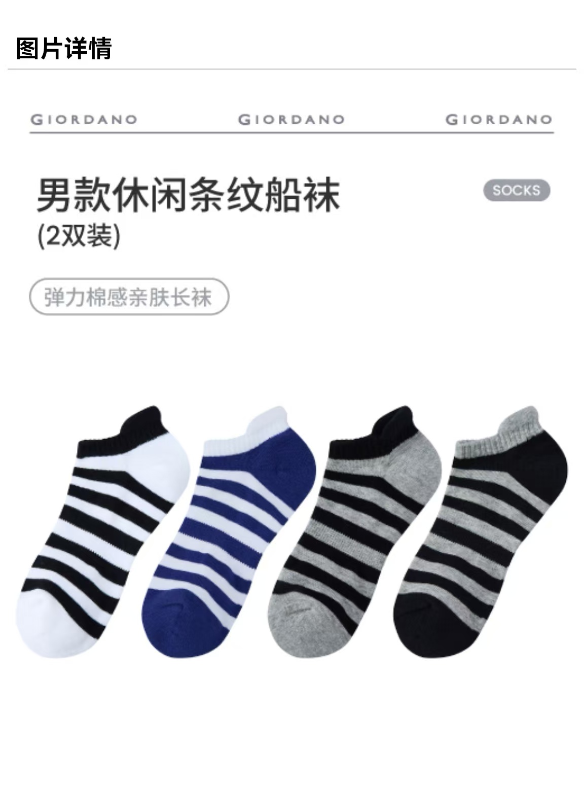 佐丹奴男装休闲条纹船袜(一扎两双)01156123