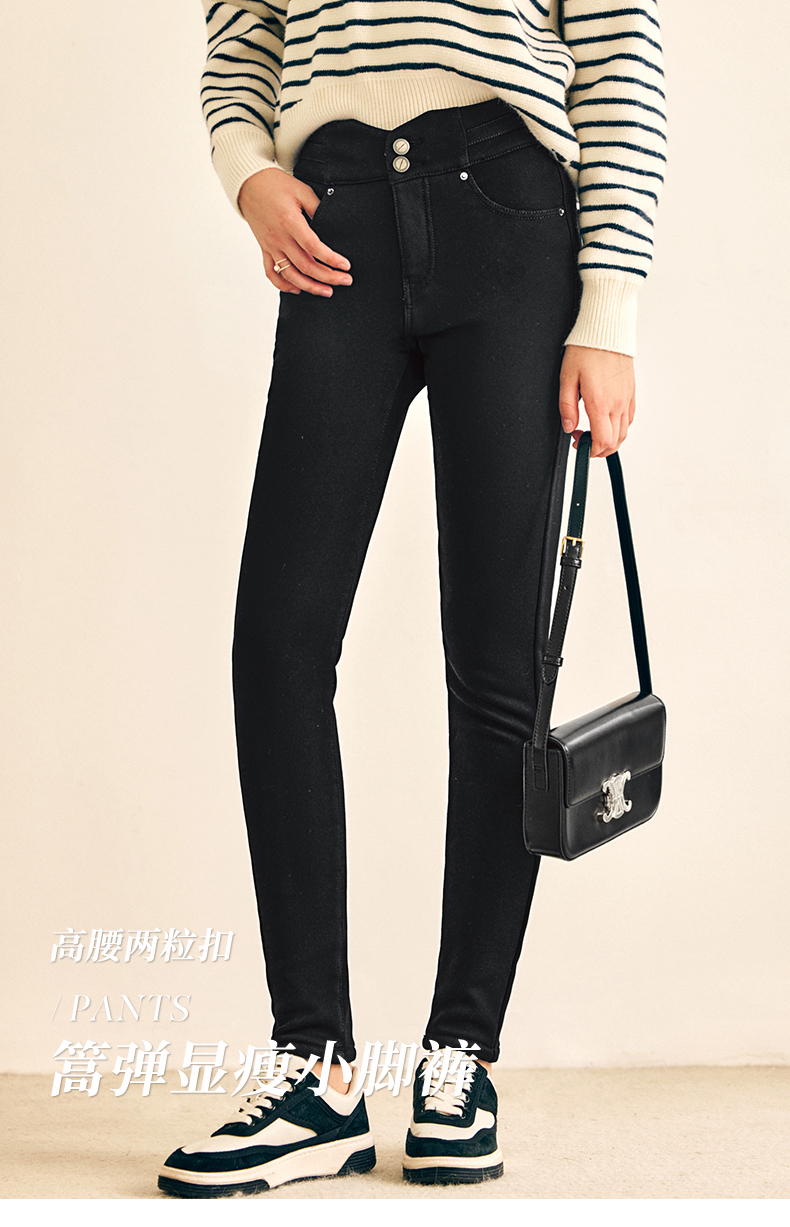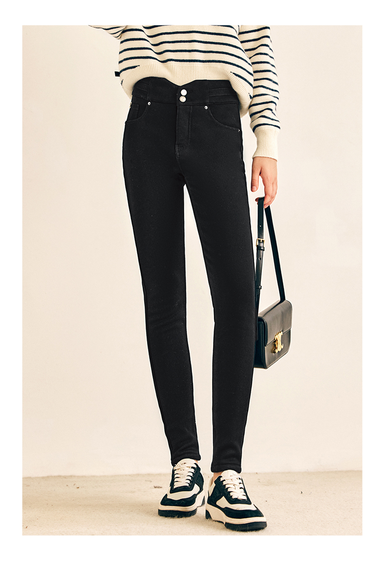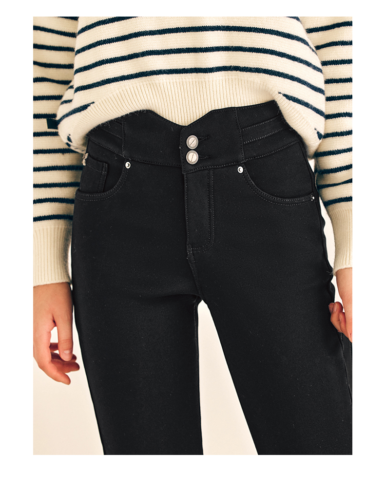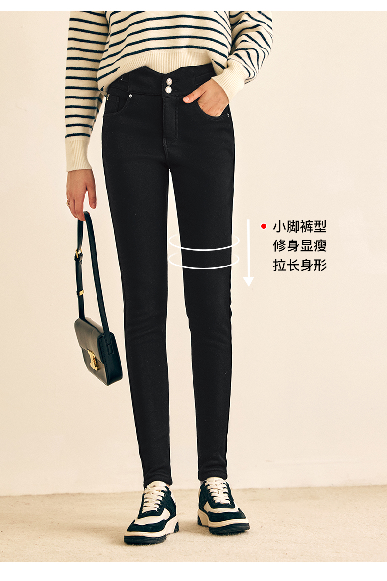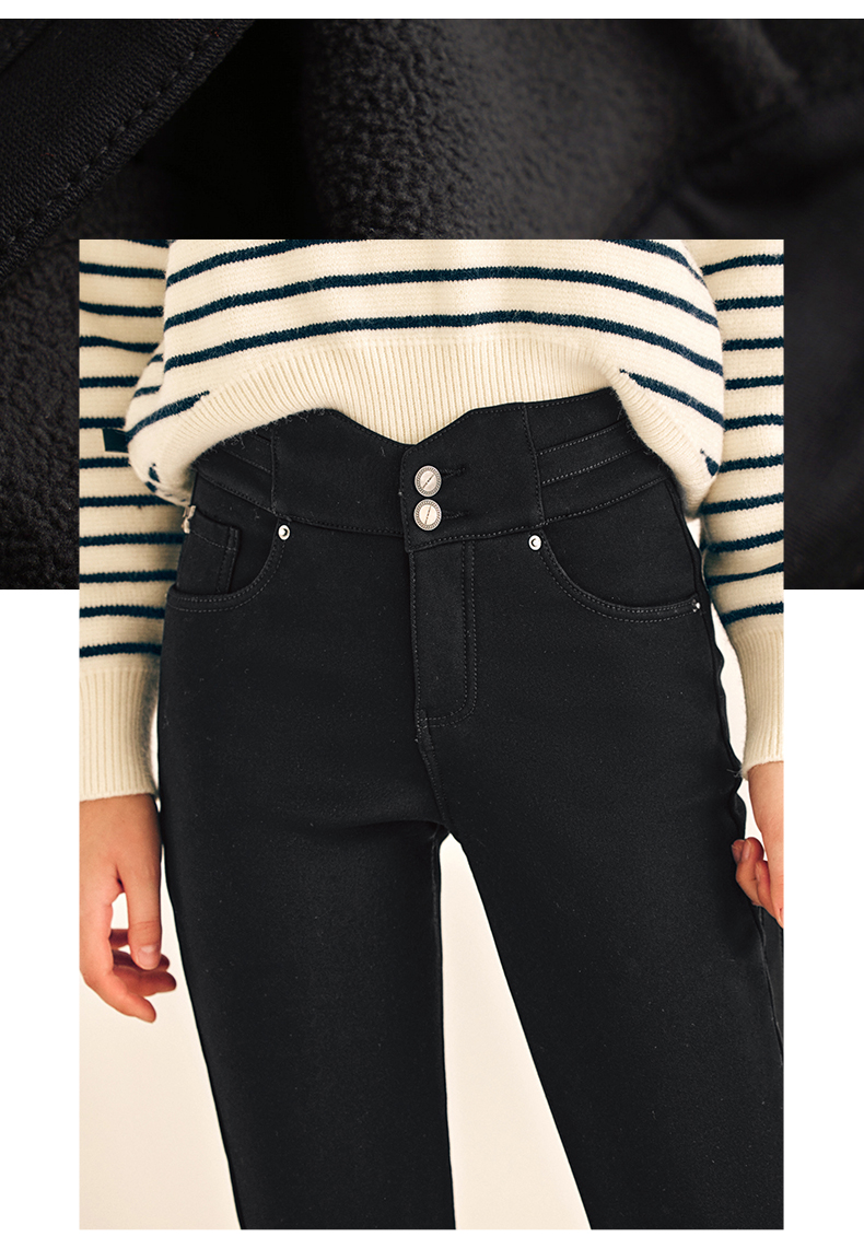 OLrain欧芮儿法式黑色加绒牛仔裤女春2025年新款高腰紧身小脚裤