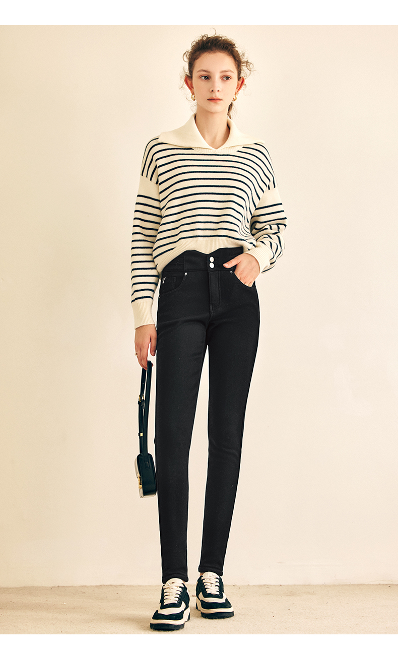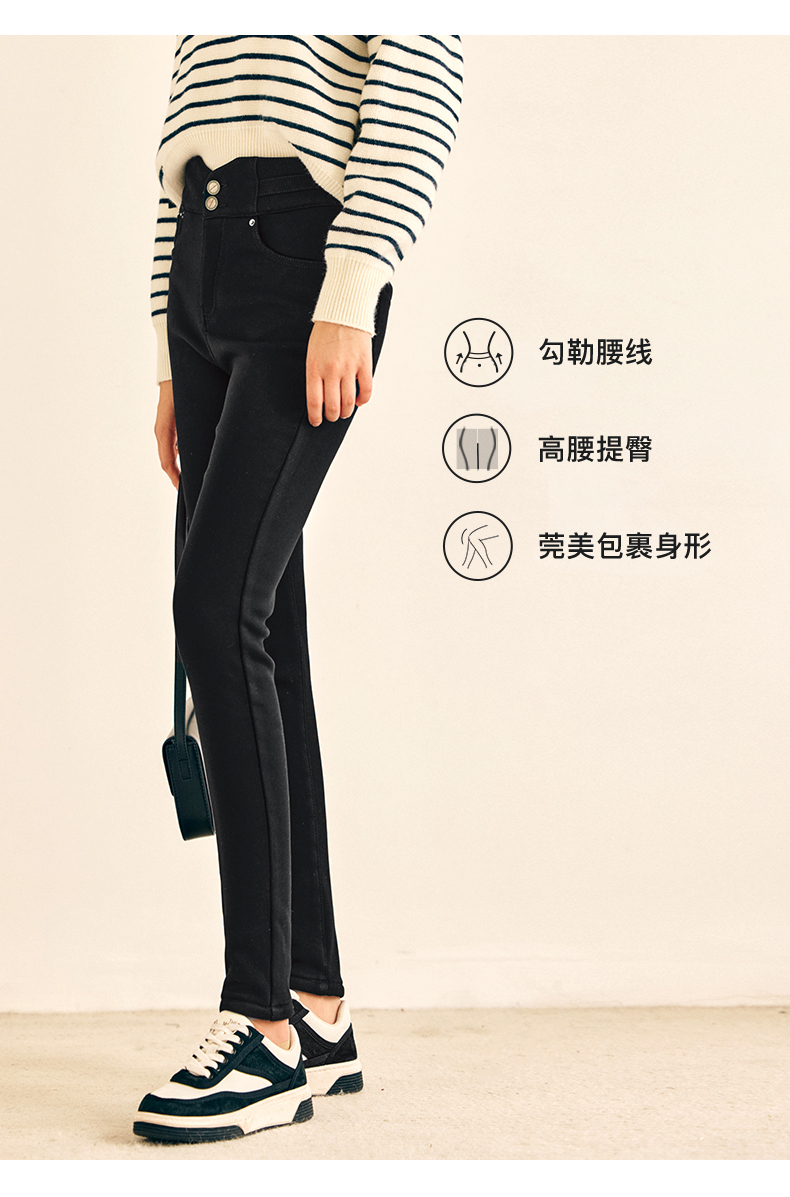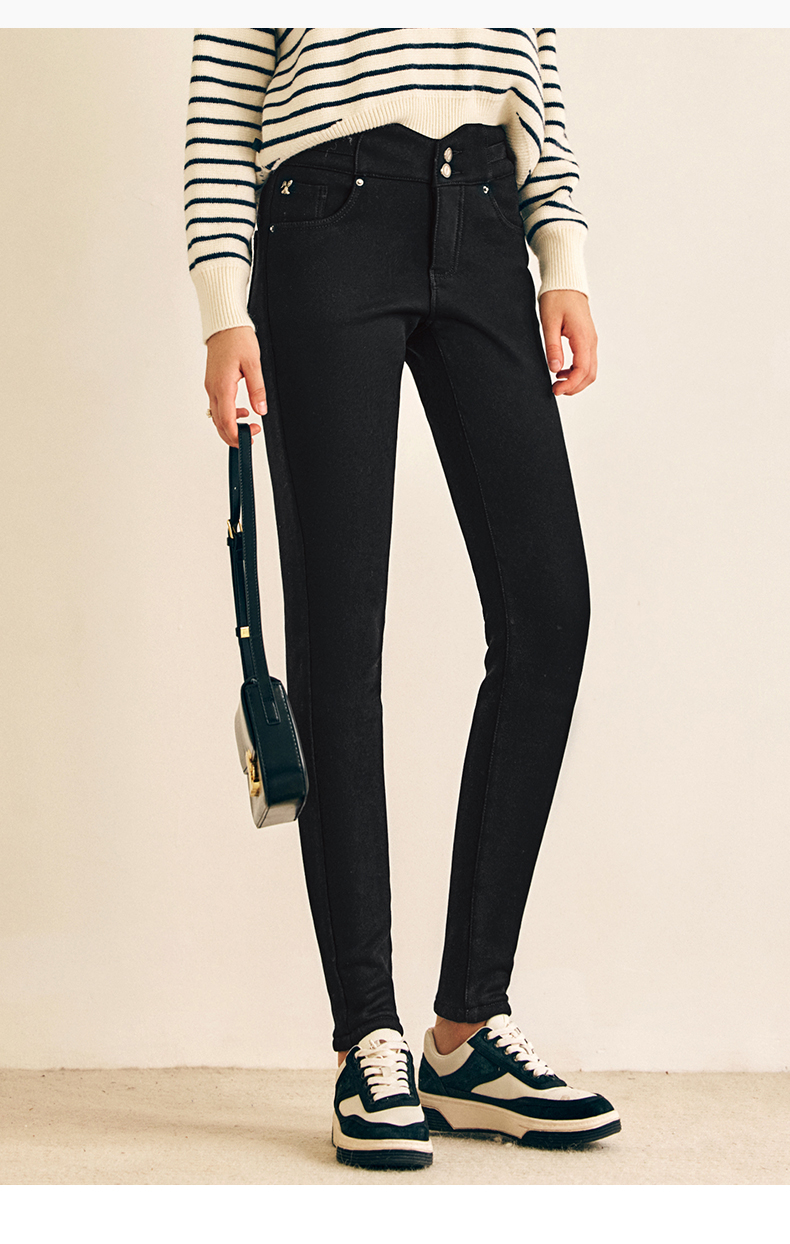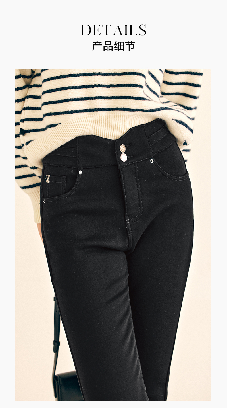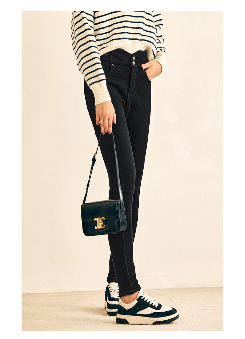 OLrain欧芮儿法式黑色加绒牛仔裤女春2025年新款高腰紧身小脚裤