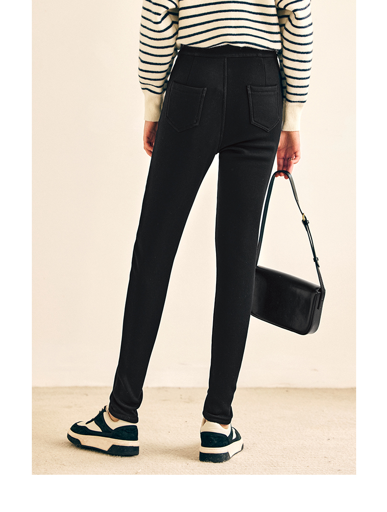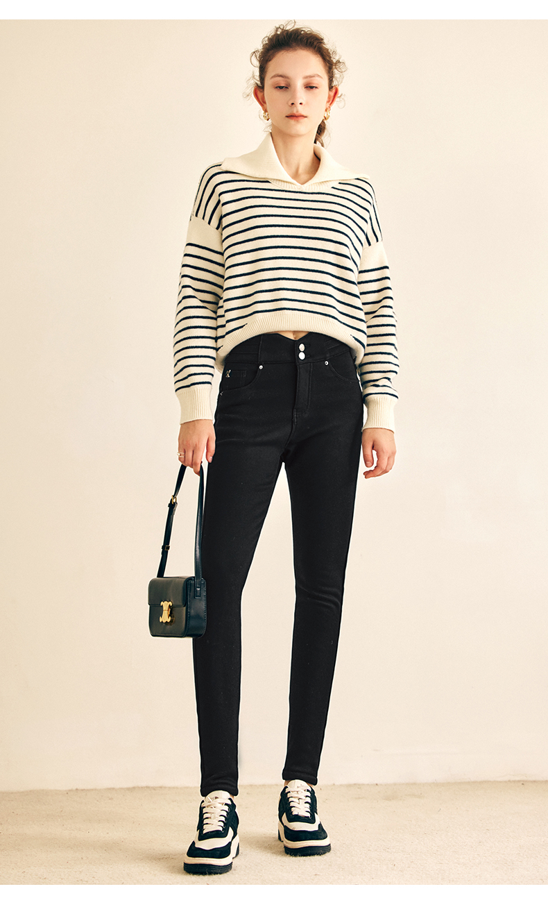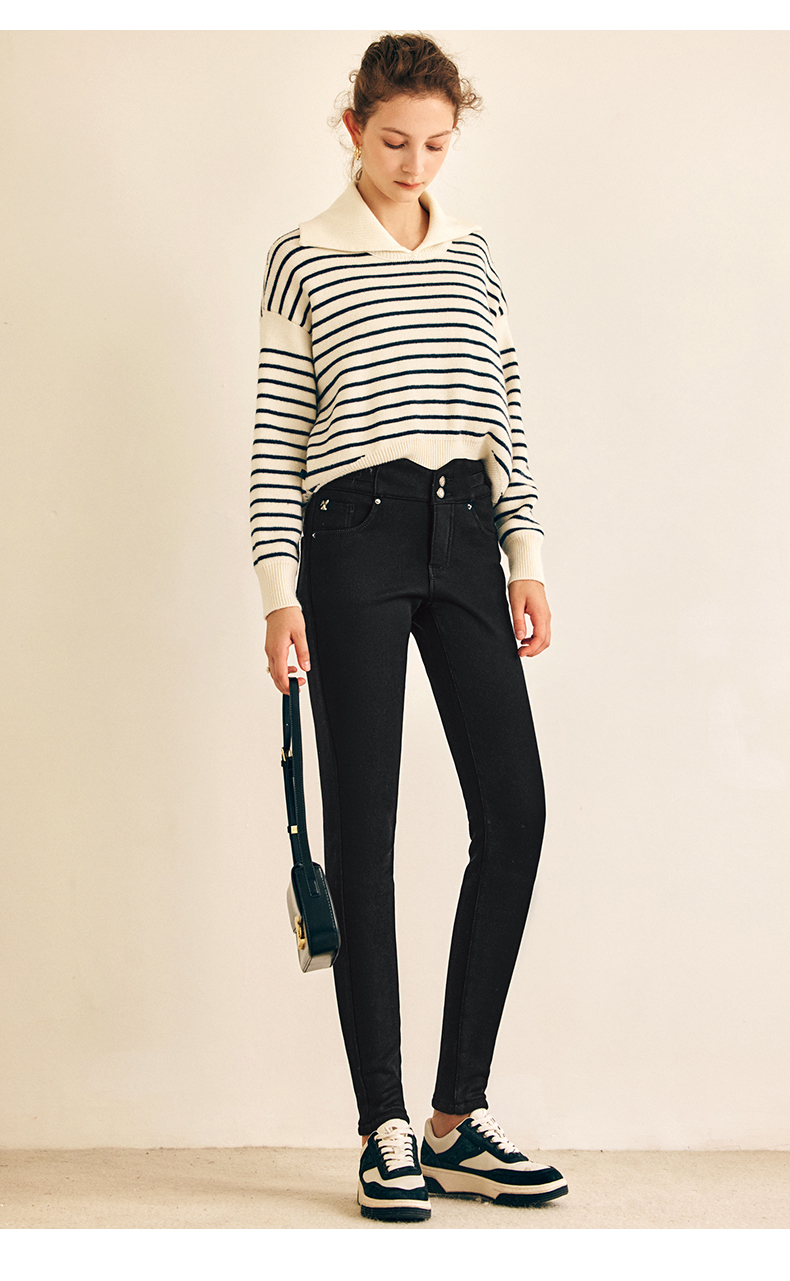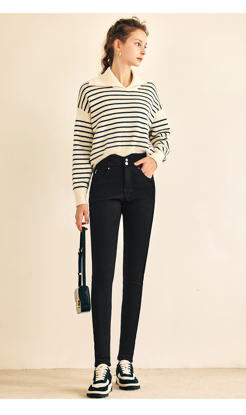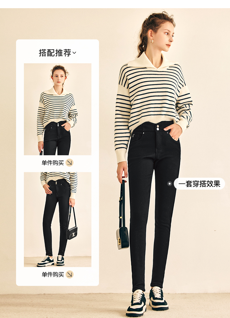 OLrain欧芮儿法式黑色加绒牛仔裤女春2025年新款高腰紧身小脚裤