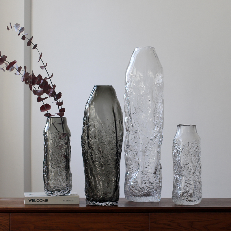 简约轻奢风落地大直筒玻璃花瓶 酒店样板间软装饰品插花花器批发