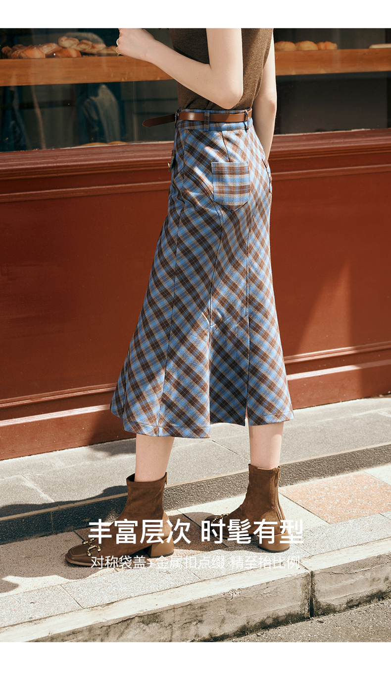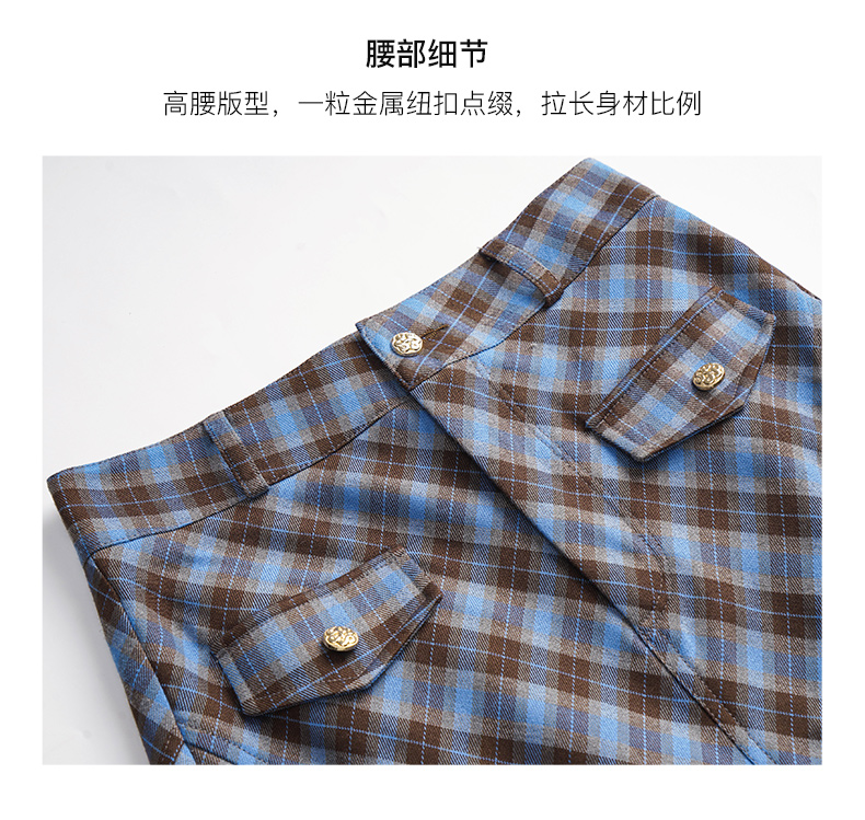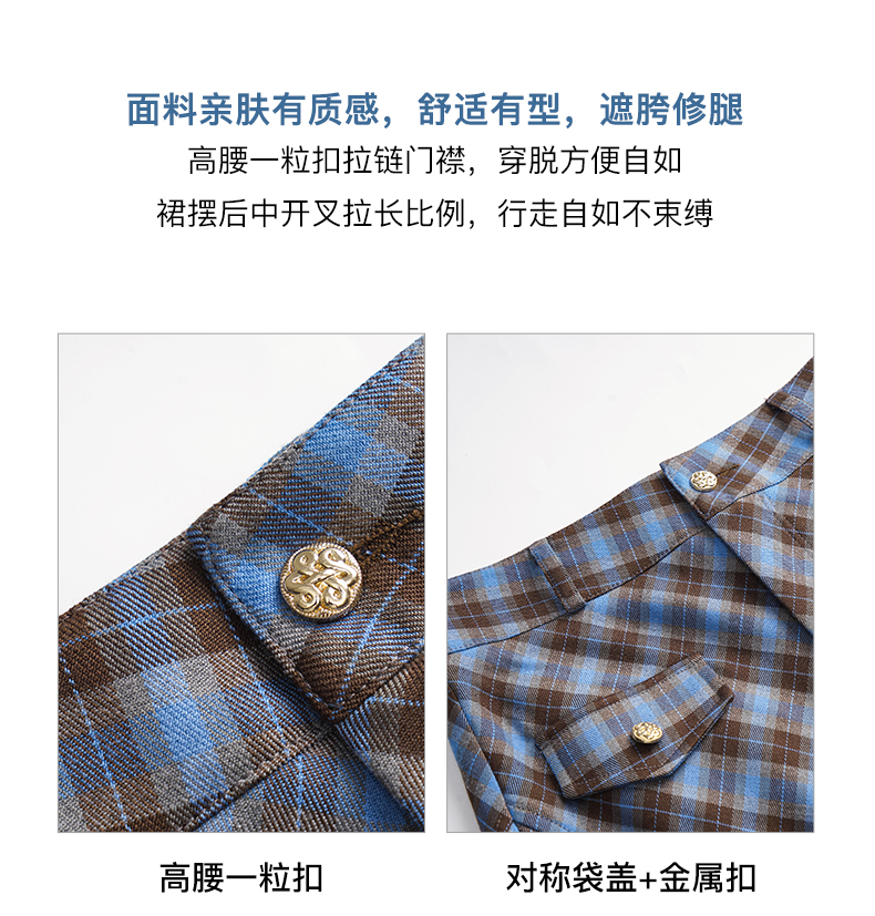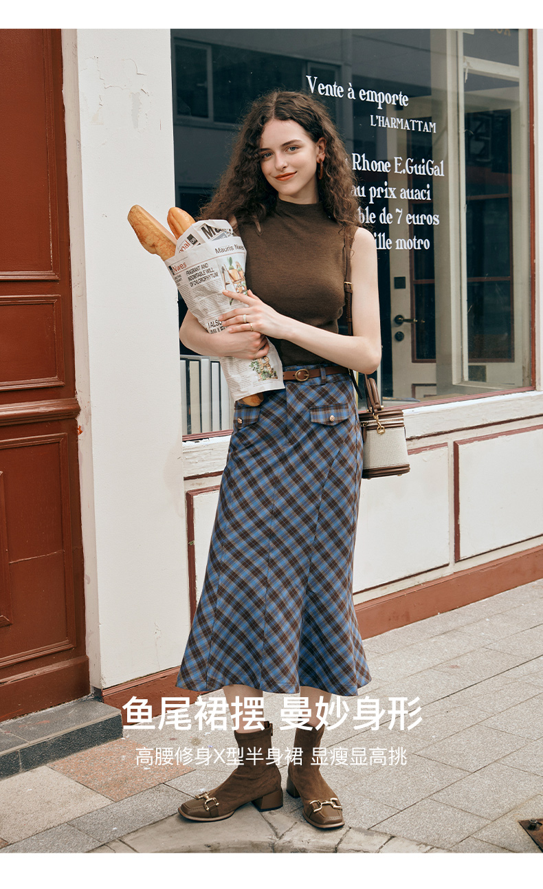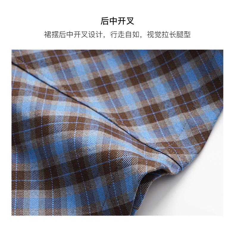 OLrain欧芮儿格子半身裙女早秋2023新款高腰显瘦复古美式直筒裙子