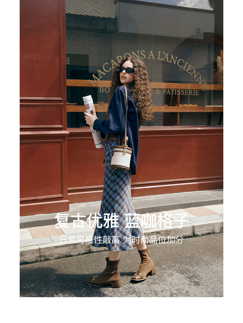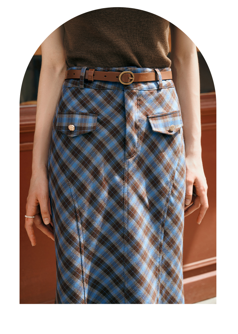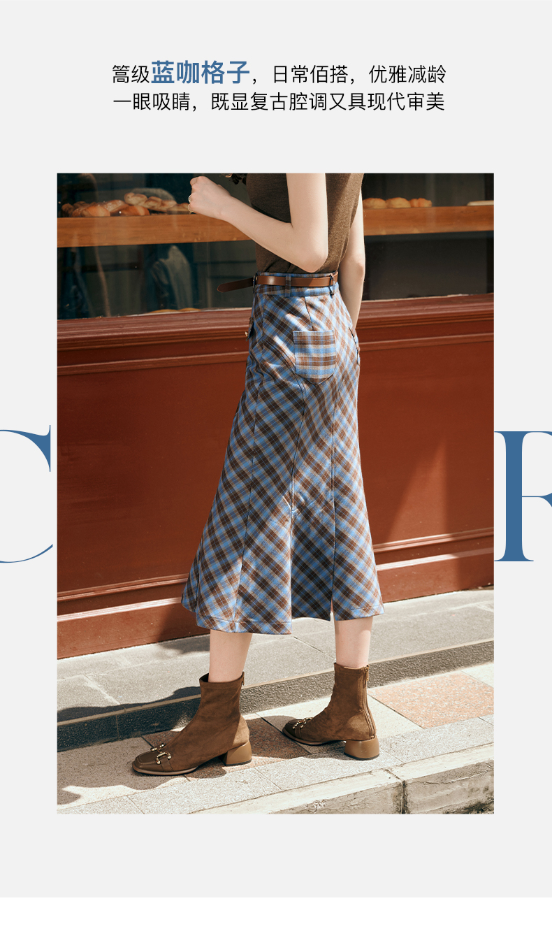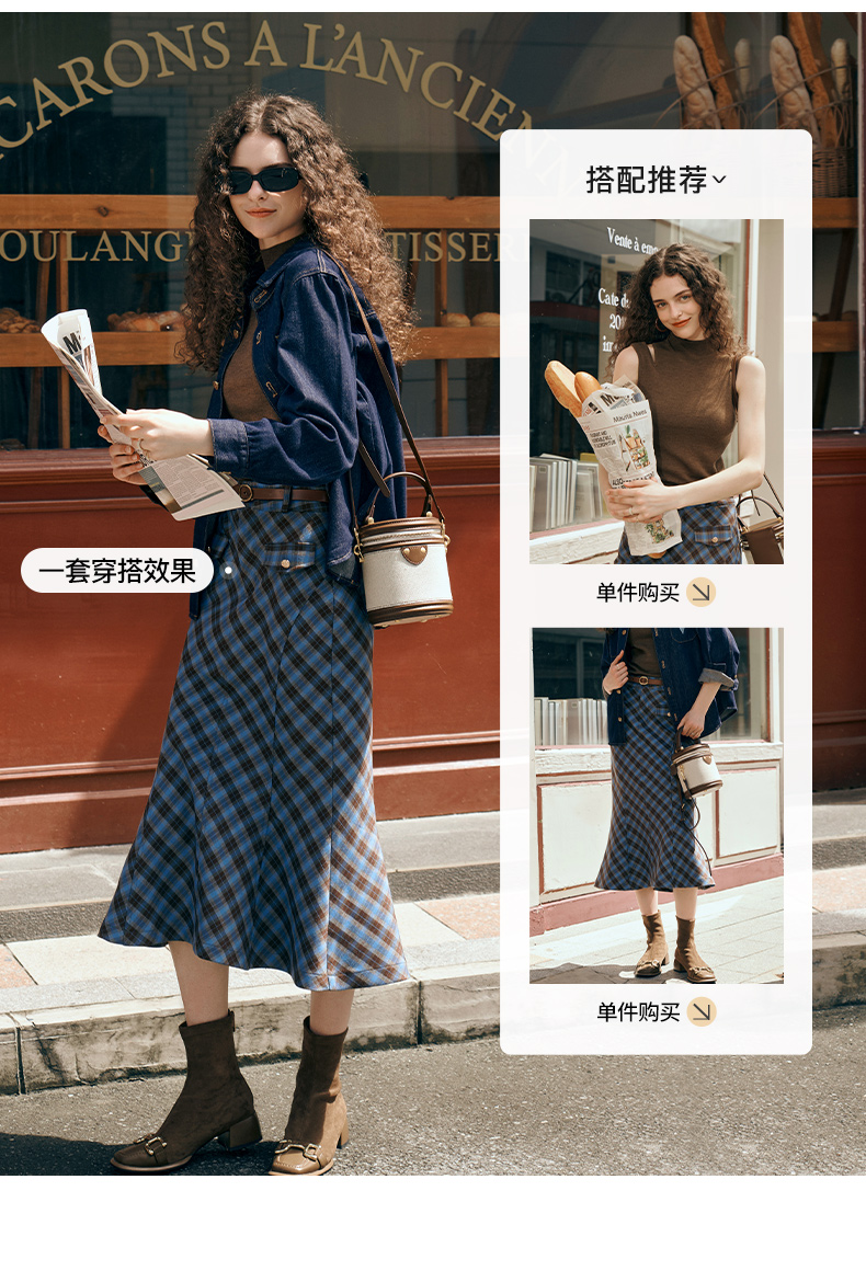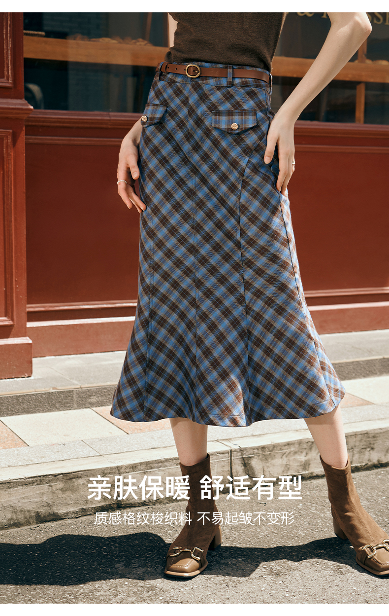 OLrain欧芮儿格子半身裙女早秋2023新款高腰显瘦复古美式直筒裙子