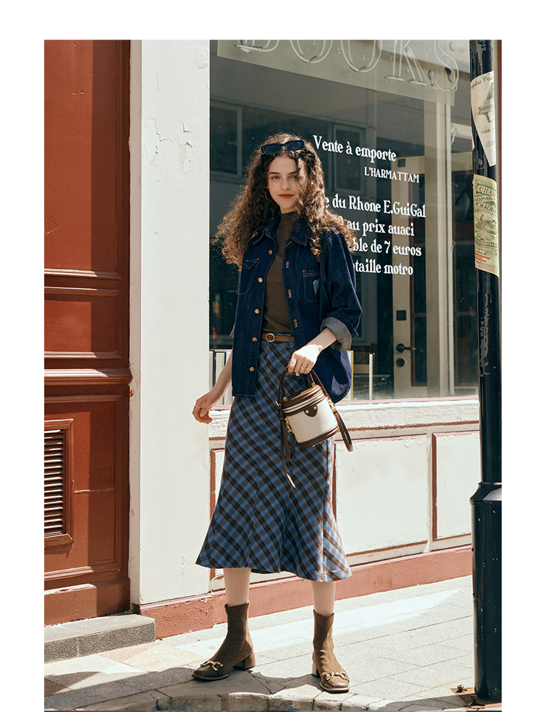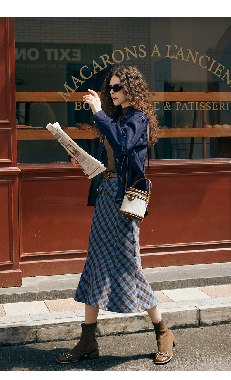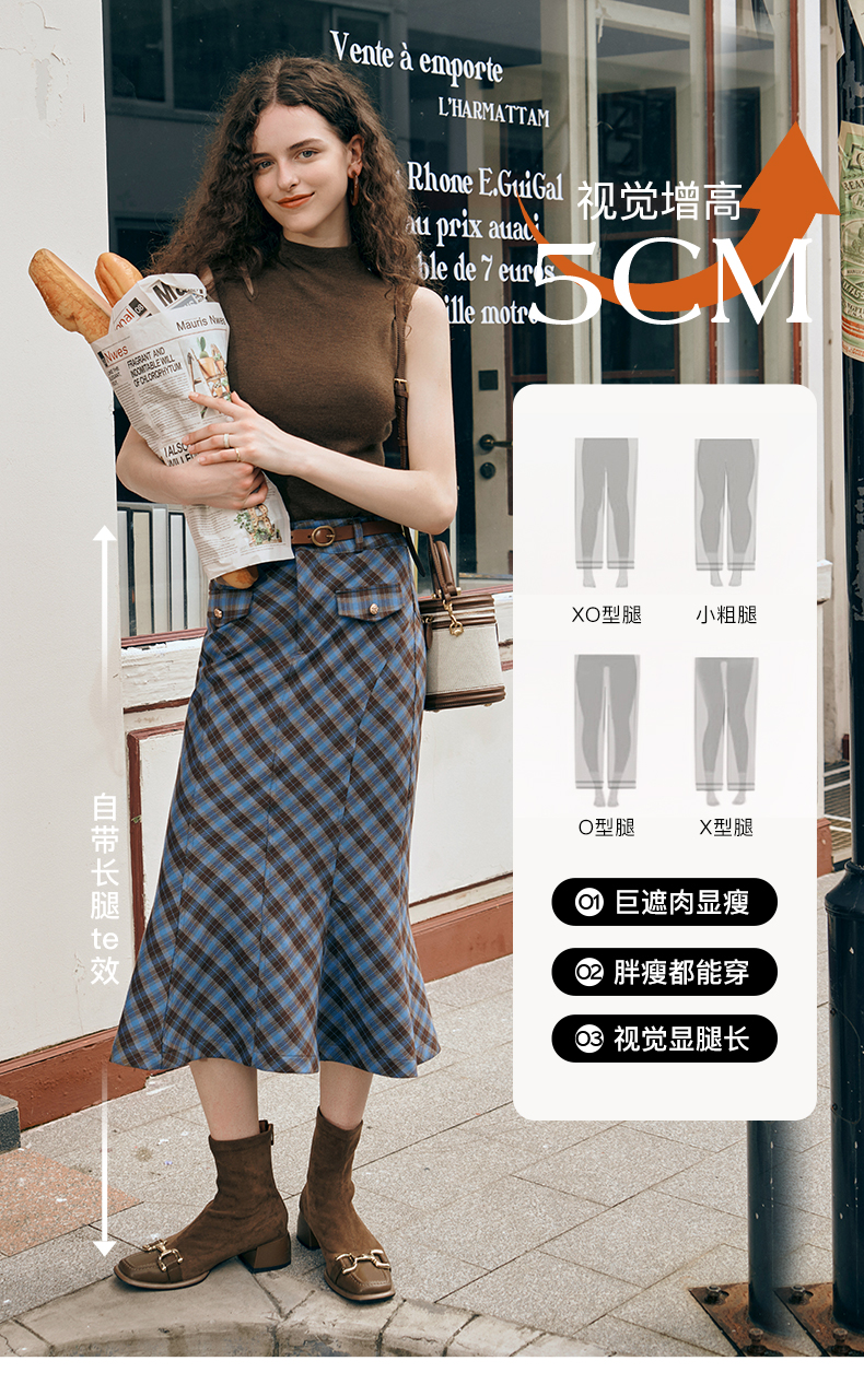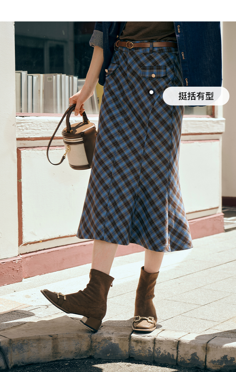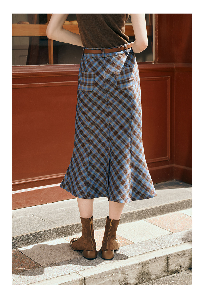 OLrain欧芮儿格子半身裙女早秋2023新款高腰显瘦复古美式直筒裙子