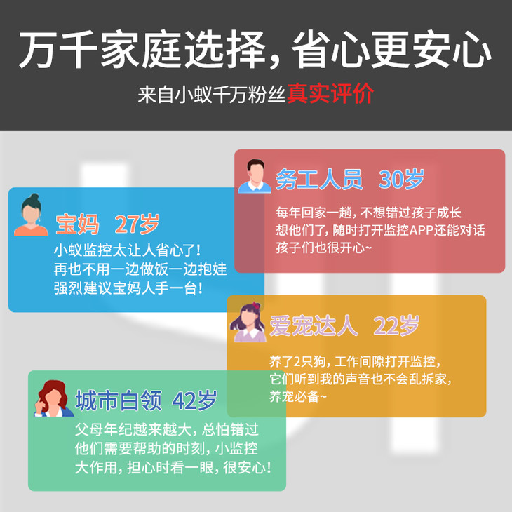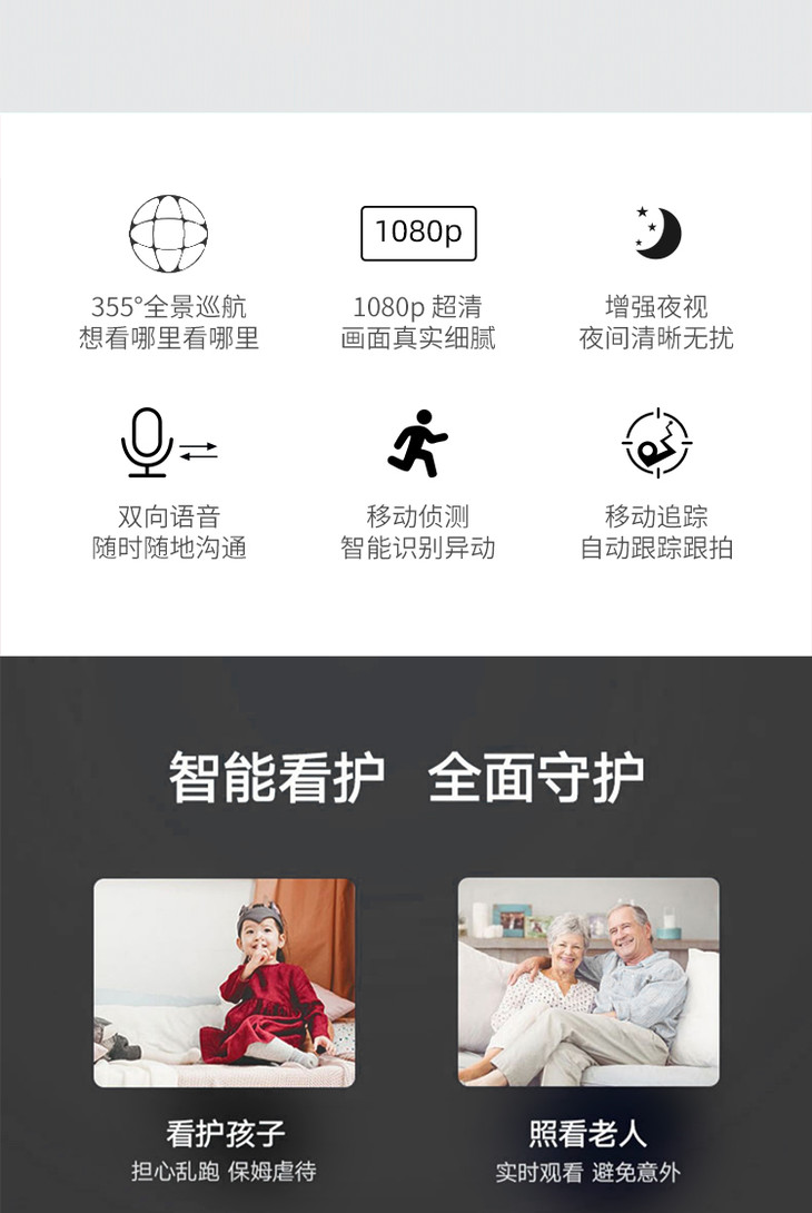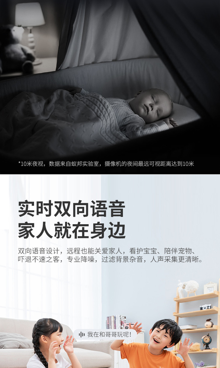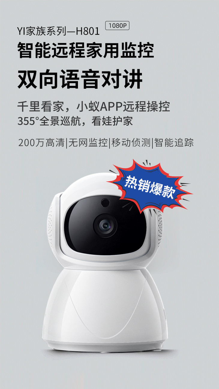- 小蚁智能摄像机——随意放置任意角落,通过手机或平板,随时随地视频观察家中情况。即使不在家,也可随时进行双向语音通话,远程与家人互动,抓拍欢乐瞬间,不错过任何精彩时刻。