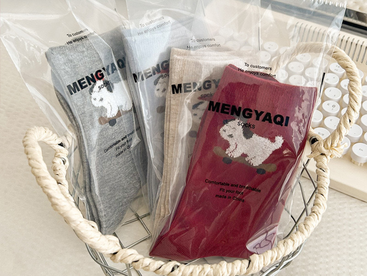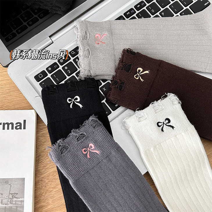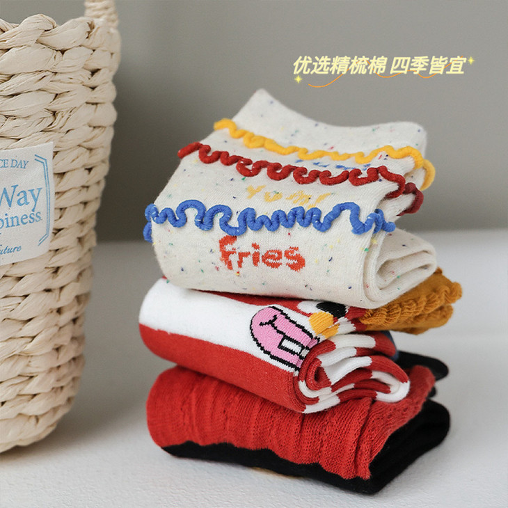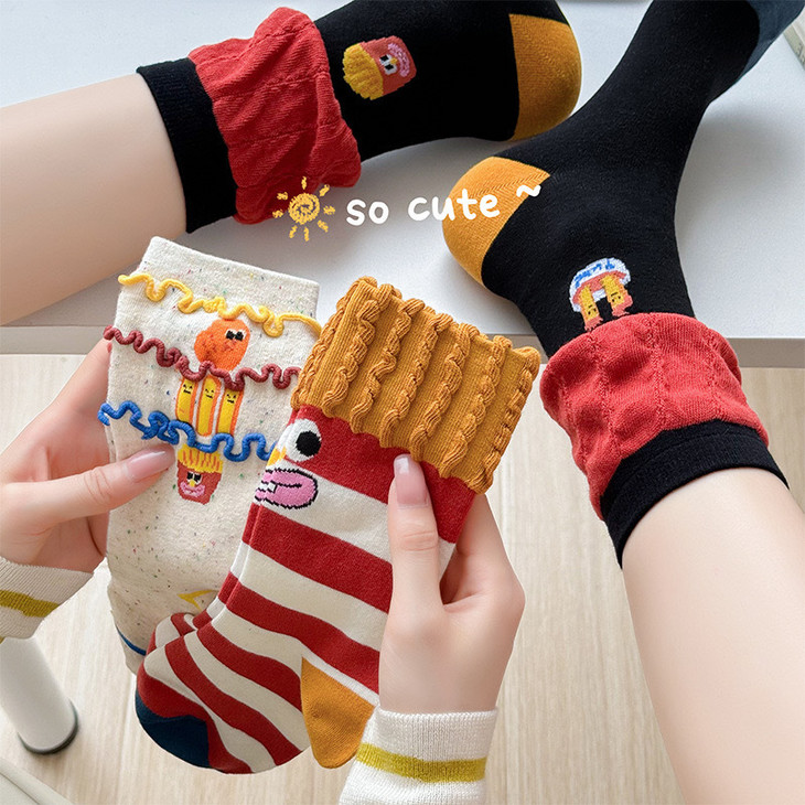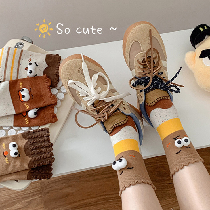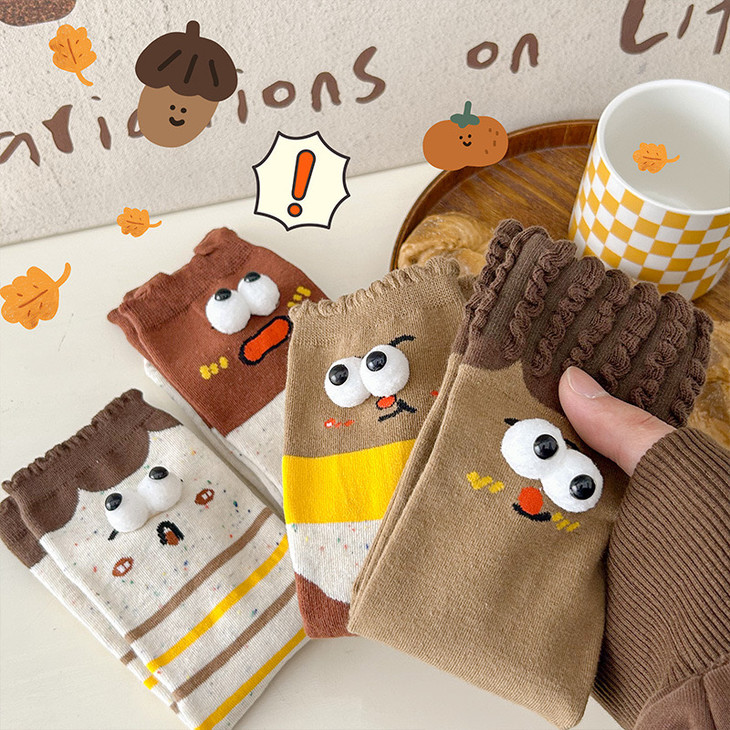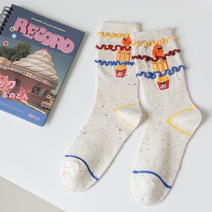 有俏皮的卡通搞怪大眼袜和可爱薯条中筒袜,有时髦的破洞刺绣中筒袜和滑板小狗·植绒中筒袜,有温柔的蝴蝶结彩色点点中筒袜和木耳边圆点中筒袜,还有厚实的麻花羊绒中筒袜以及简约坑条堆堆袜。