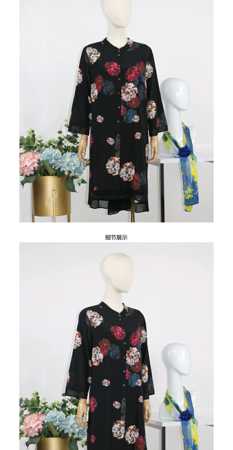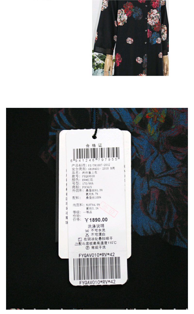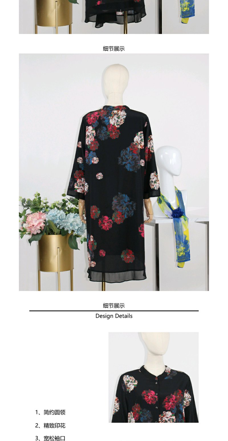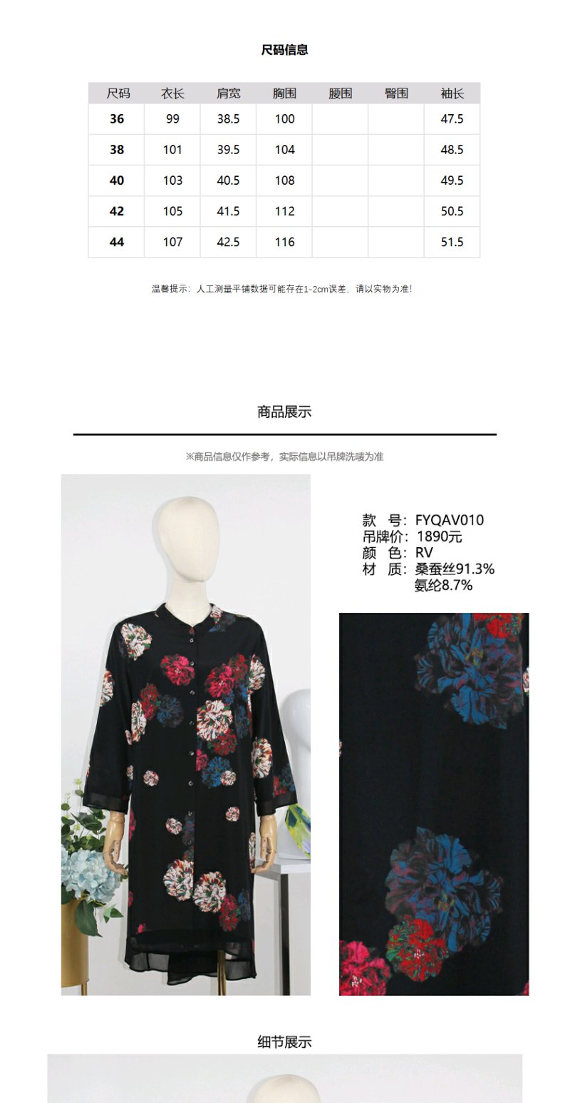 FOCALS福柯斯秋季桑蚕丝七分袖印花两件套衬衫连衣裙FYQAV010RV