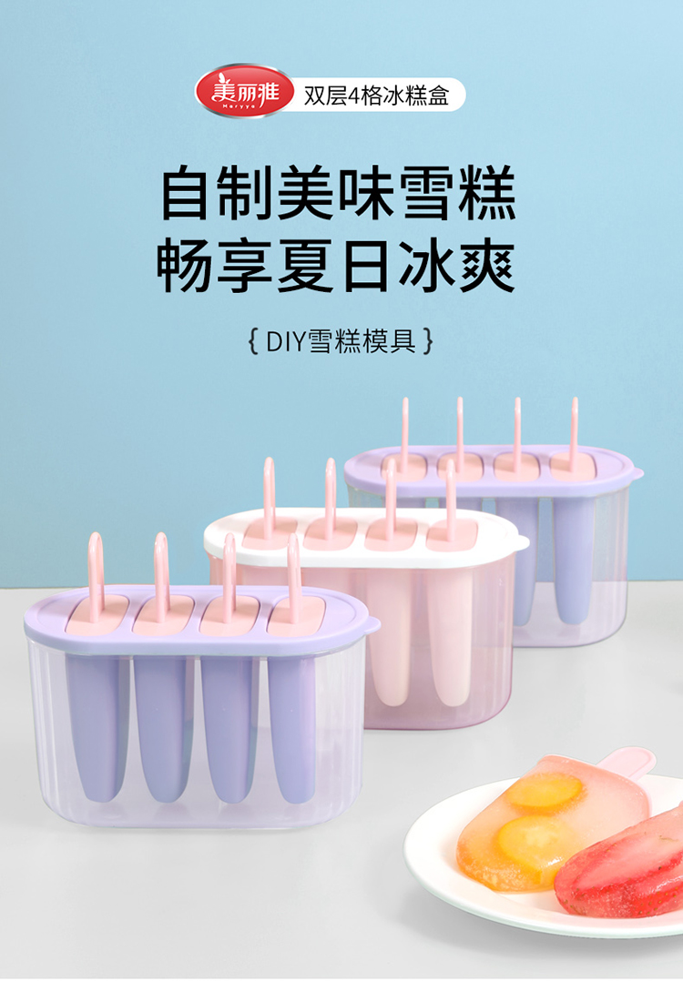 【雪糕模具】美丽雅雪糕盒 冰格冰块模具家用食品冰棍冰棒冰淇淋冻冰糕自制冰盒级双层冰糕盒(颜色随机)