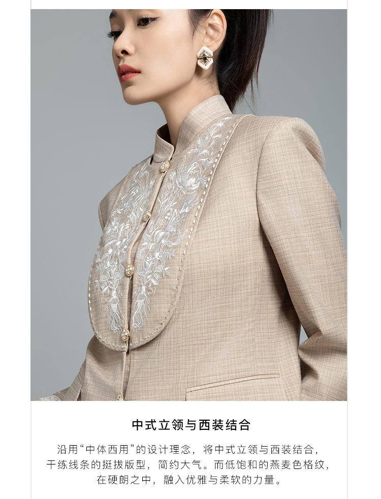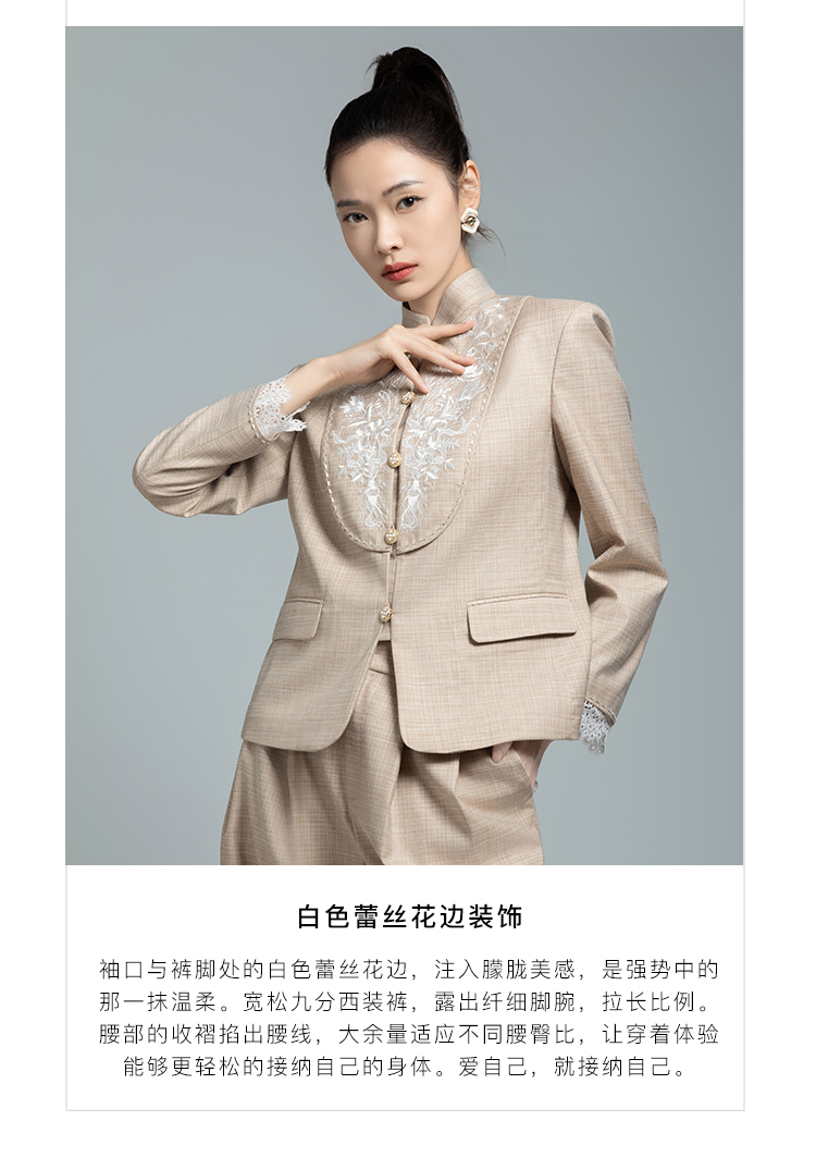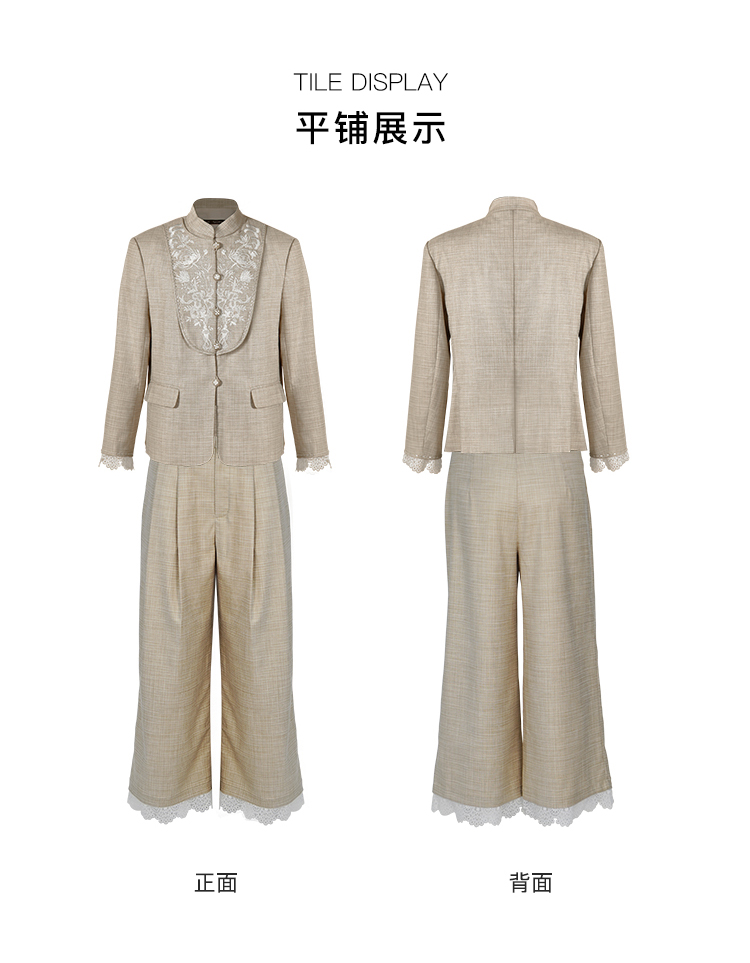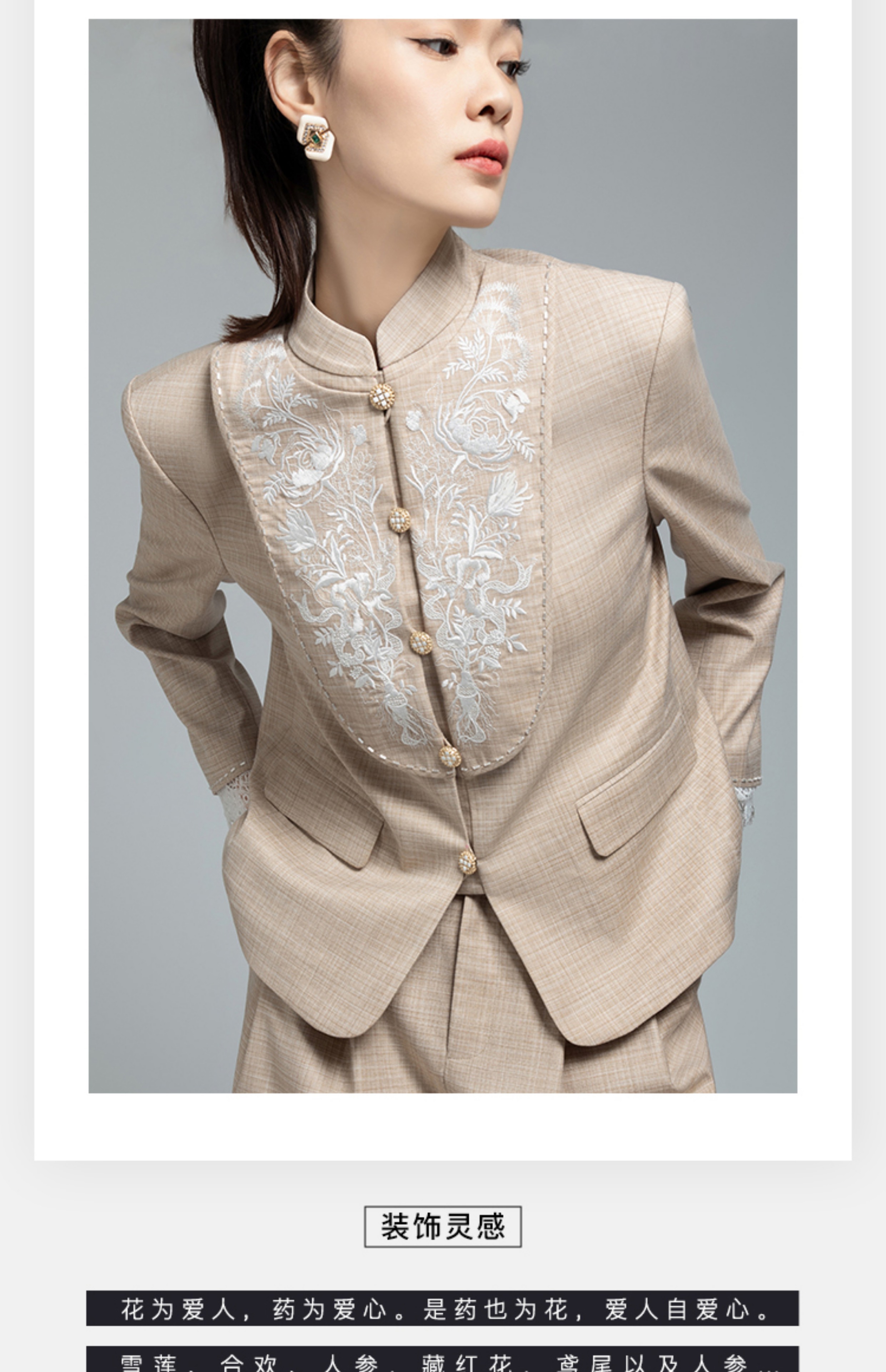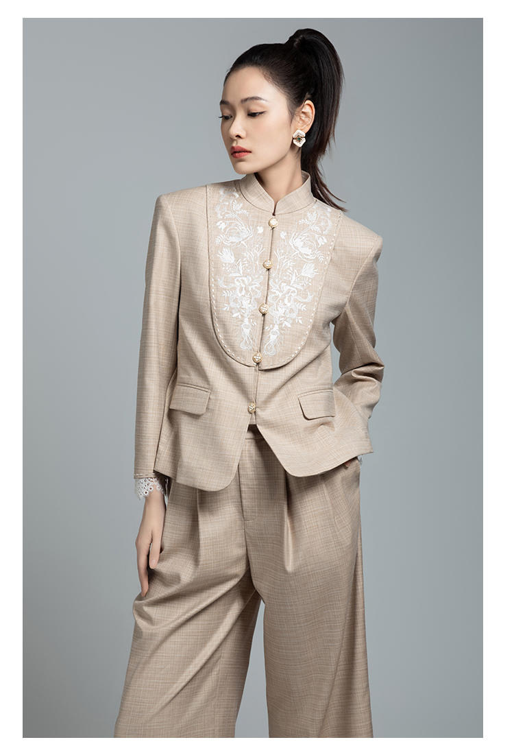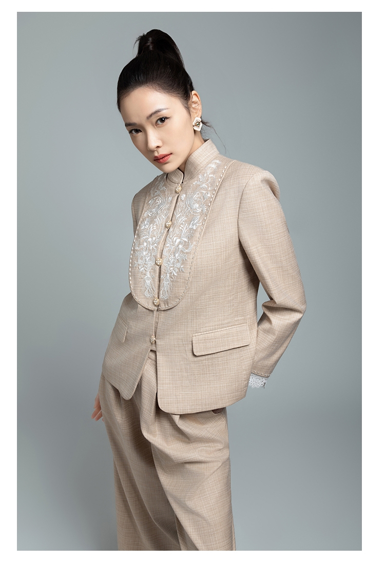 郭培成衣品牌【“药”爱自己】高级灰刺绣对襟立领西服套装