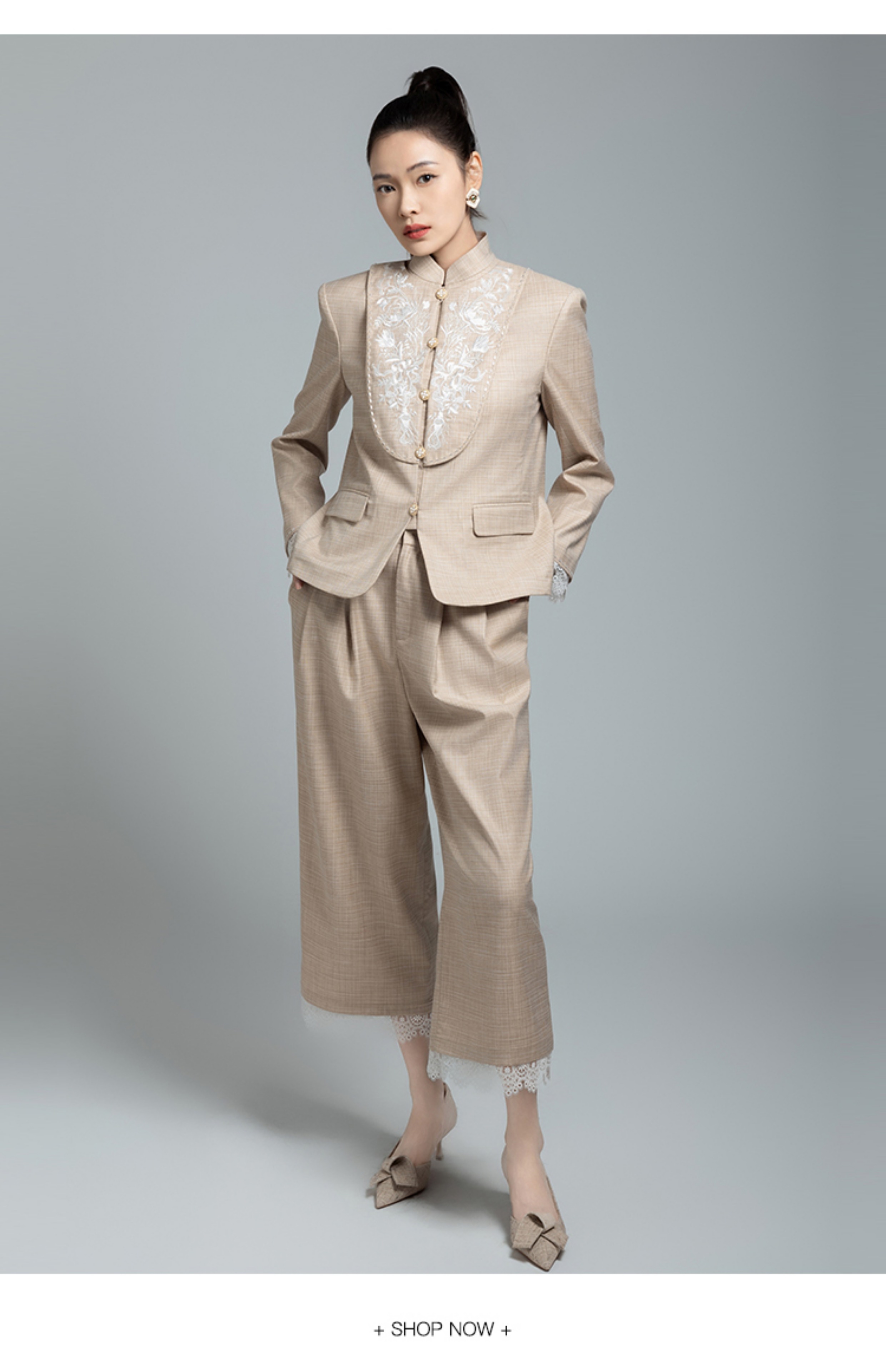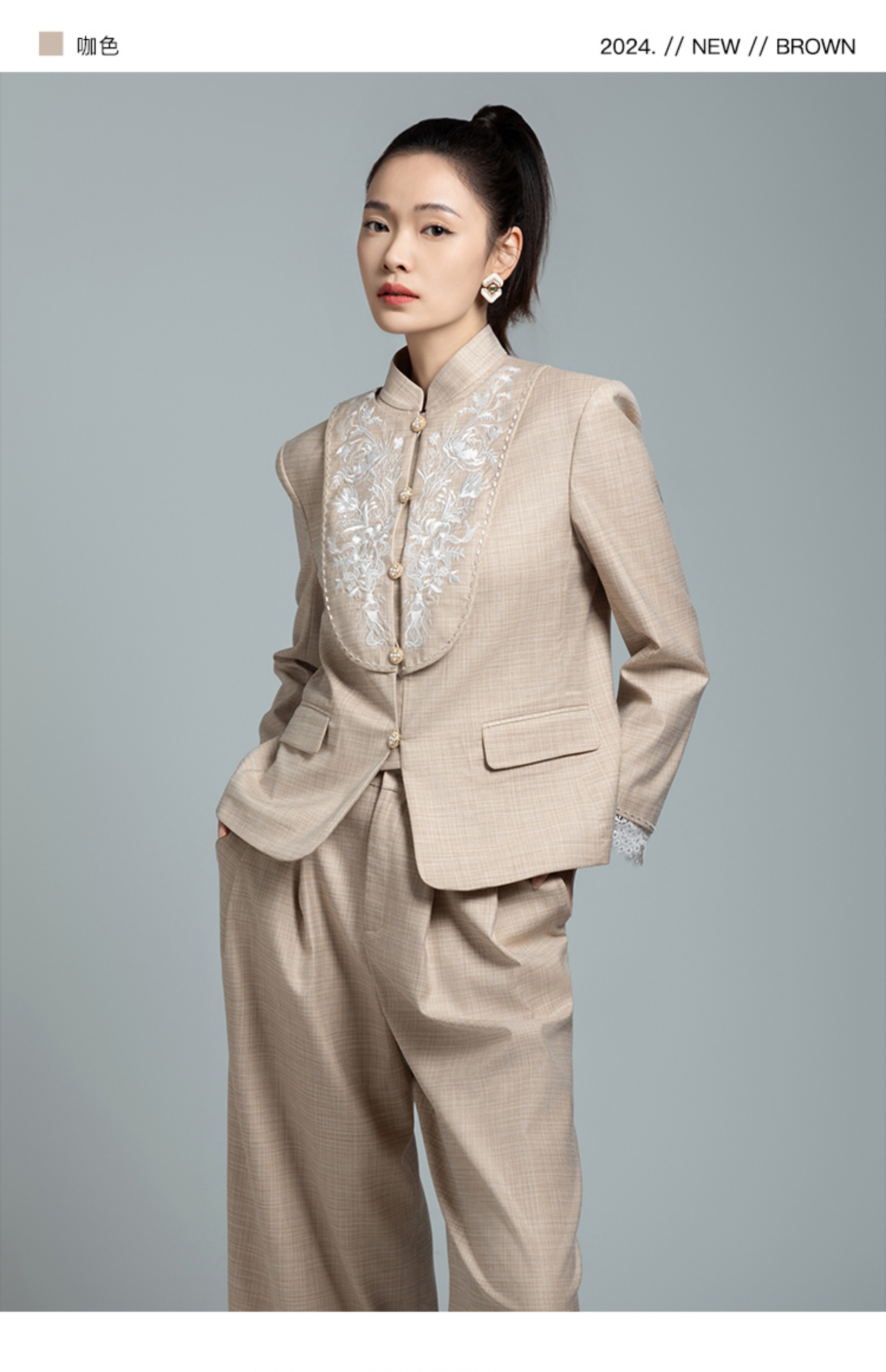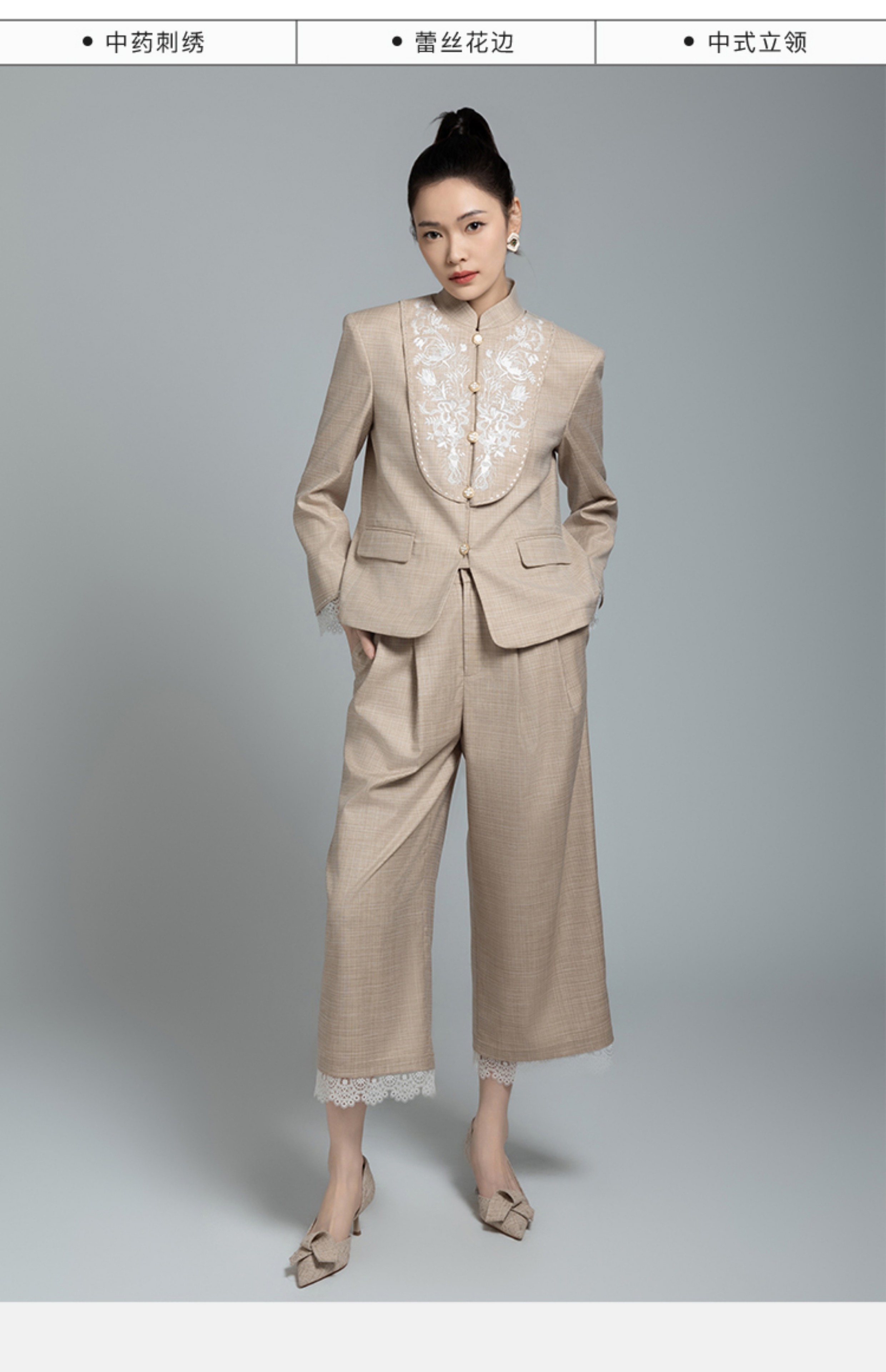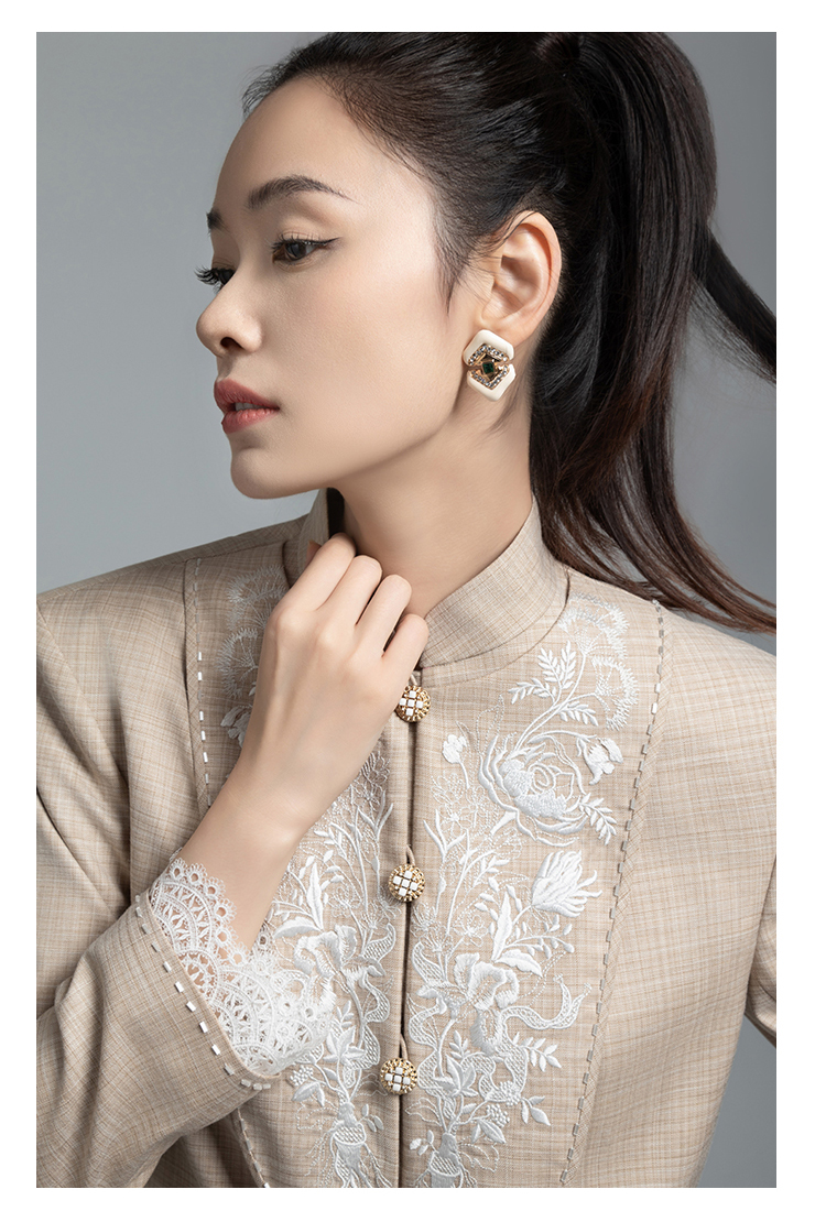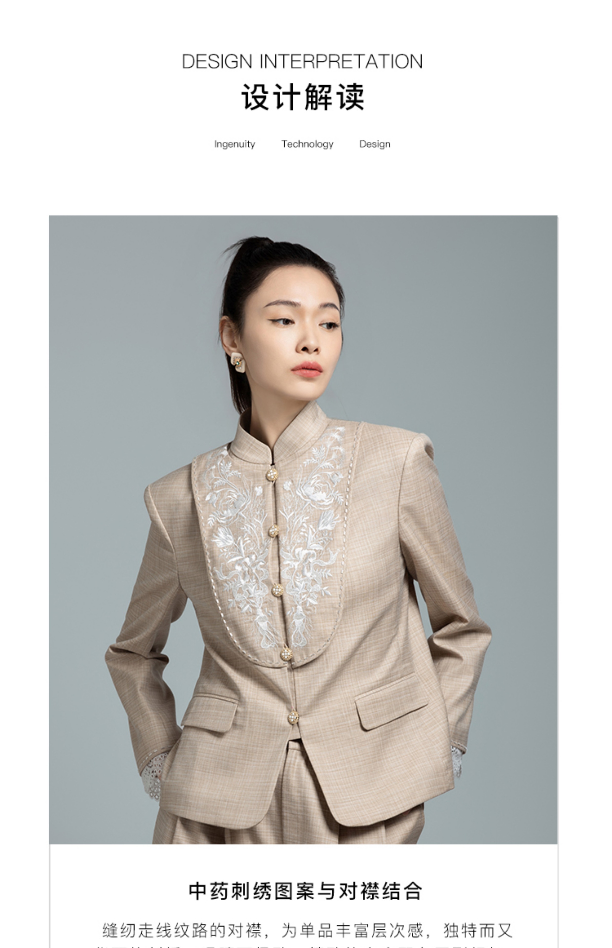 郭培成衣品牌【“药”爱自己】高级灰刺绣对襟立领西服套装