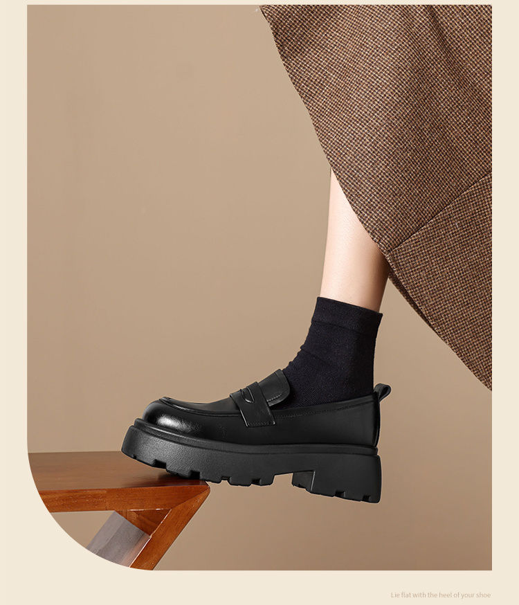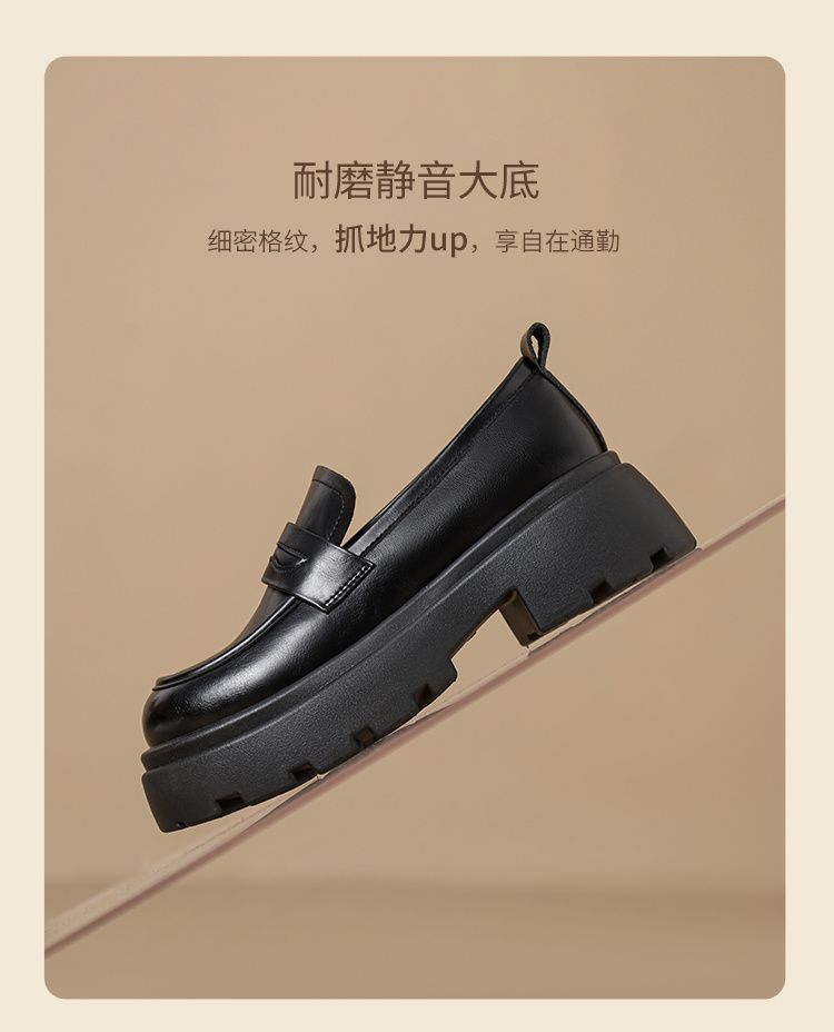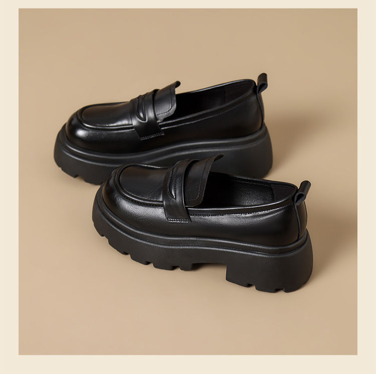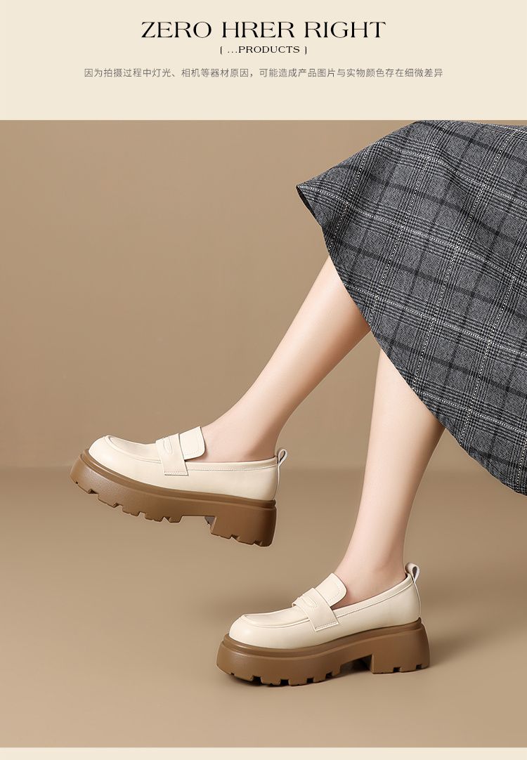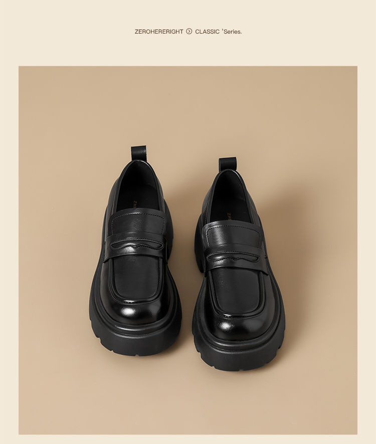 ZHR成熟圆头乐福鞋新款皮鞋2024新款黑色增高复古厚底英伦单鞋