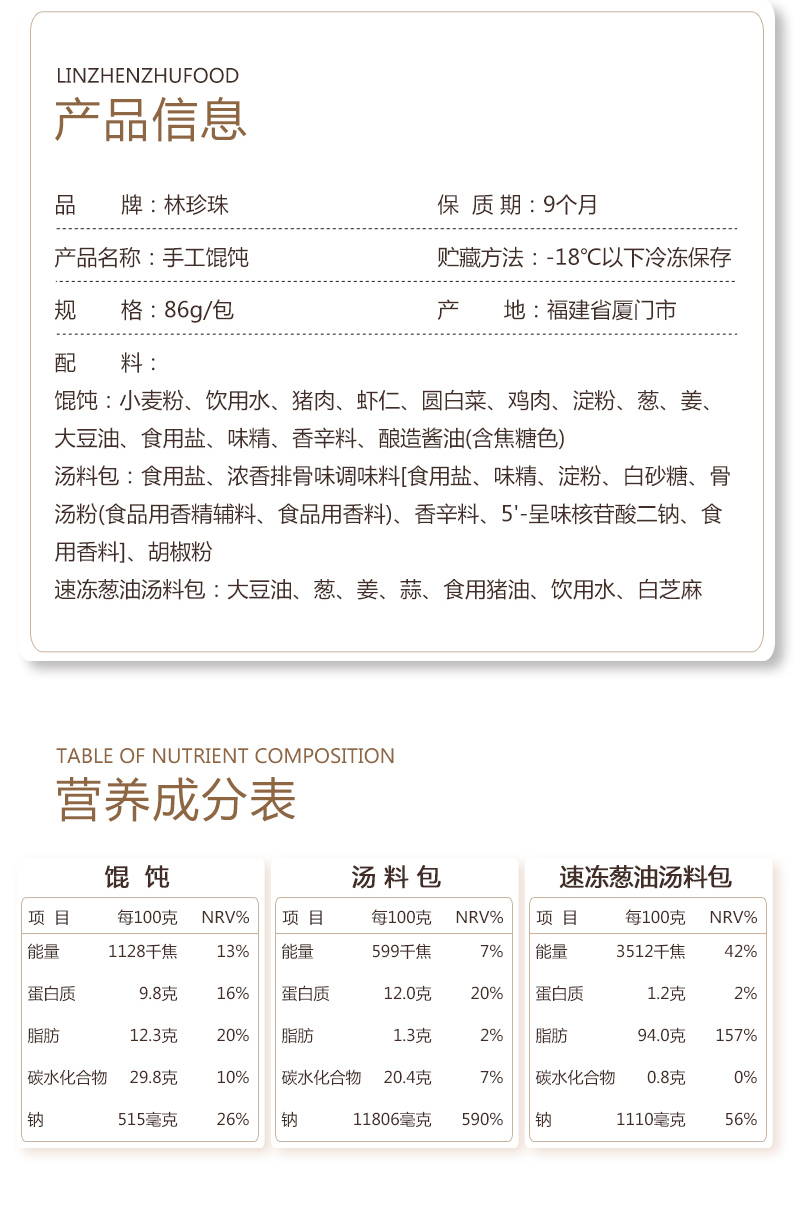 【到手2包】林珍珠千里香手工馄饨/1份(86g*2包,每包含馄80g+汤料包3g+速冻葱油汤料包3g)生产日期:26年2月