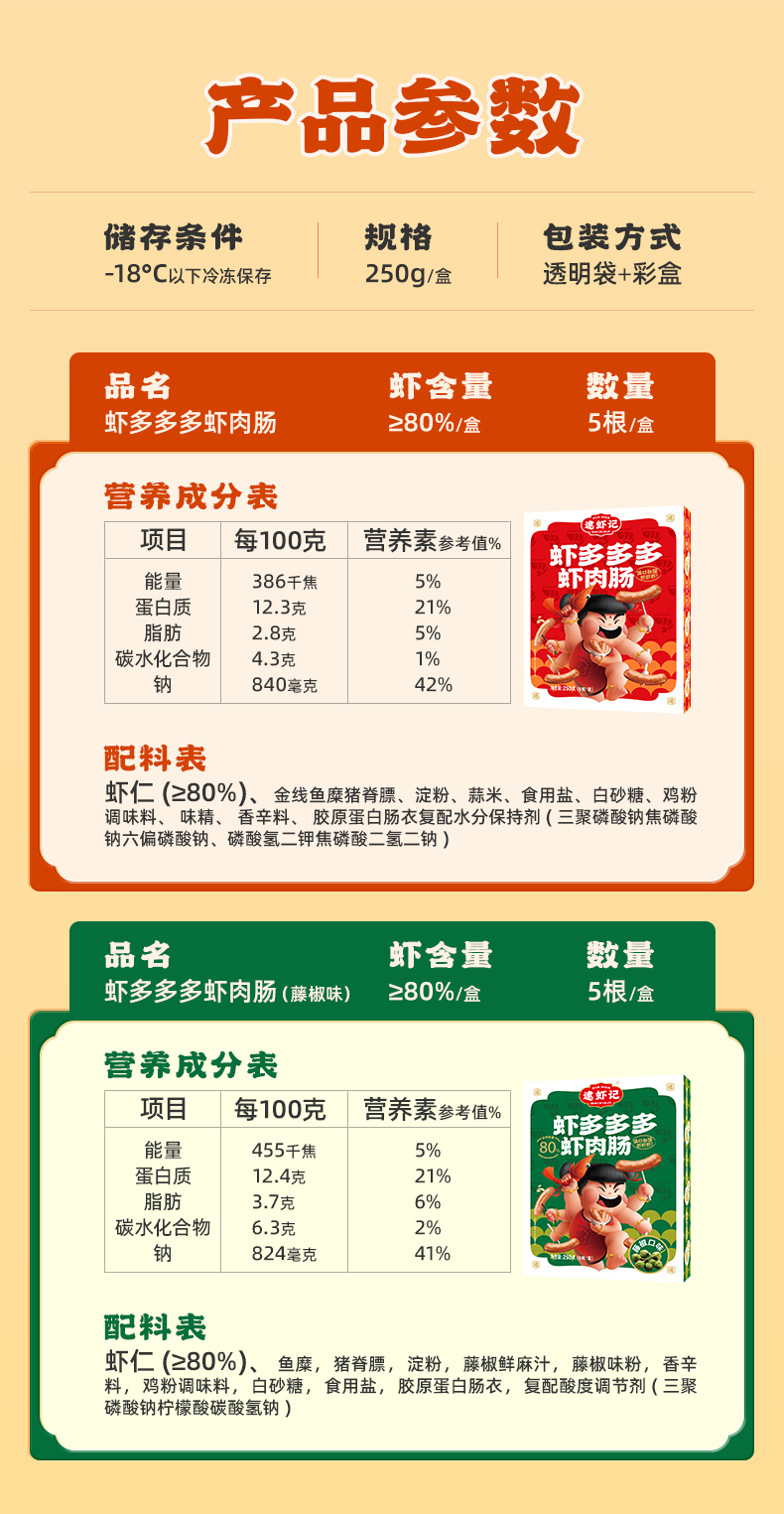 【团购专享】逮虾记虾多多虾肉肠250g/盒