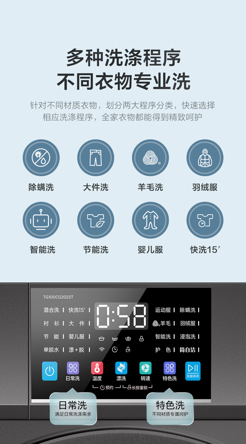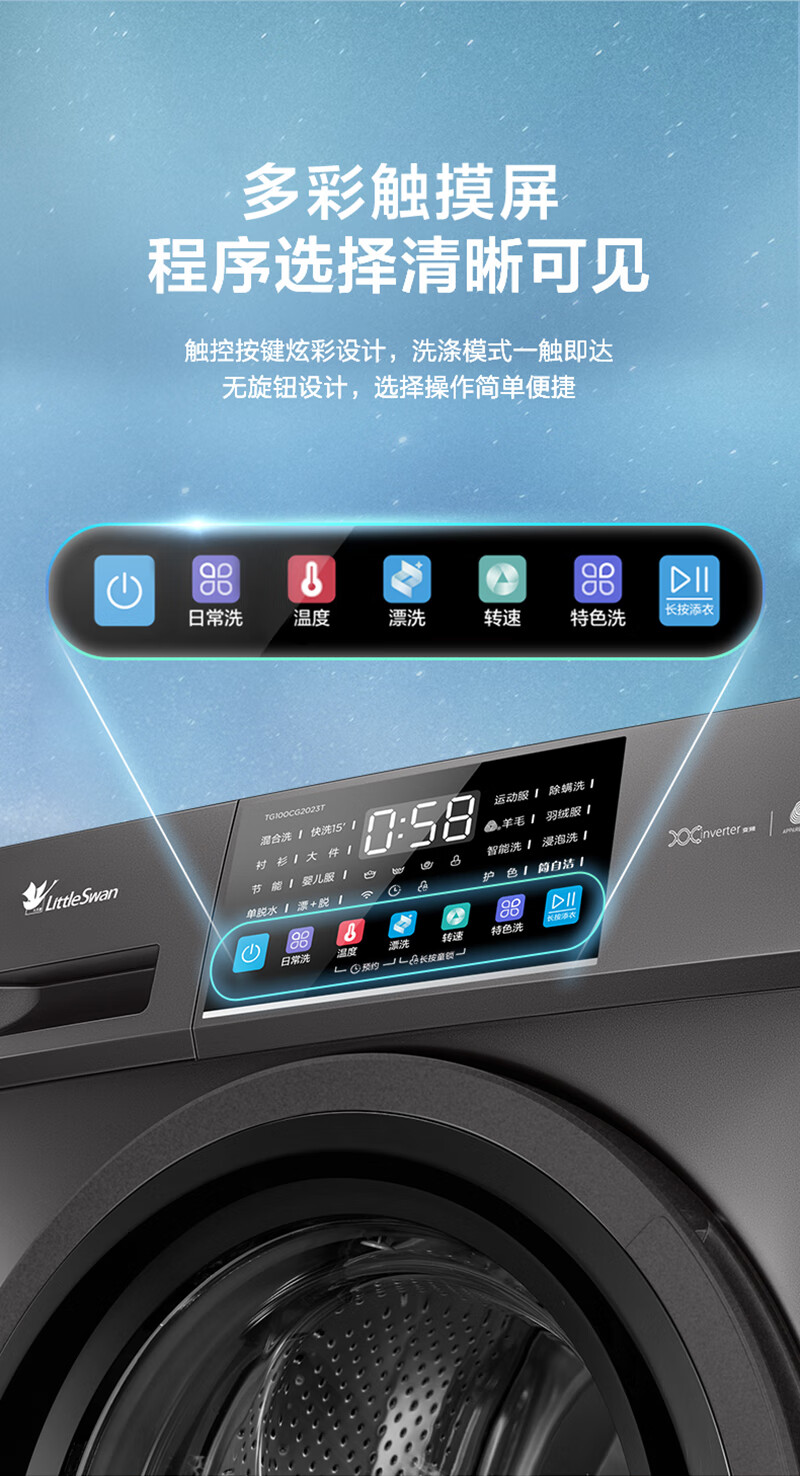 小天鹅10公斤全自动滚筒洗衣机TG100-CG2023T