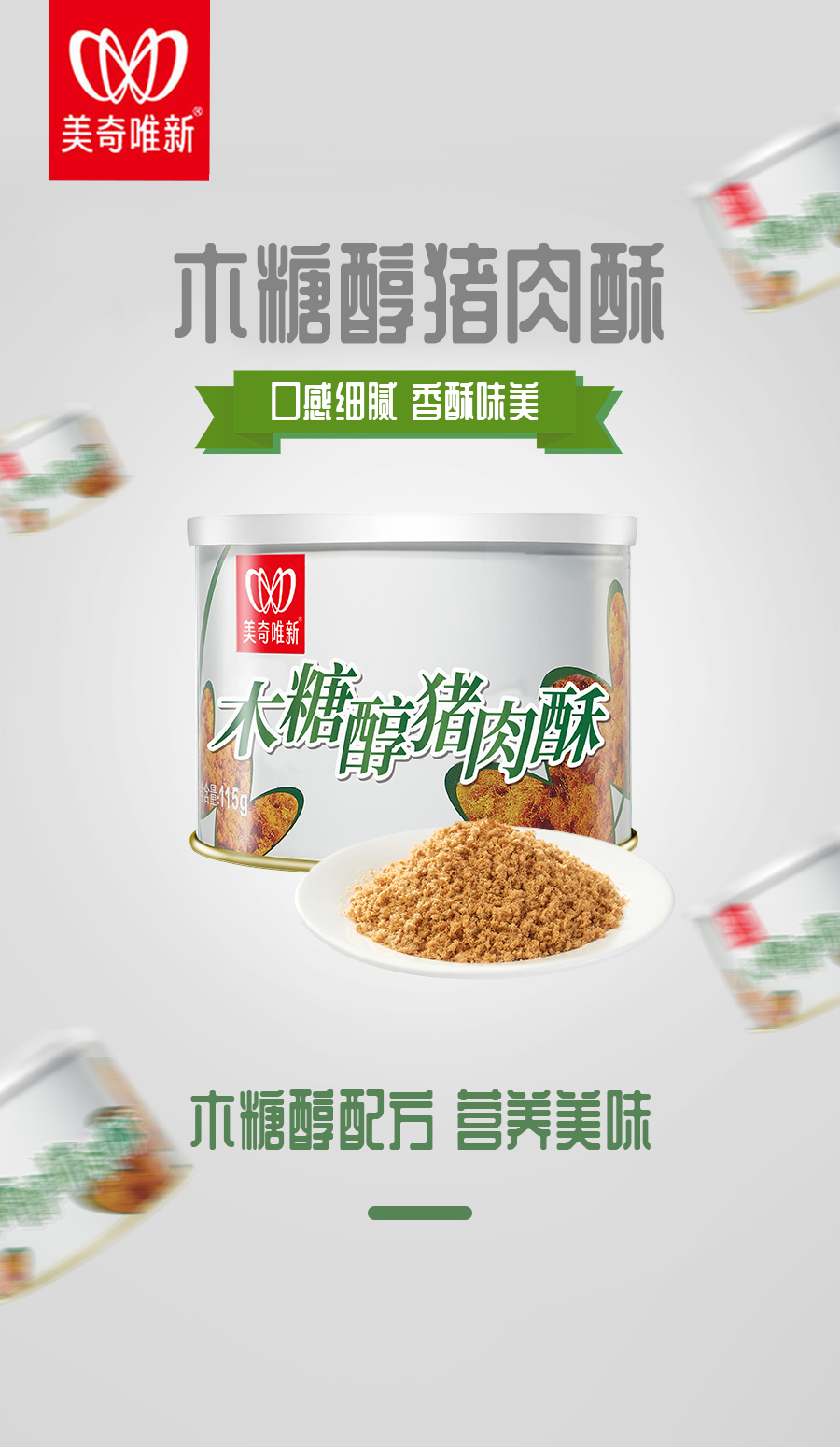 【休闲食品 肉酥】美奇唯新 115g木糖醇肉酥*3罐