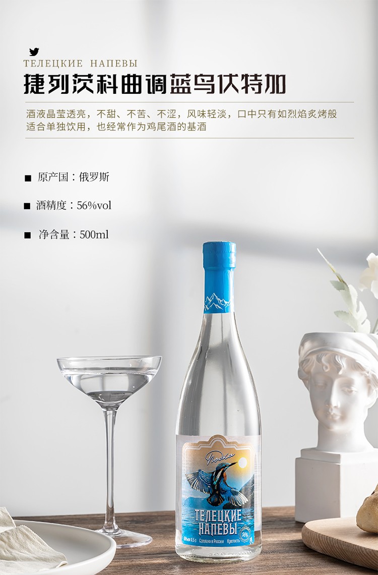 俄罗斯捷列茨科曲调伏特加蓝鸟500ml/012711 不甜不苦不涩