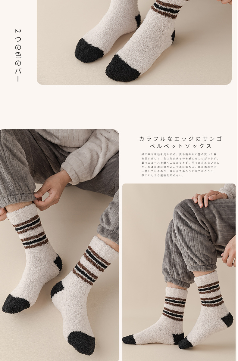 【男珊瑚绒袜】珊瑚绒袜子男中筒秋冬季加厚加绒保暖地板男士长筒袜