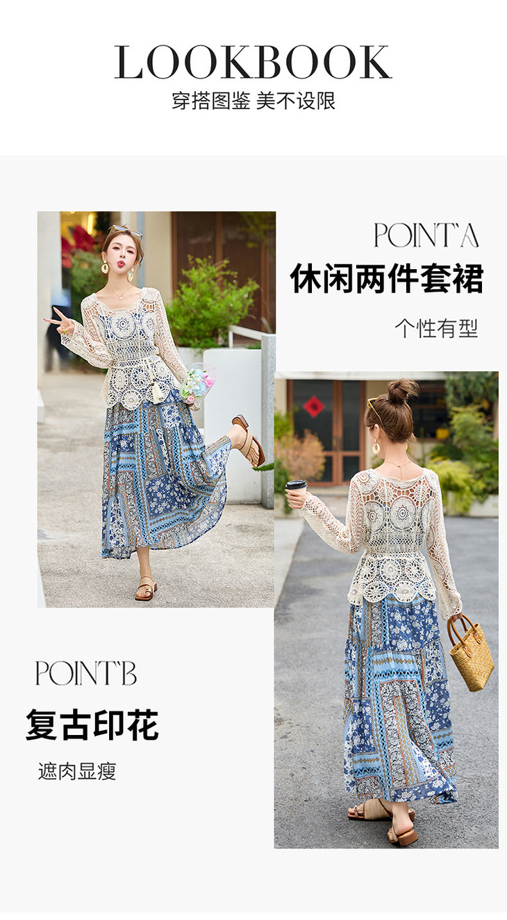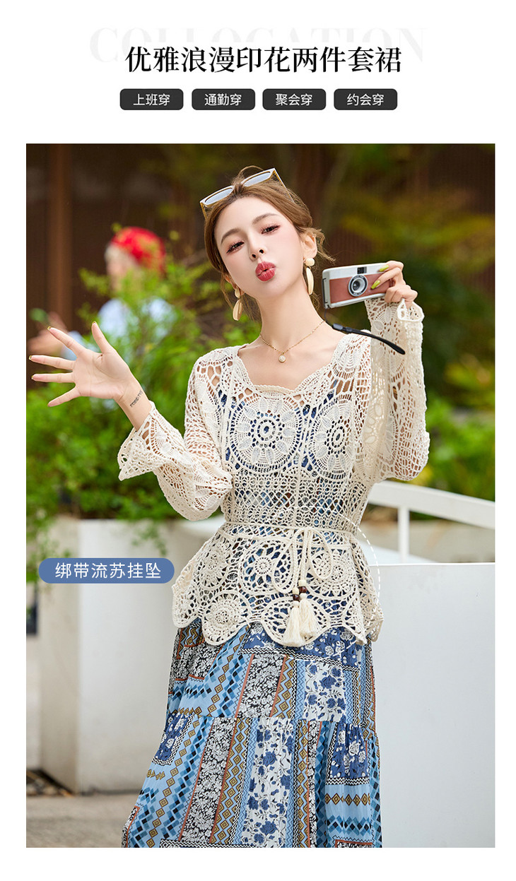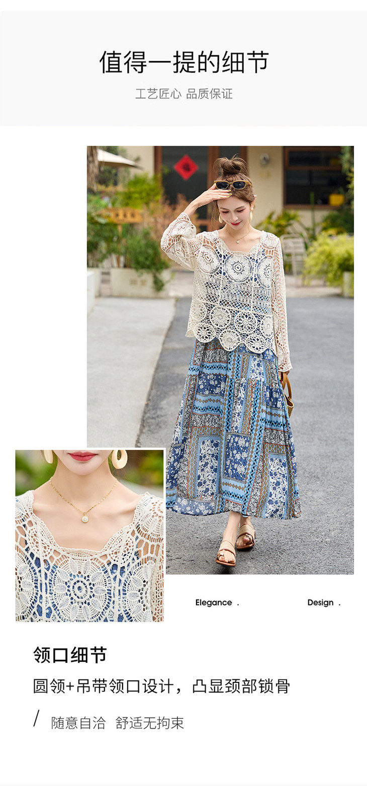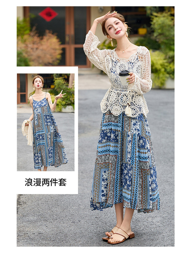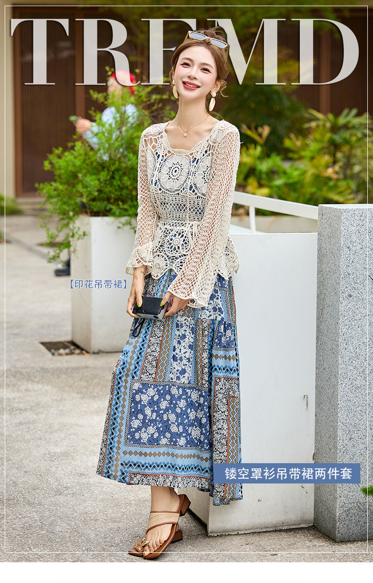 波西米亚复古度假吊带长裙套装女2025夏季防晒镂空罩衫超仙两件套HR-MYL2522