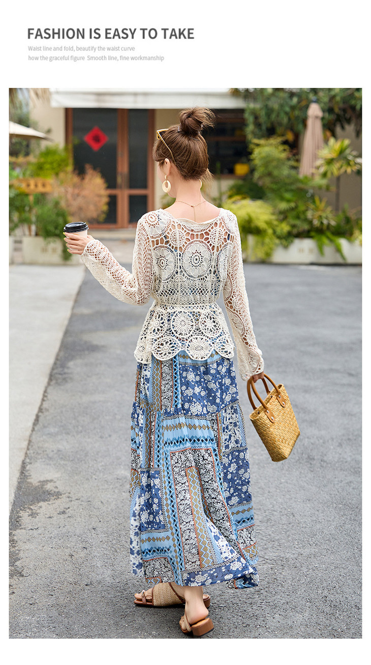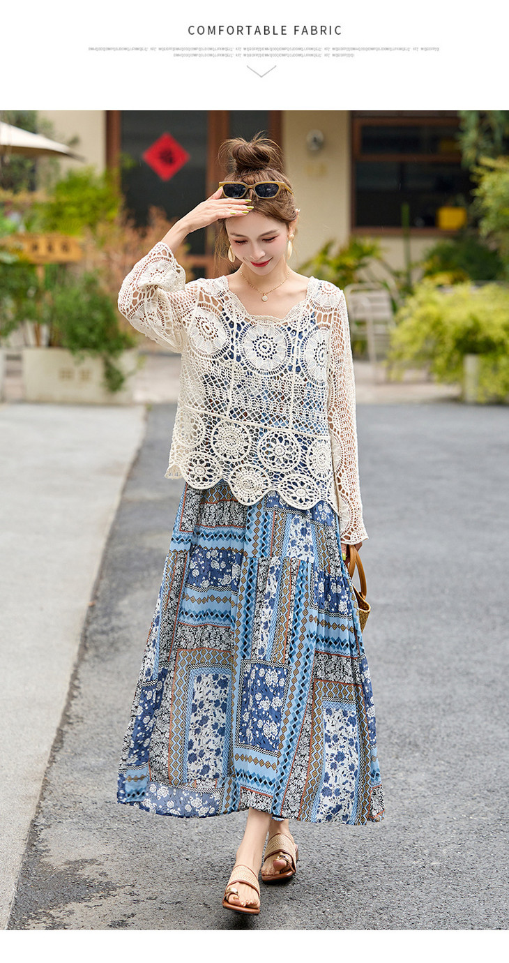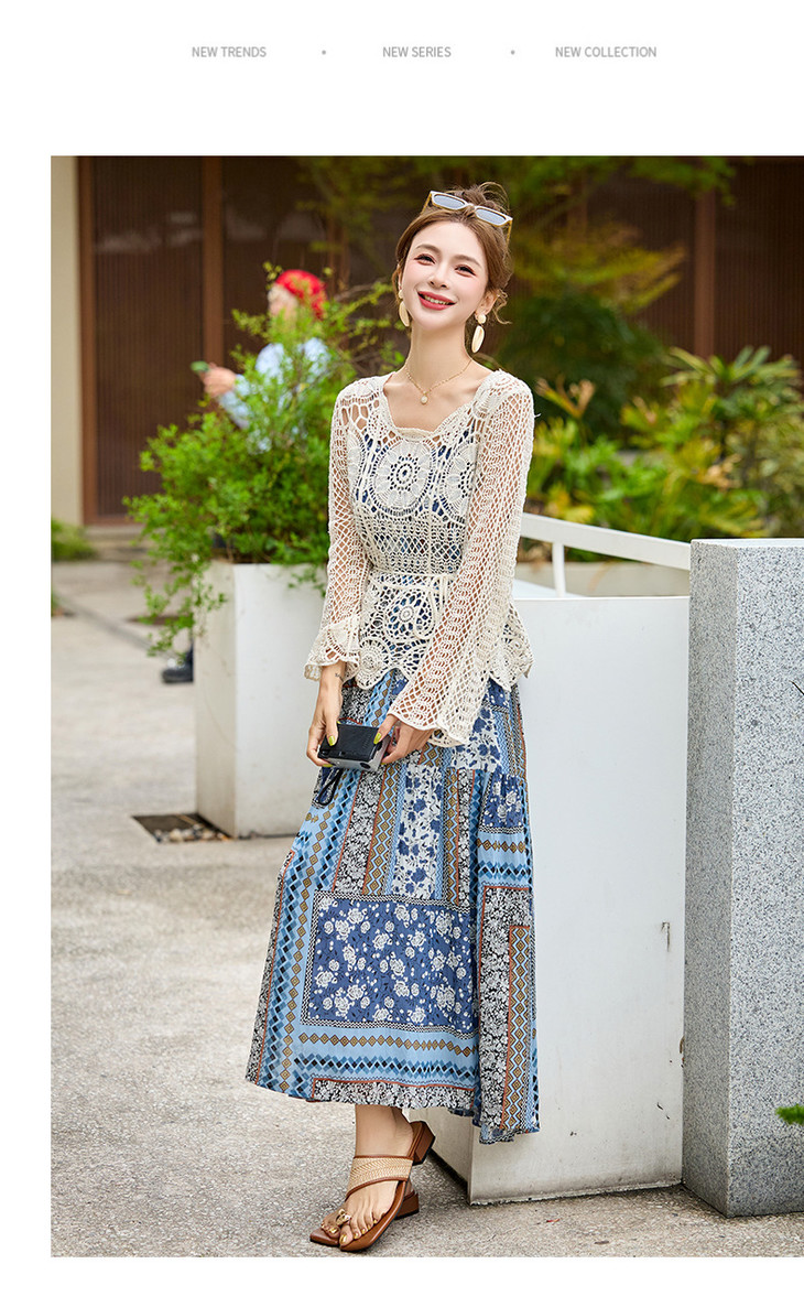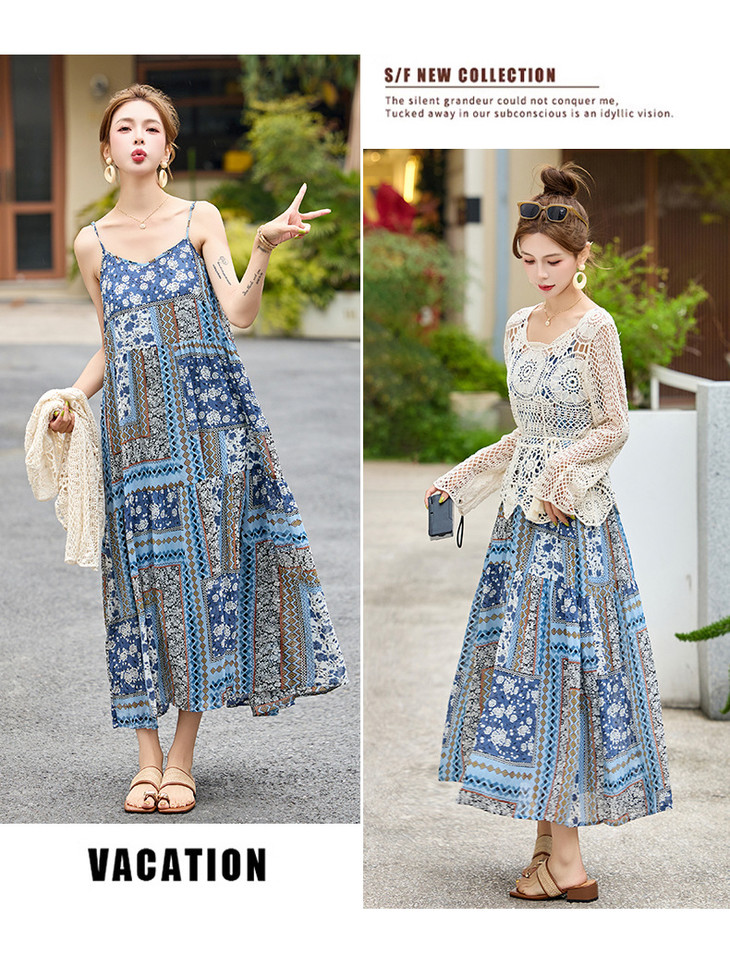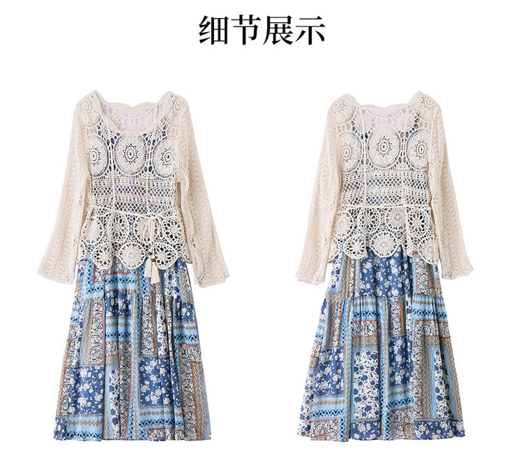 波西米亚复古度假吊带长裙套装女2025夏季防晒镂空罩衫超仙两件套HR-MYL2522