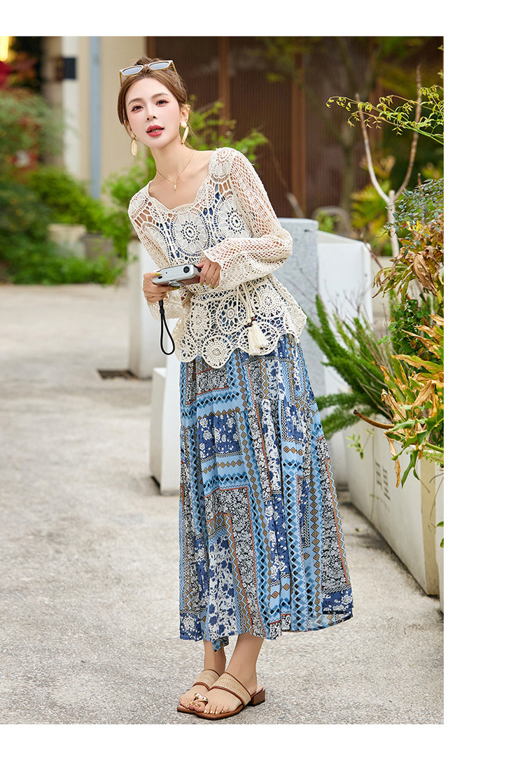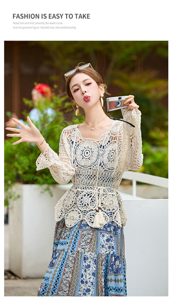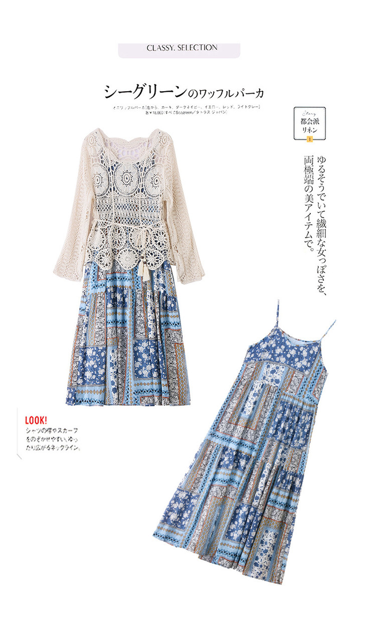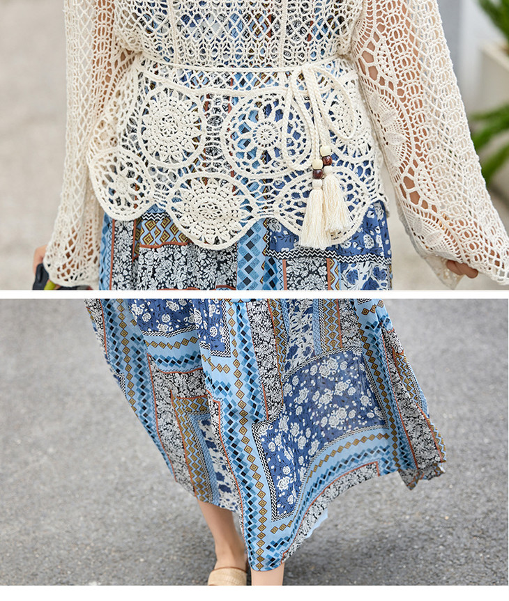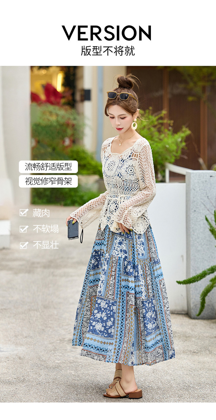 波西米亚复古度假吊带长裙套装女2025夏季防晒镂空罩衫超仙两件套HR-MYL2522
