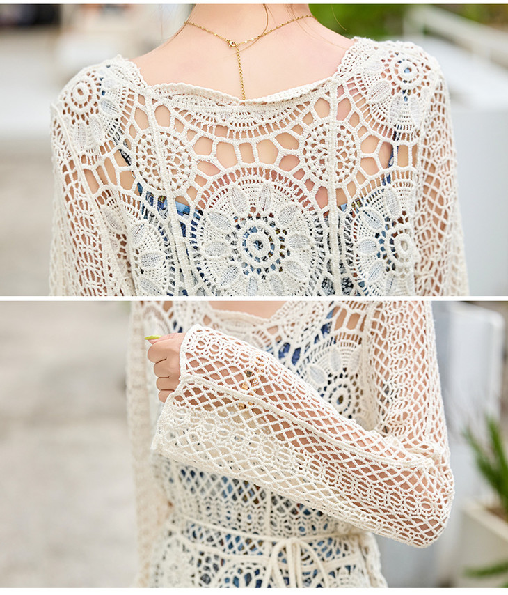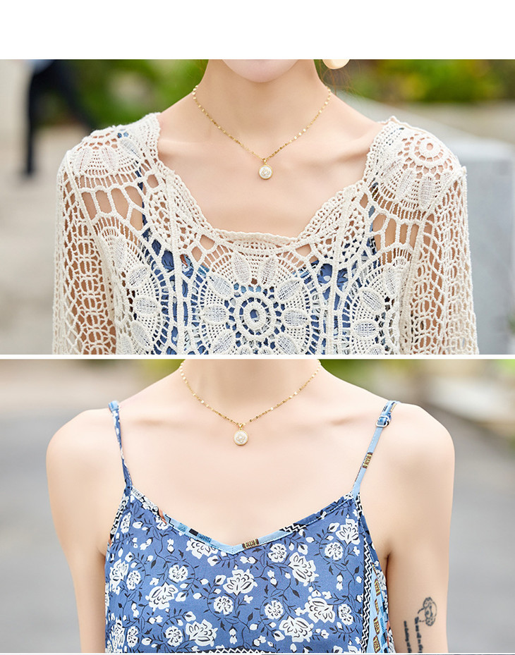 冰丝针织开衫女薄款短款镂空外搭小开衫外套七袖空调衫春夏季圆领DD